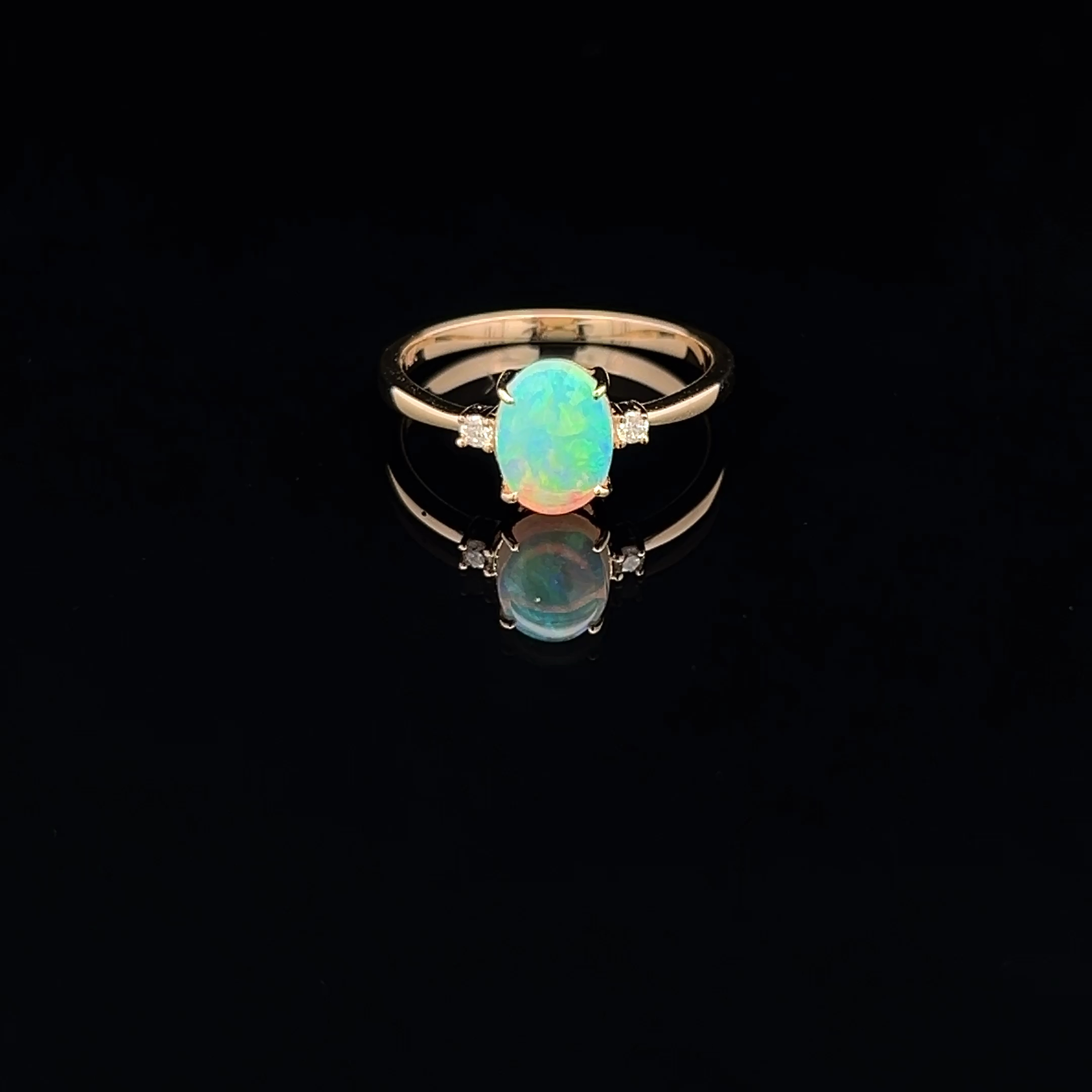 South Australian Solid Crystal Opal & Diamond Ring in 14K Yellow Gold
