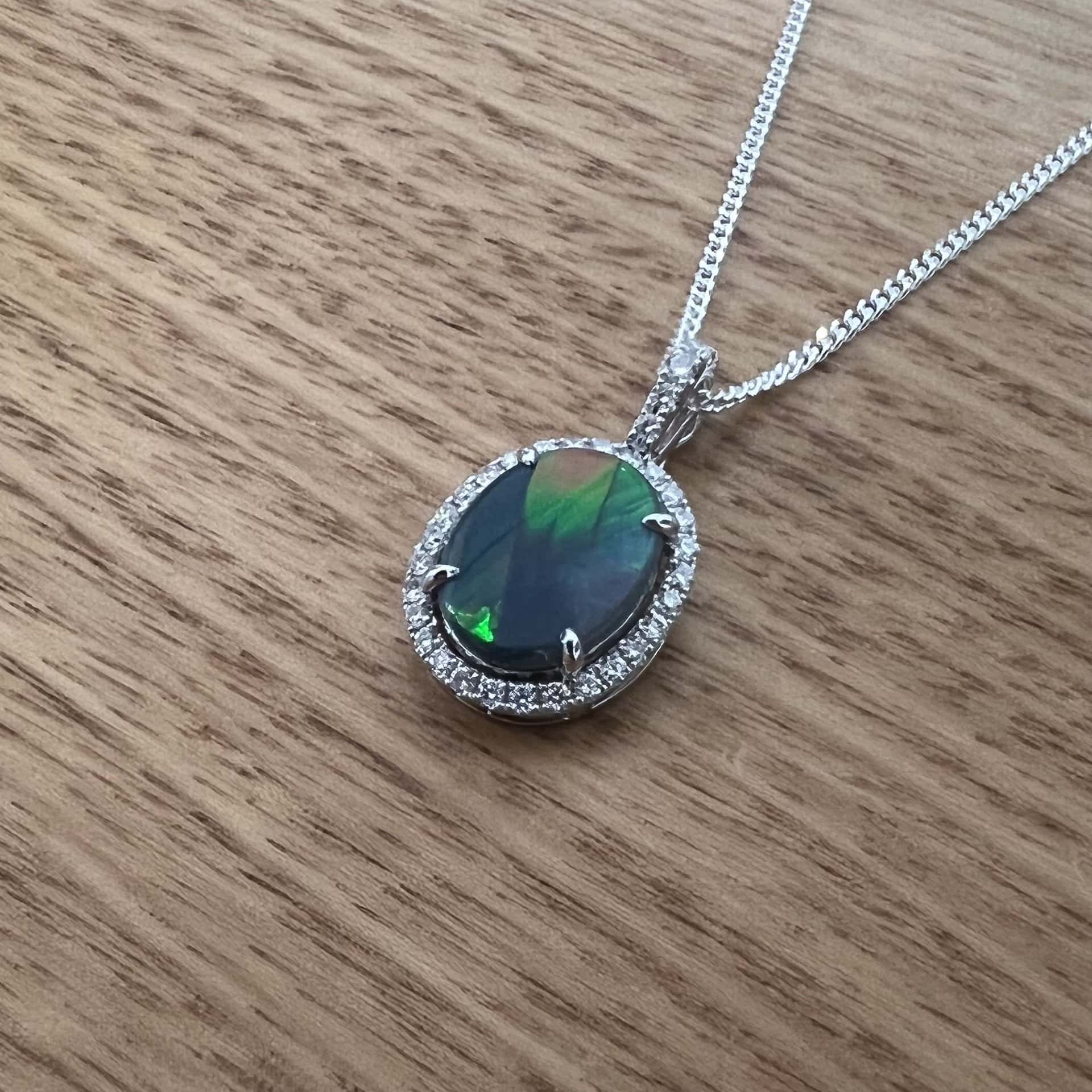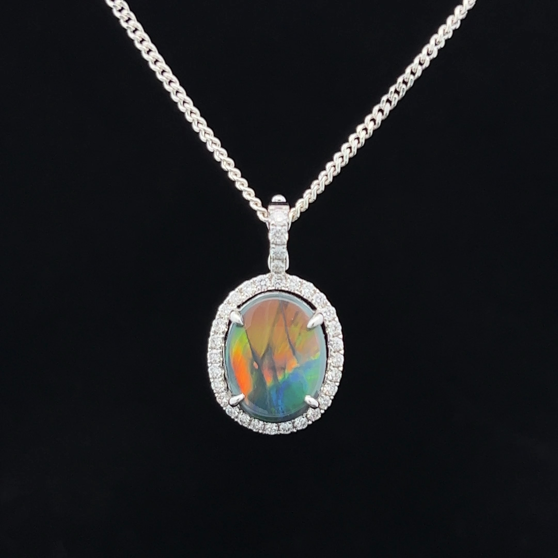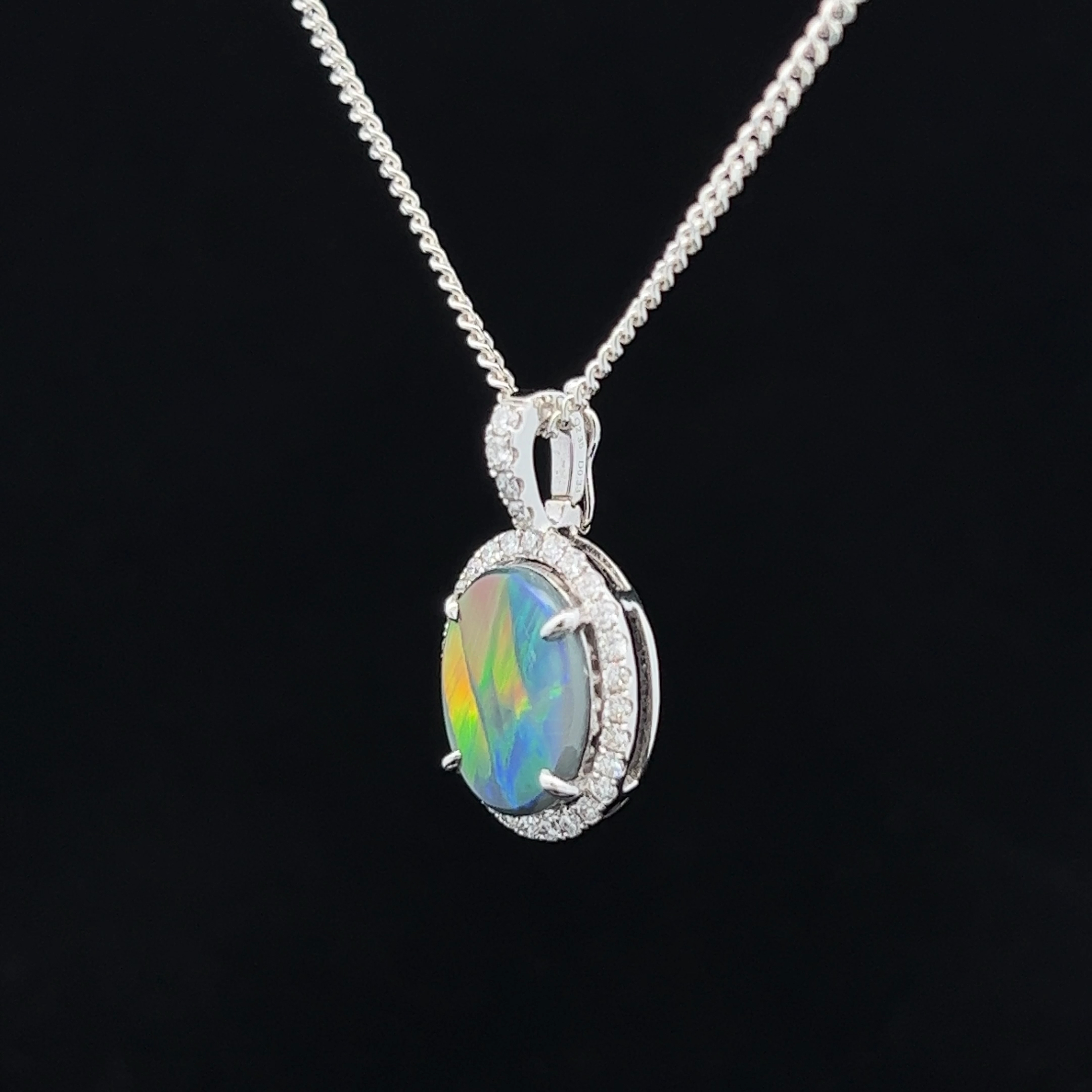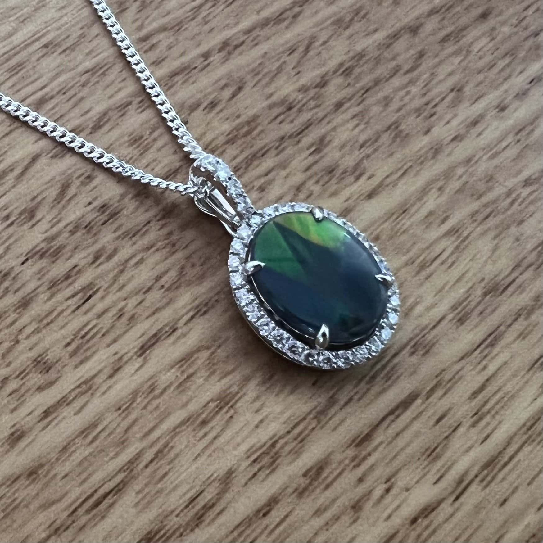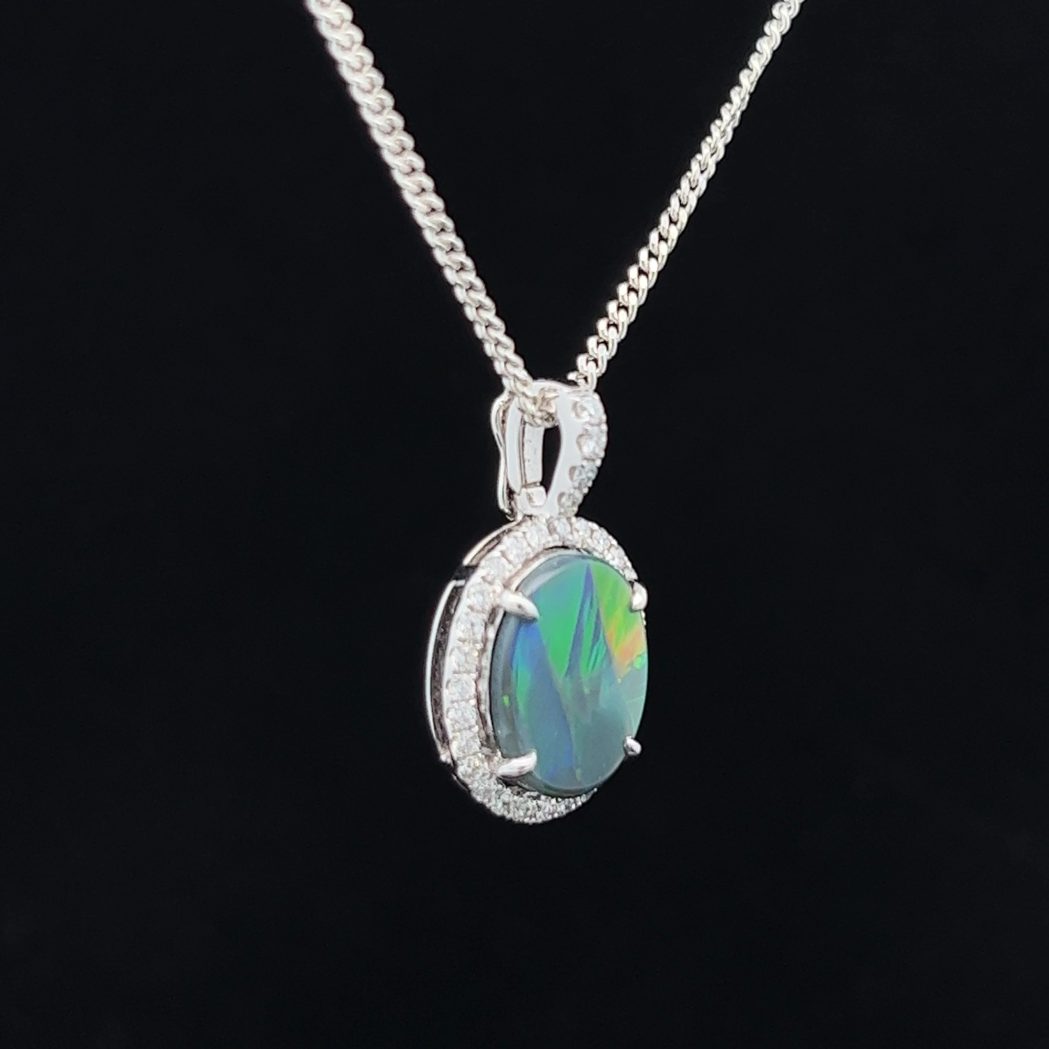 18K White Gold Claw Set Lightning Ridge Solid Black Opal and Diamond Enhancer Pendant