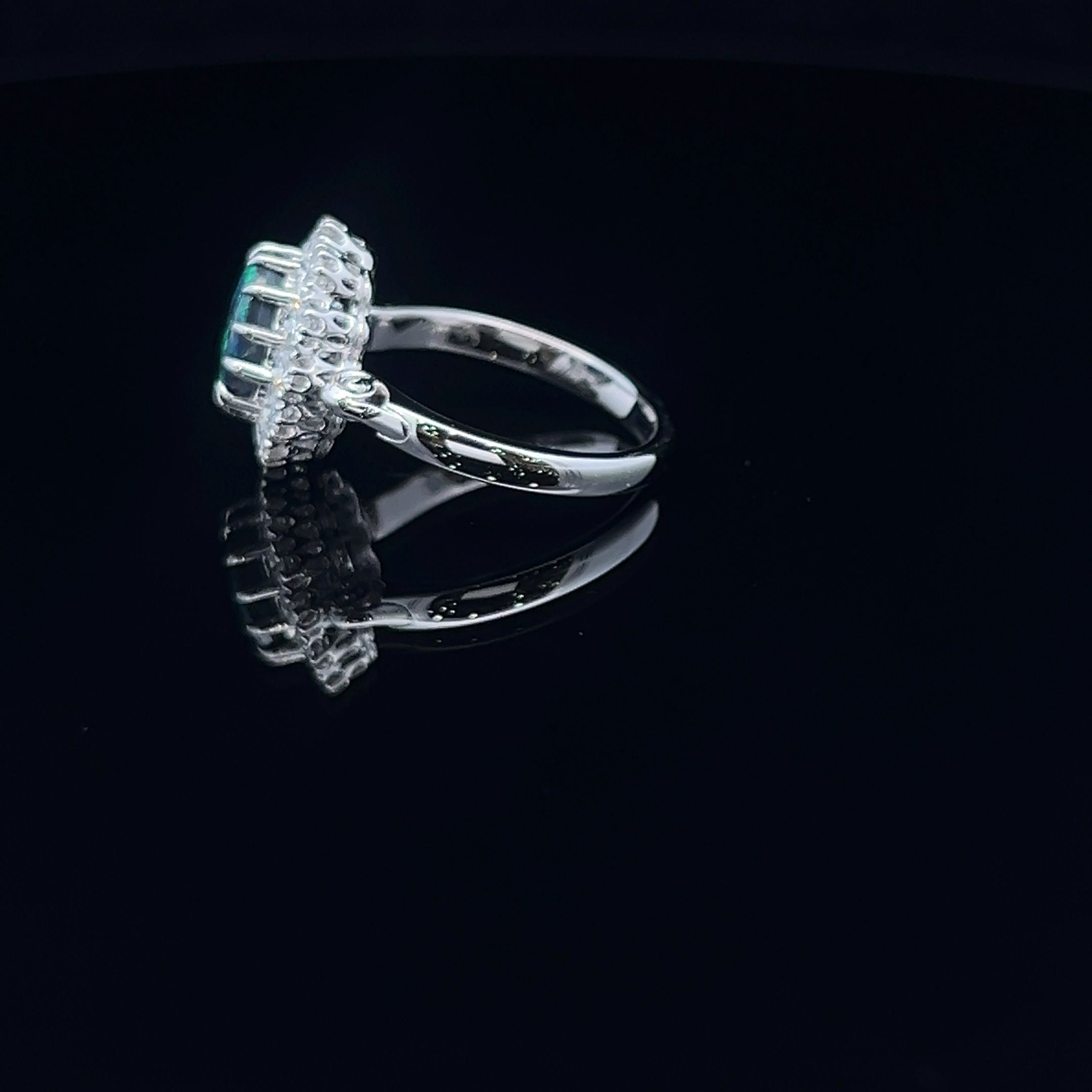18K White Gold Solid Black Opal & Diamond Halo Ring 77913