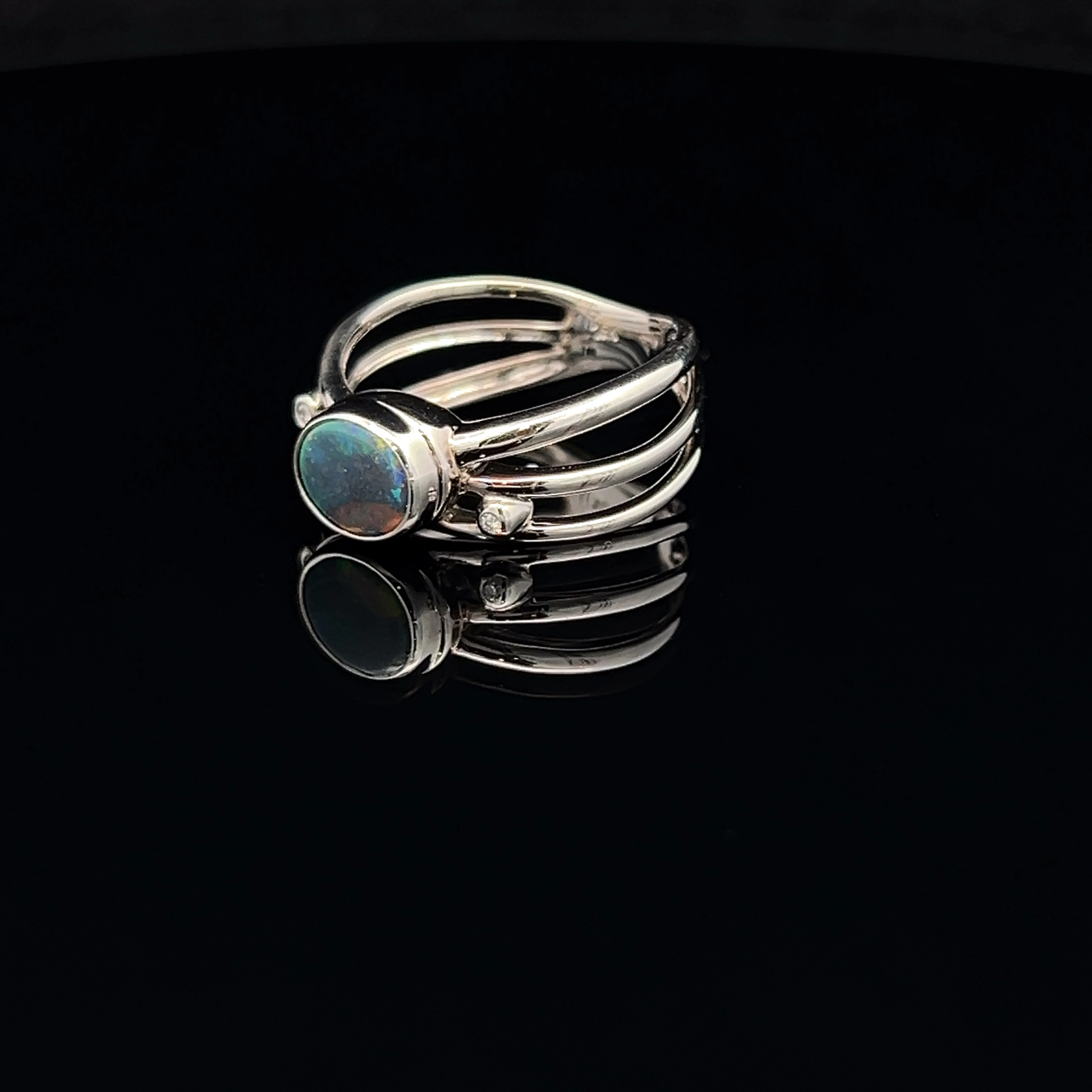 18K White Gold Solid Black Opal & Diamond Ring 26338