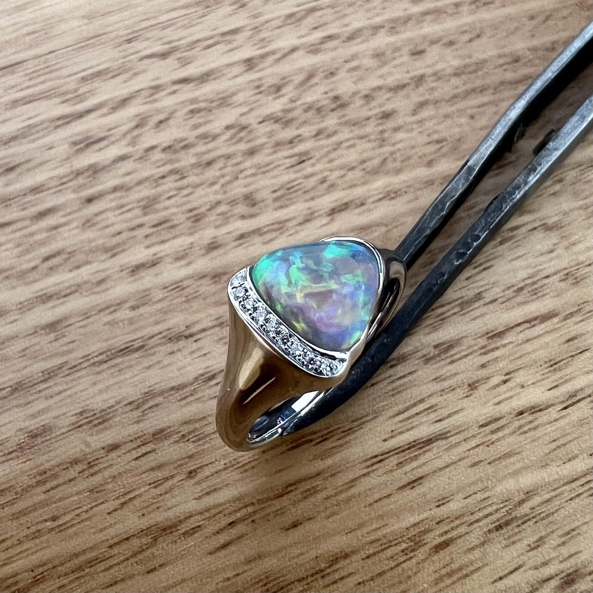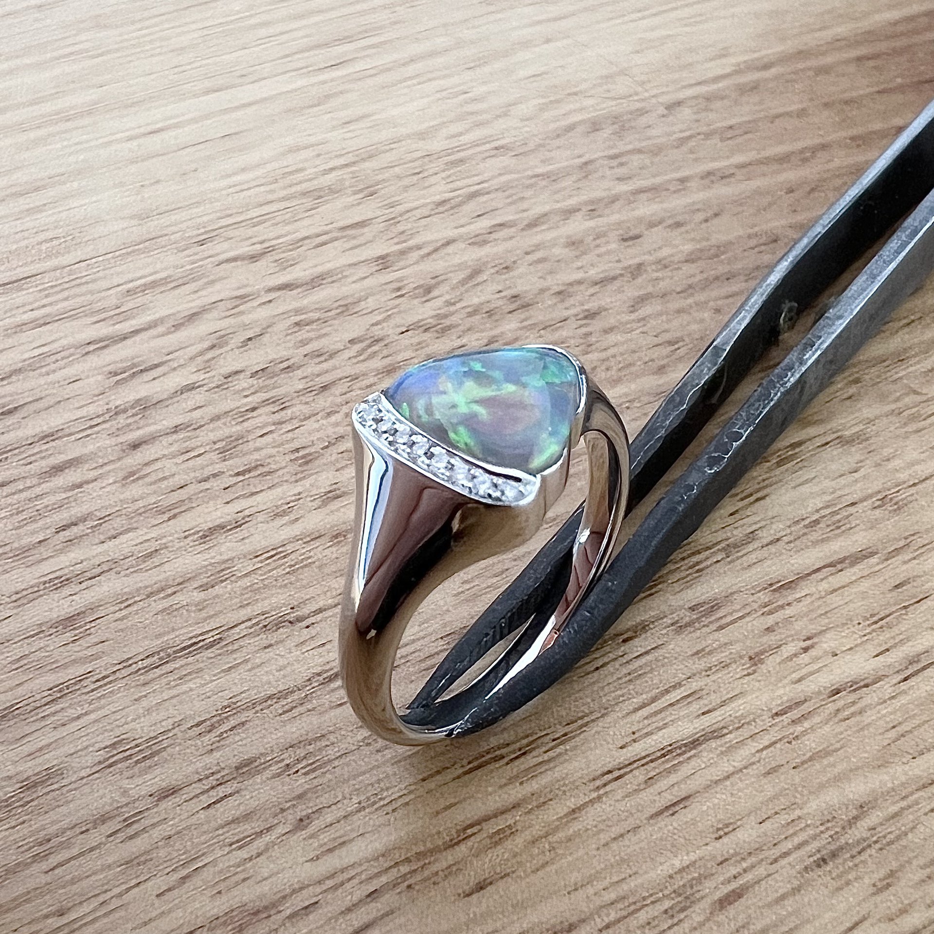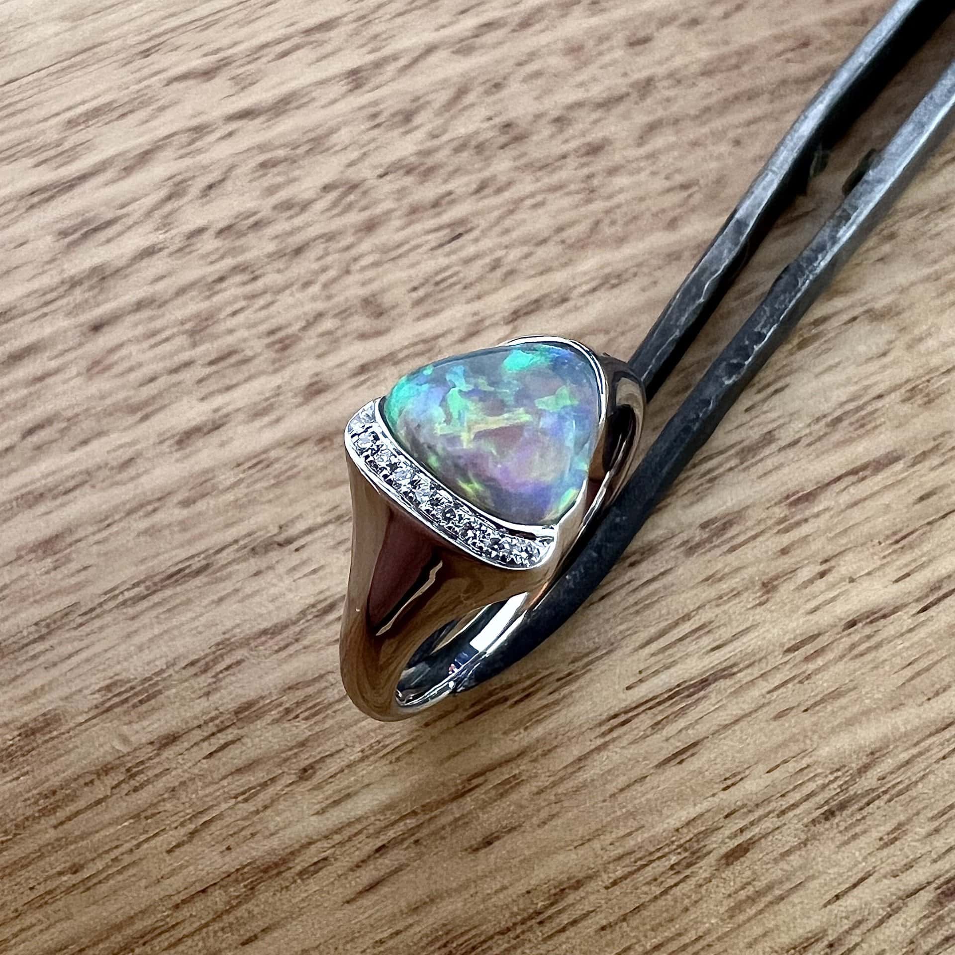 Solid Lightning Ridge Crystal Opal & Diamonds set on 18K White Gold