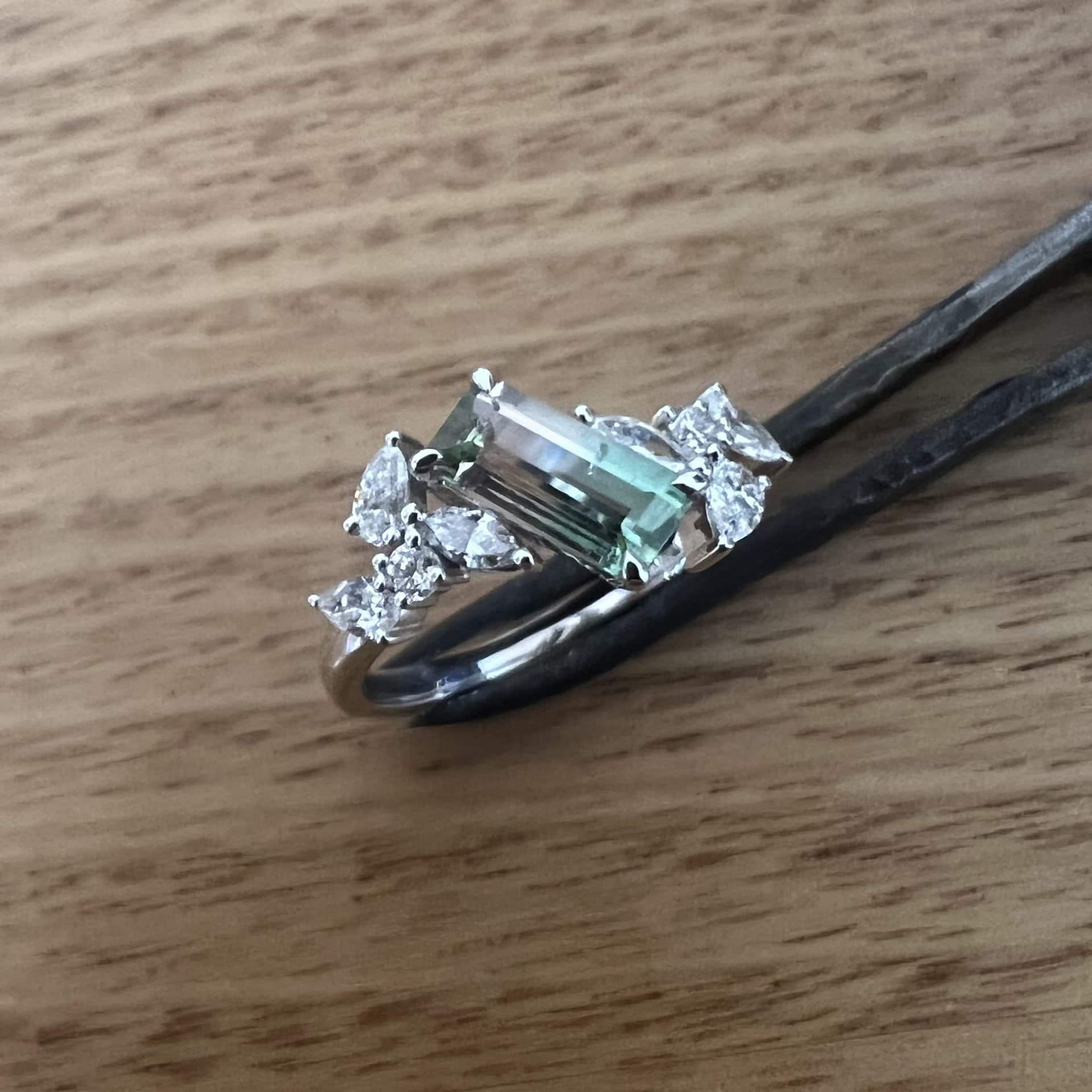 18K White Gold Watermelon Tourmaline & Diamond Ring From Our "Los Colores" Collection