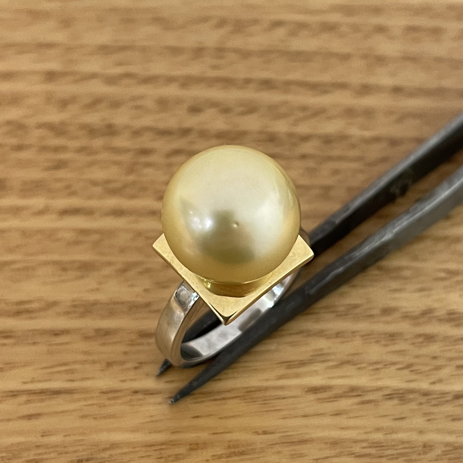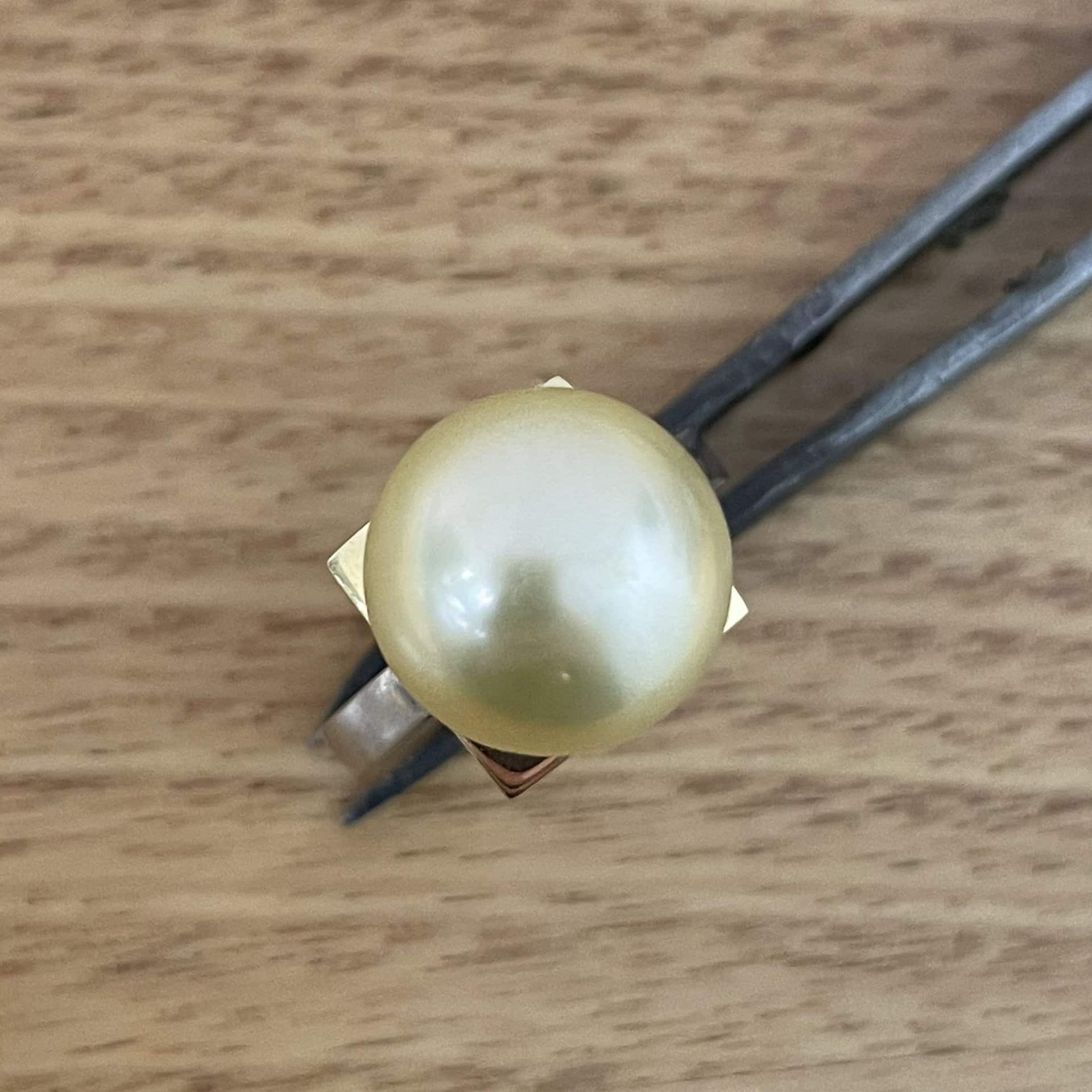 18K Two Tone Yellow and White Gold Natural South Sea Pearl Ring