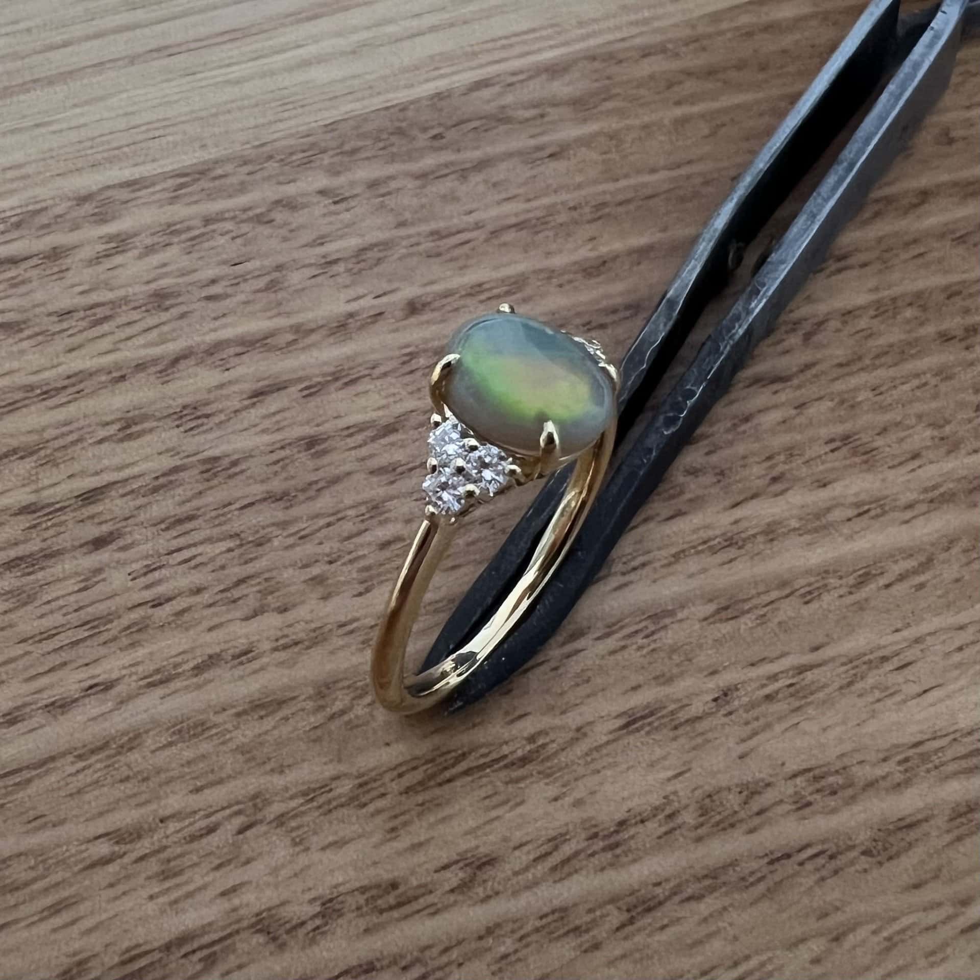 18K Yellow Gold Coober Pedy Solid Light Opal and Diamond Ring