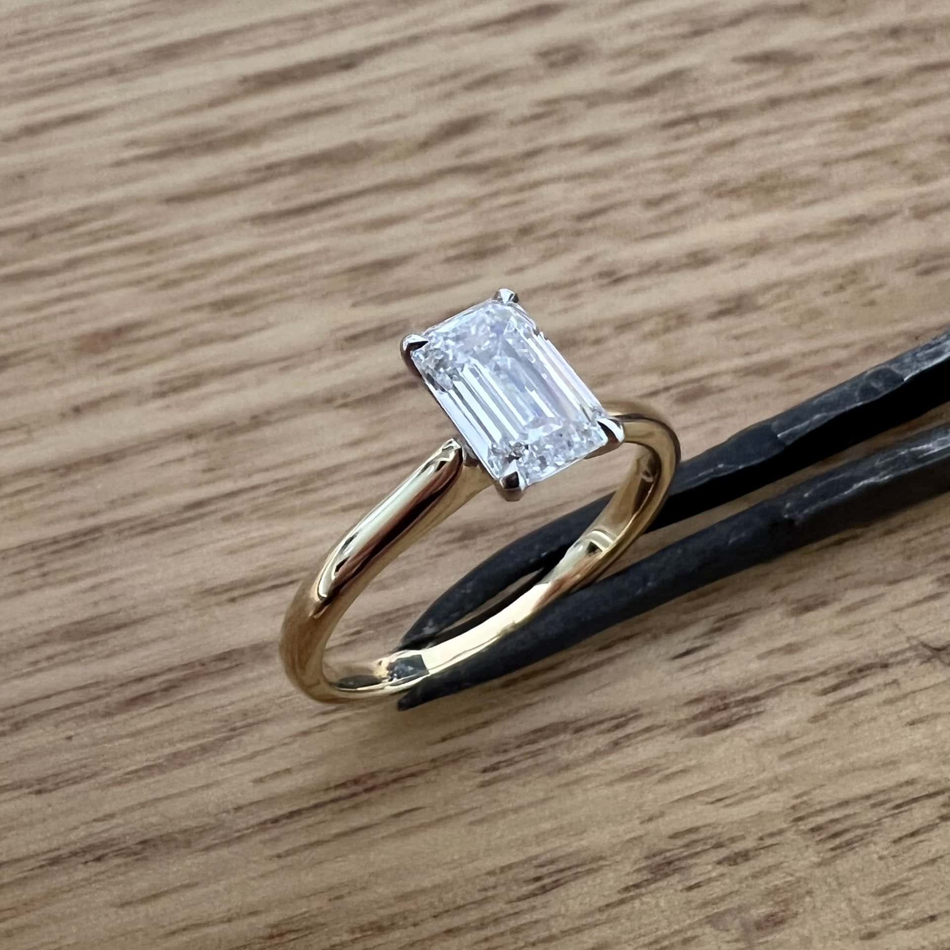18K Yellow Gold & Platinum Emerald Cut Diamond Ring 675854