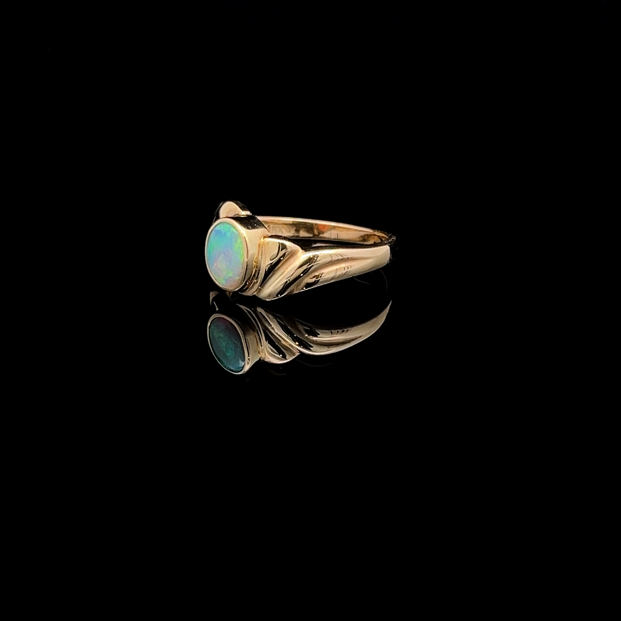 Solid 18k Yellow Gold Lightning Ridge Solid Crystal Opal Ring