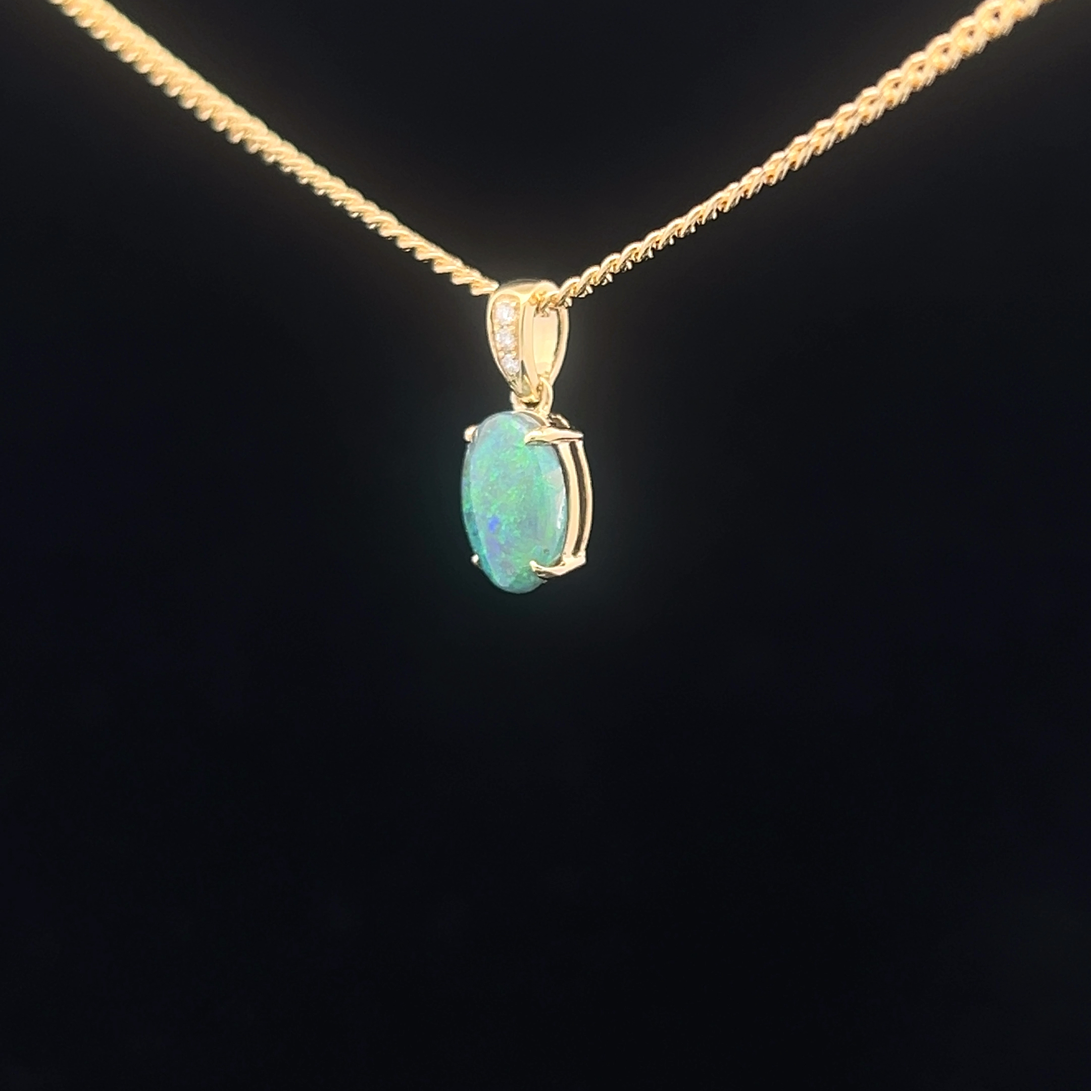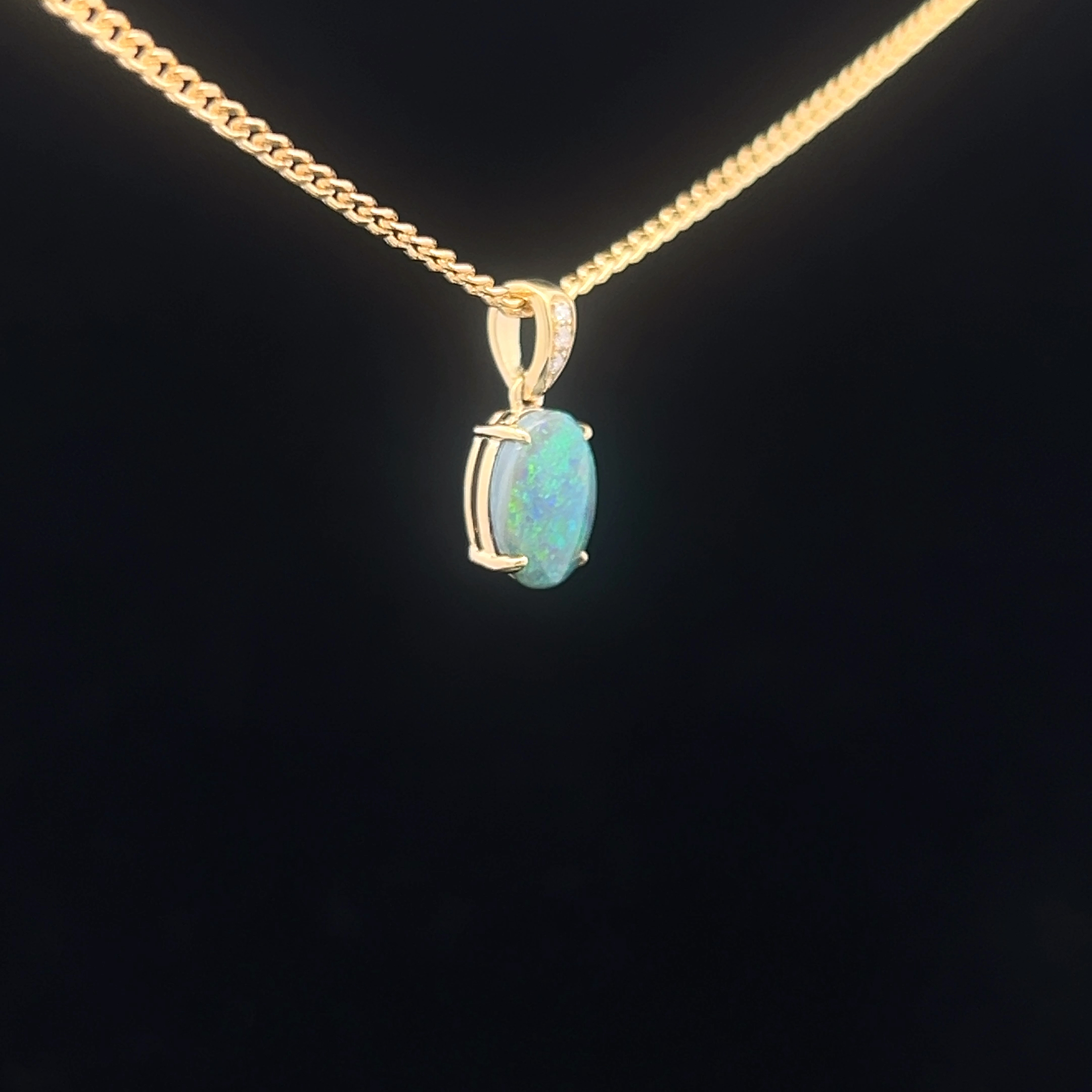 18K Yellow Gold Solid Black Opal & Diamond Pendant 826461