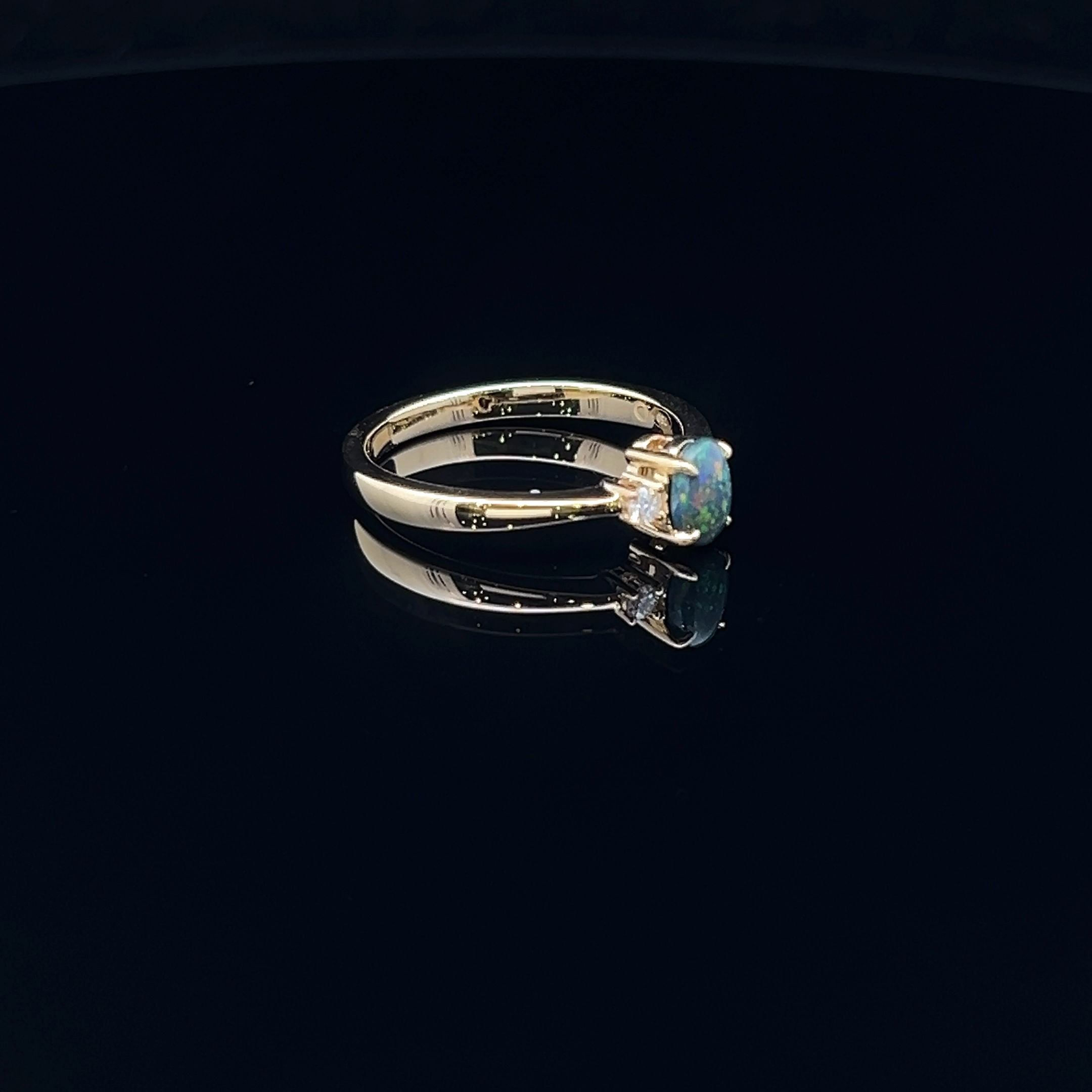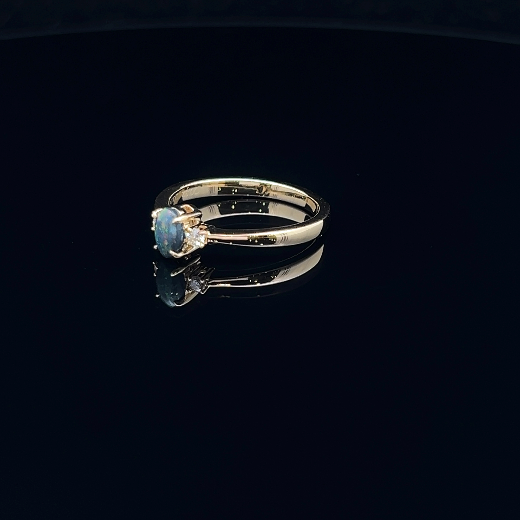 18K Yellow Gold Solid Coober Pedy Black Opal & Diamond Ring