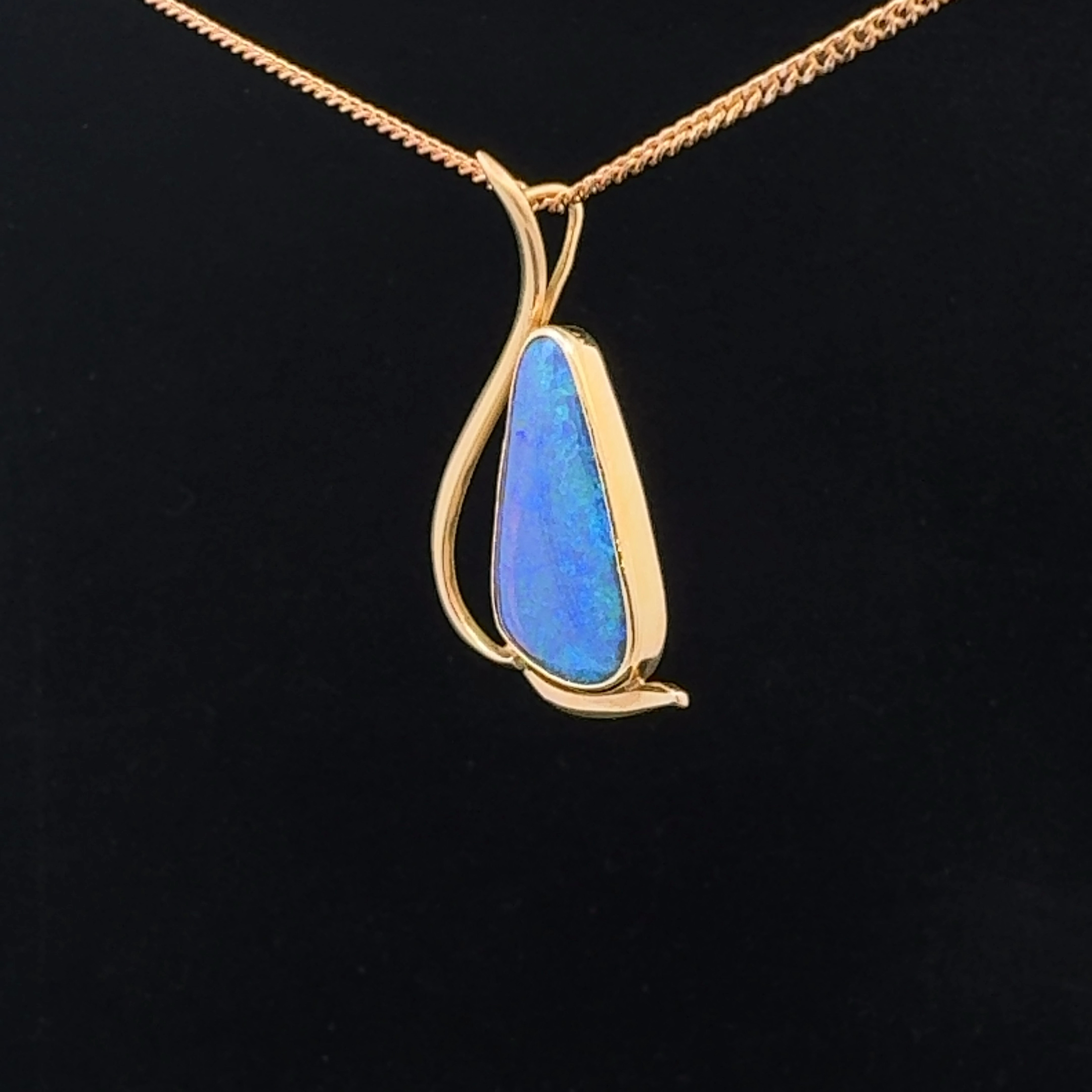 18K Yellow Gold Solid Boulder Opal Pendant