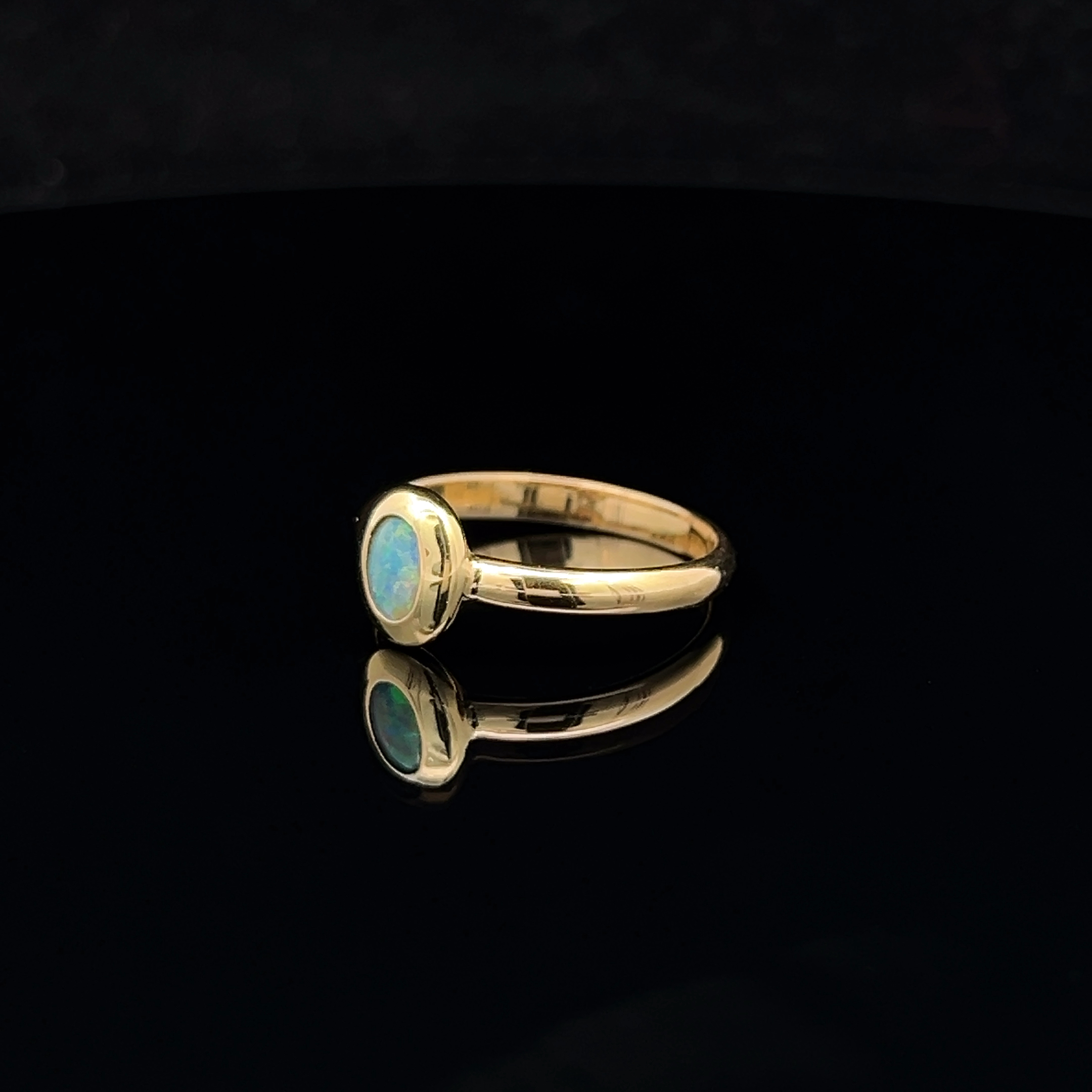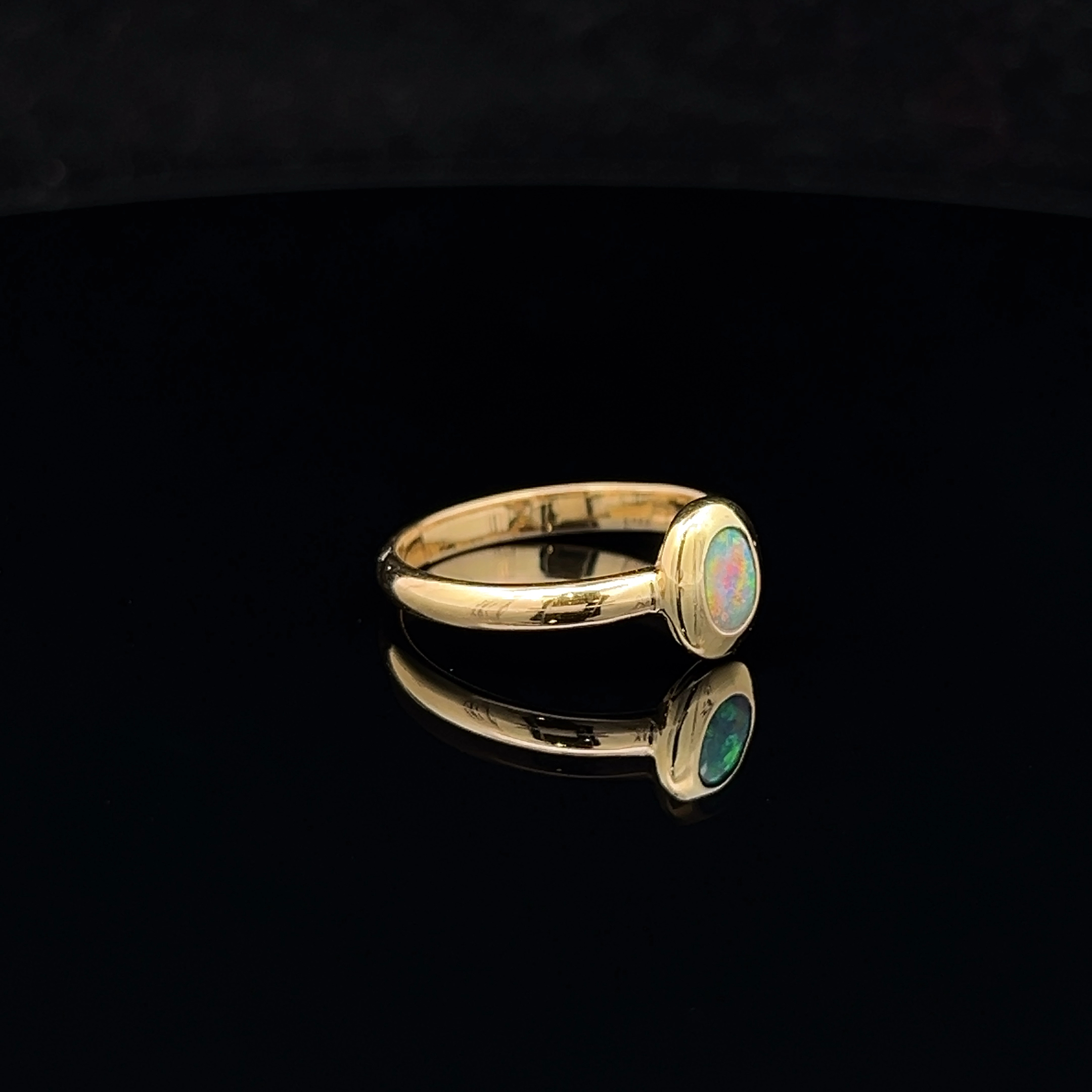 18K Yellow Gold Solid Black Opal Ring 25611