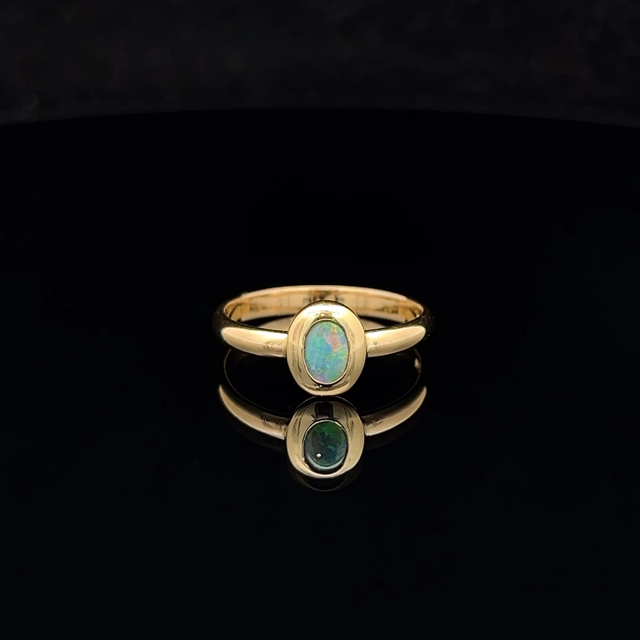 Solid Oval-cut Black Opal set in an intricate 18K Yellow Gold Band