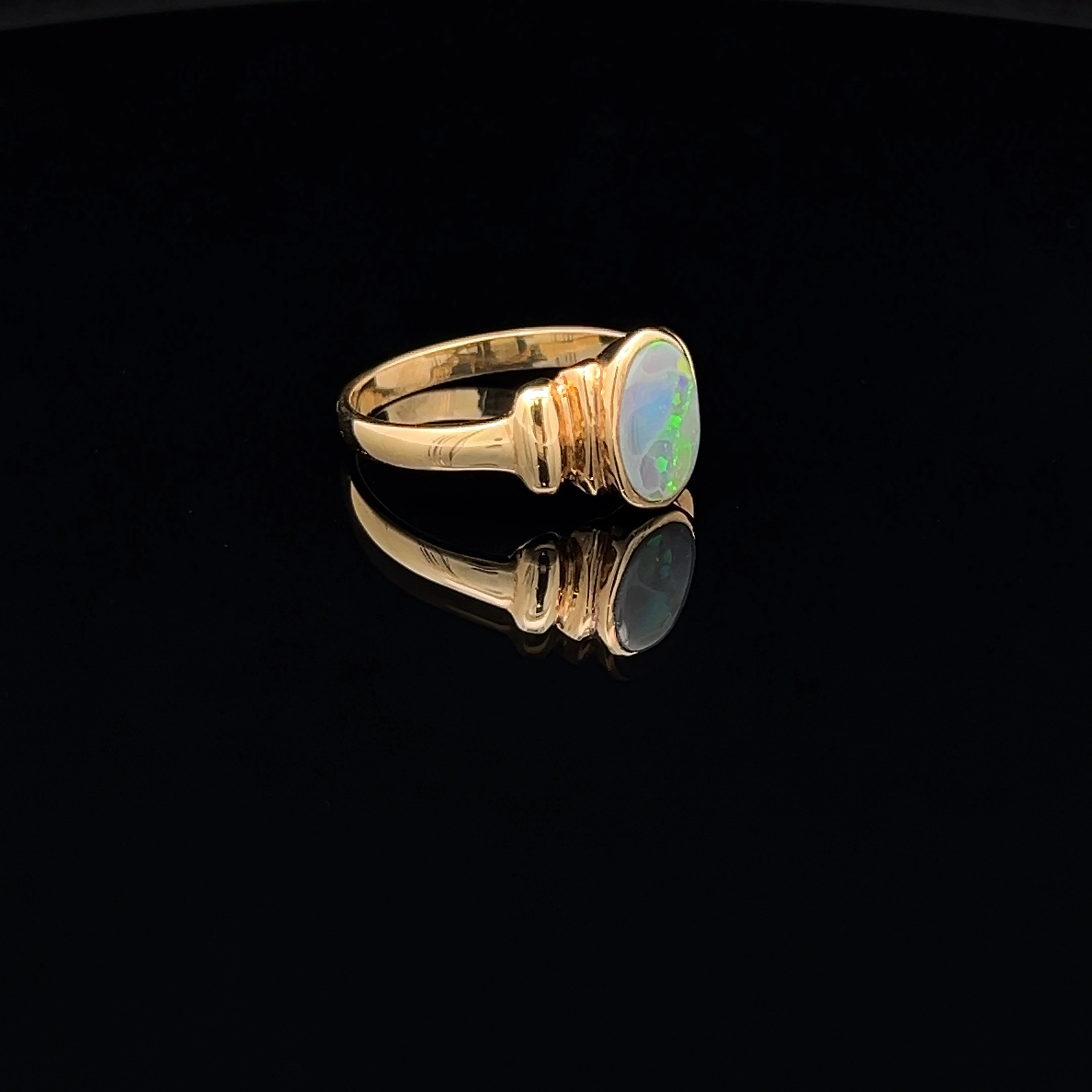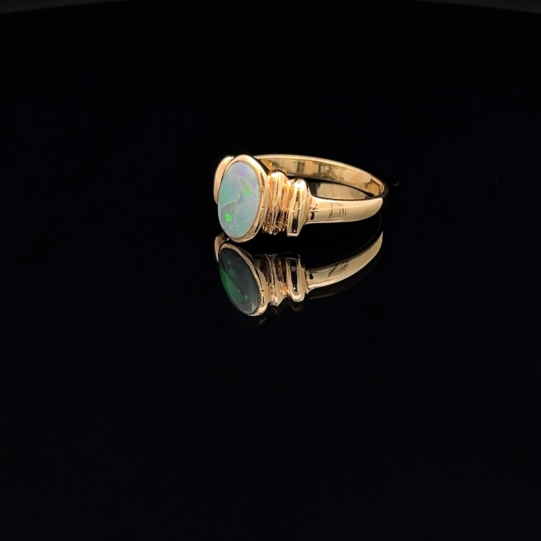 18K Yellow Gold Solid Black Opal Ring 25643