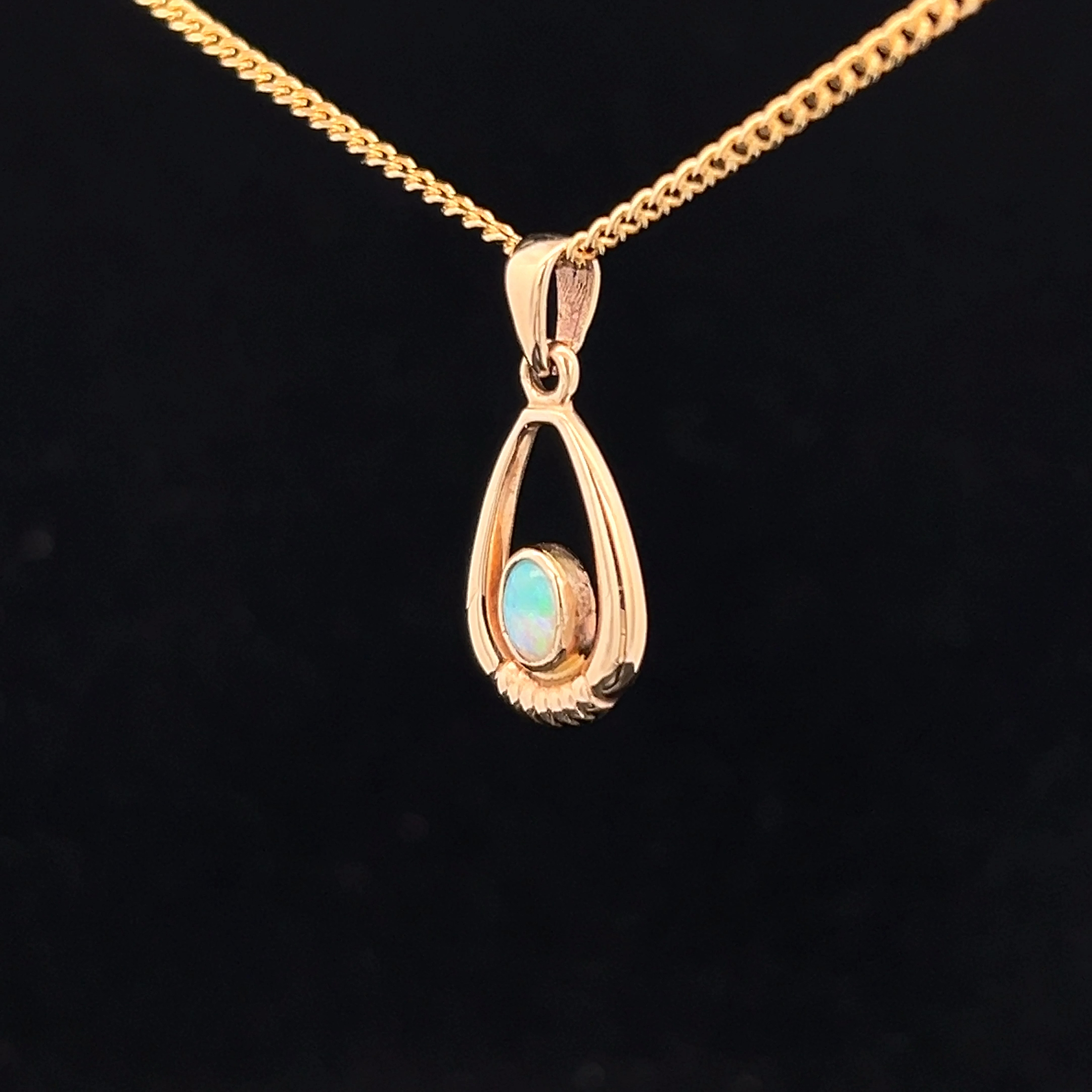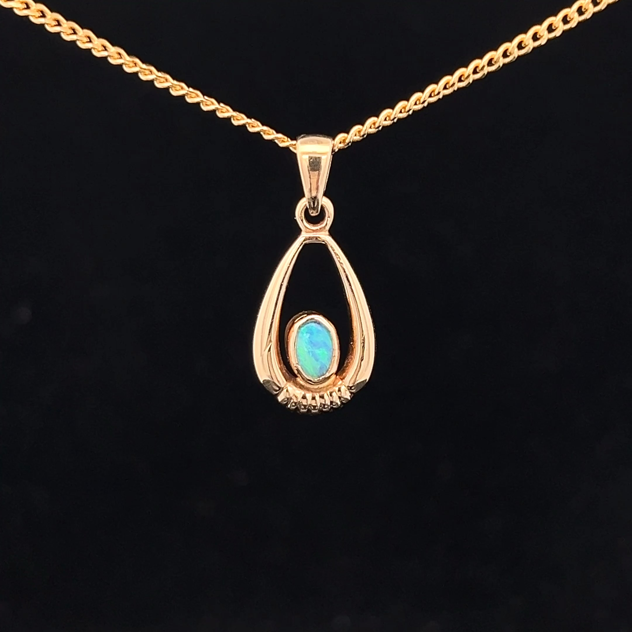 South Australian Solid Crystal Opal Pendant set in 9K Yellow Gold