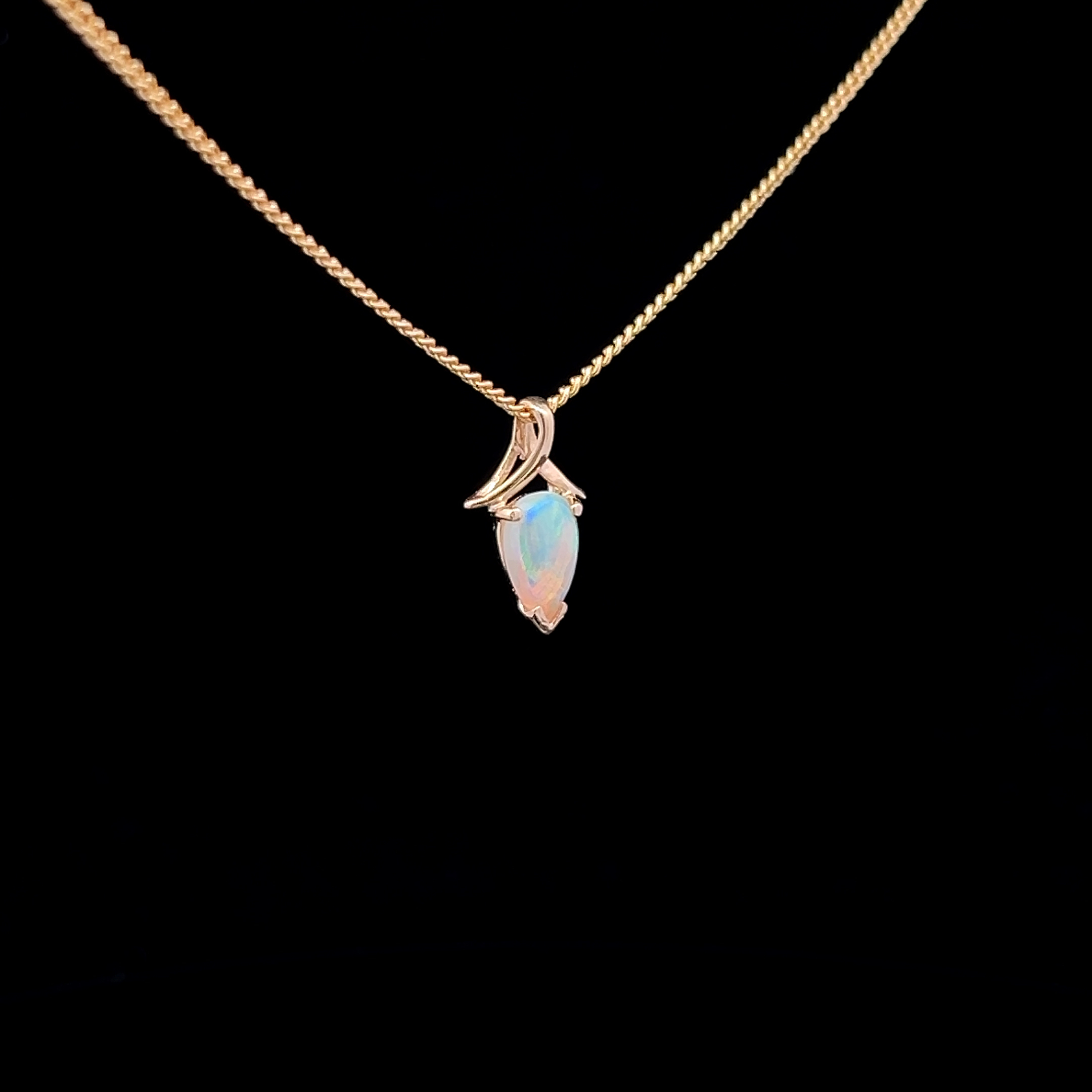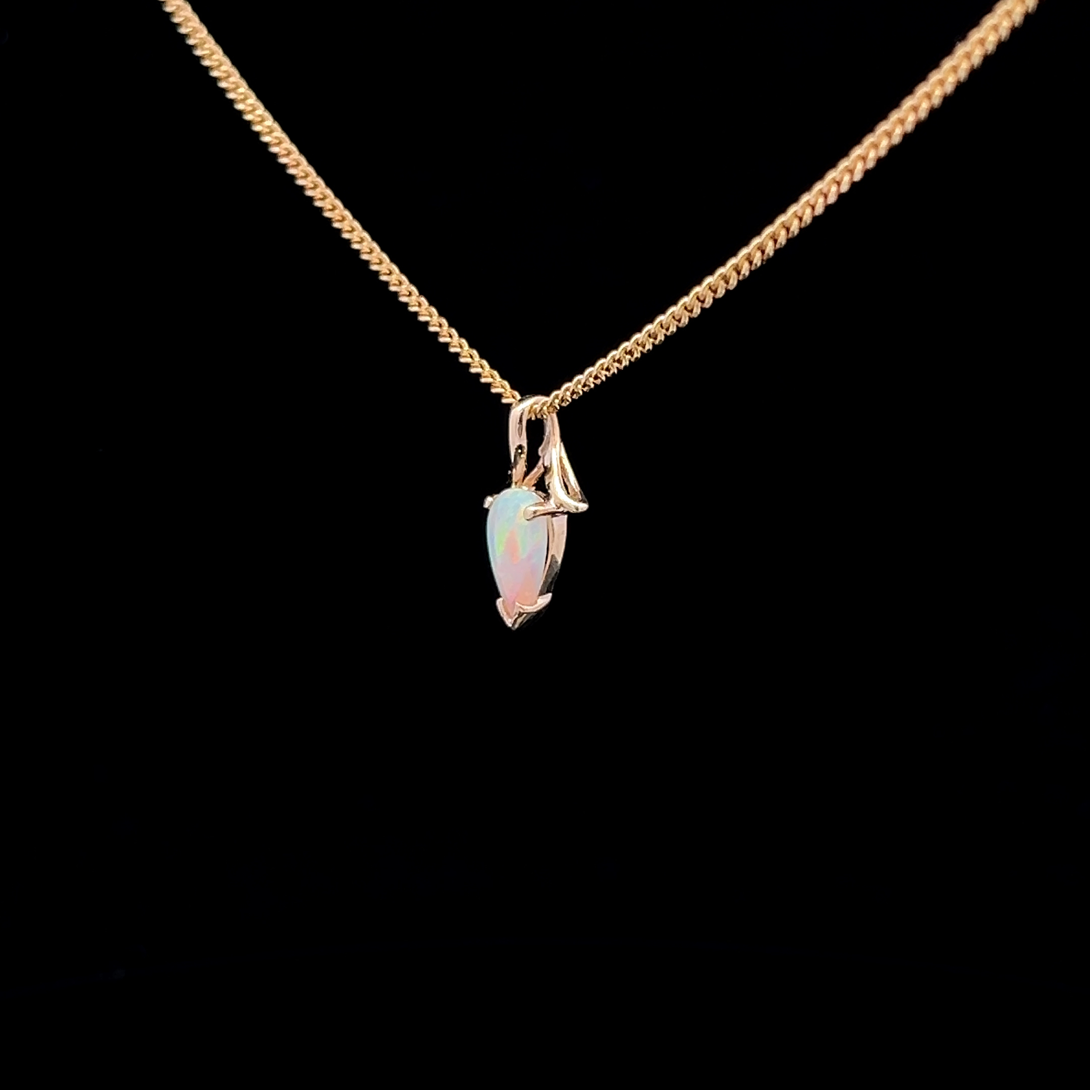 Solid Crystal Opal set in a 9K Yellow Gold Pendant on an intricate Bail