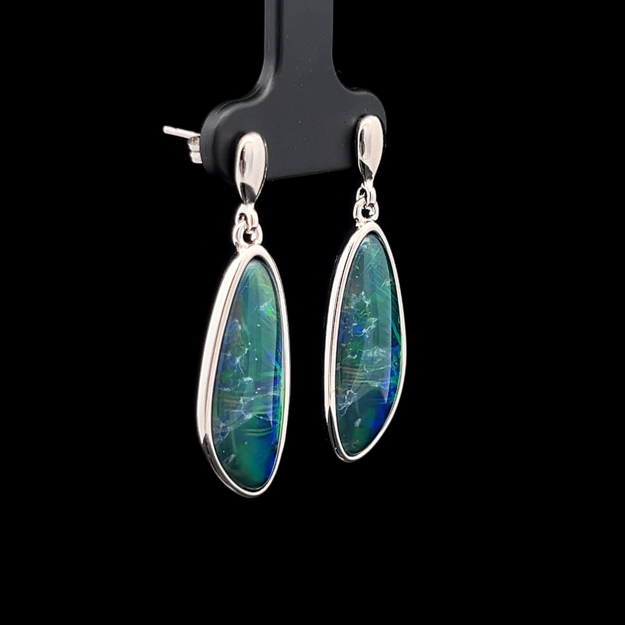 Australian Gem Quality Triplet Opal set in Sterling Silver Drop Earrings