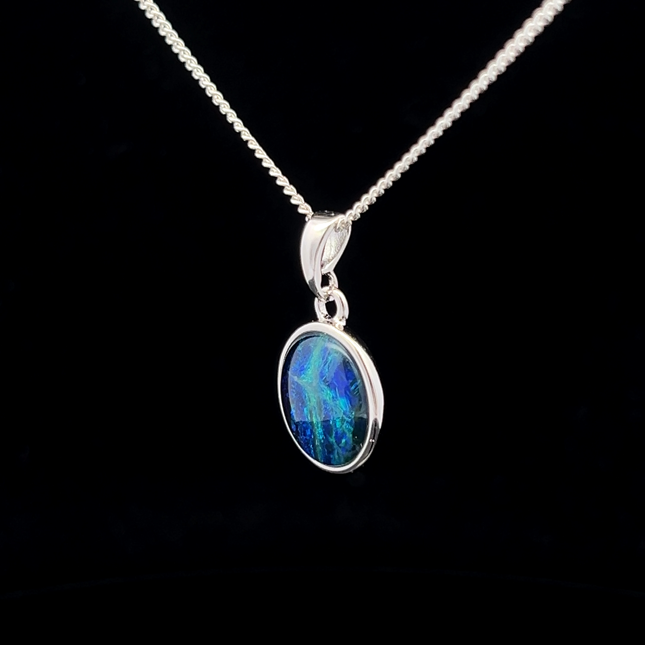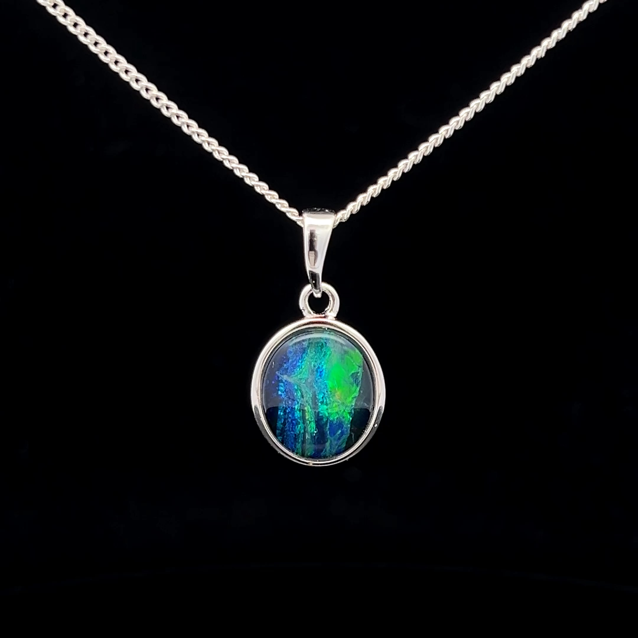Australian Gem Quality Triplet Opal set in Sterling Silver Pendant