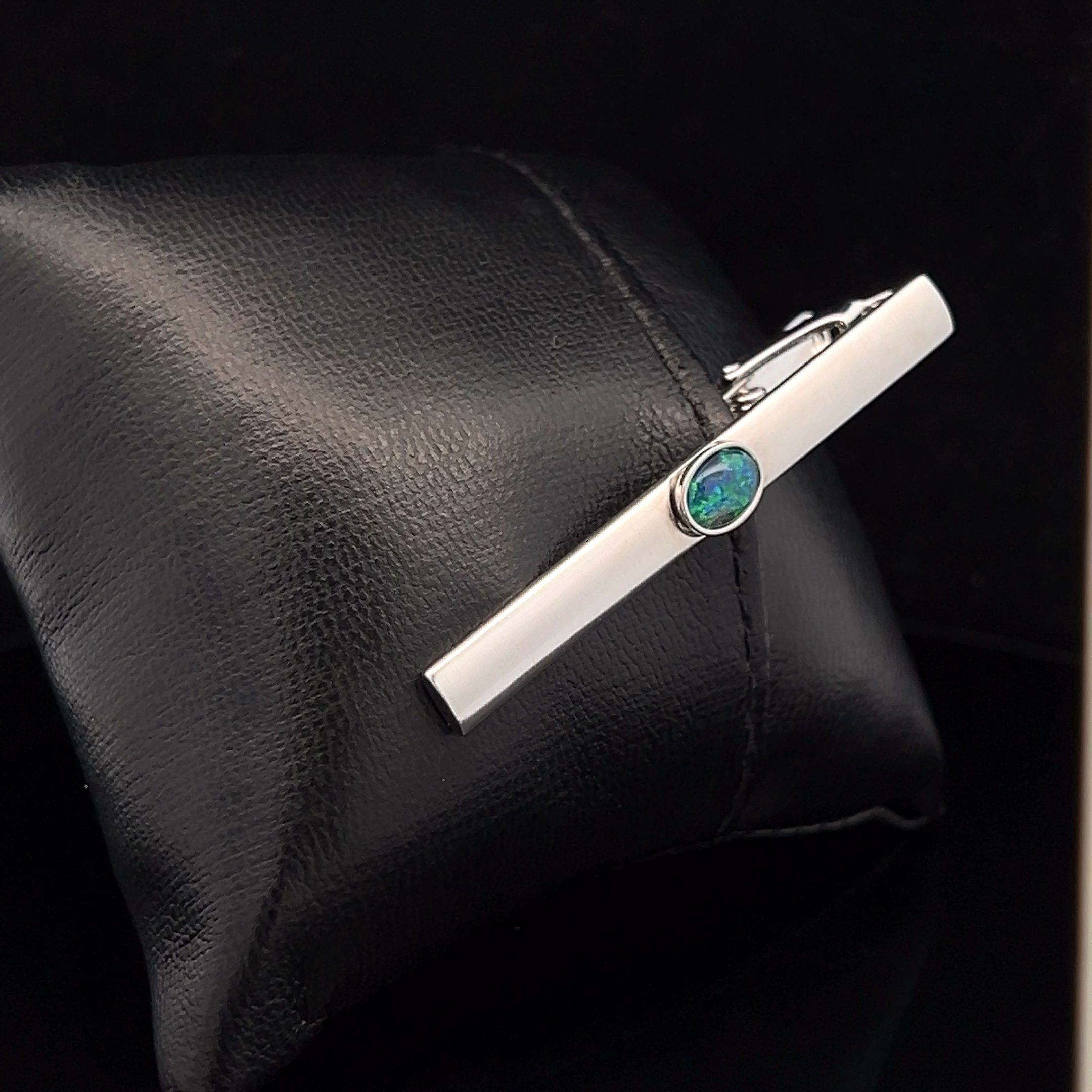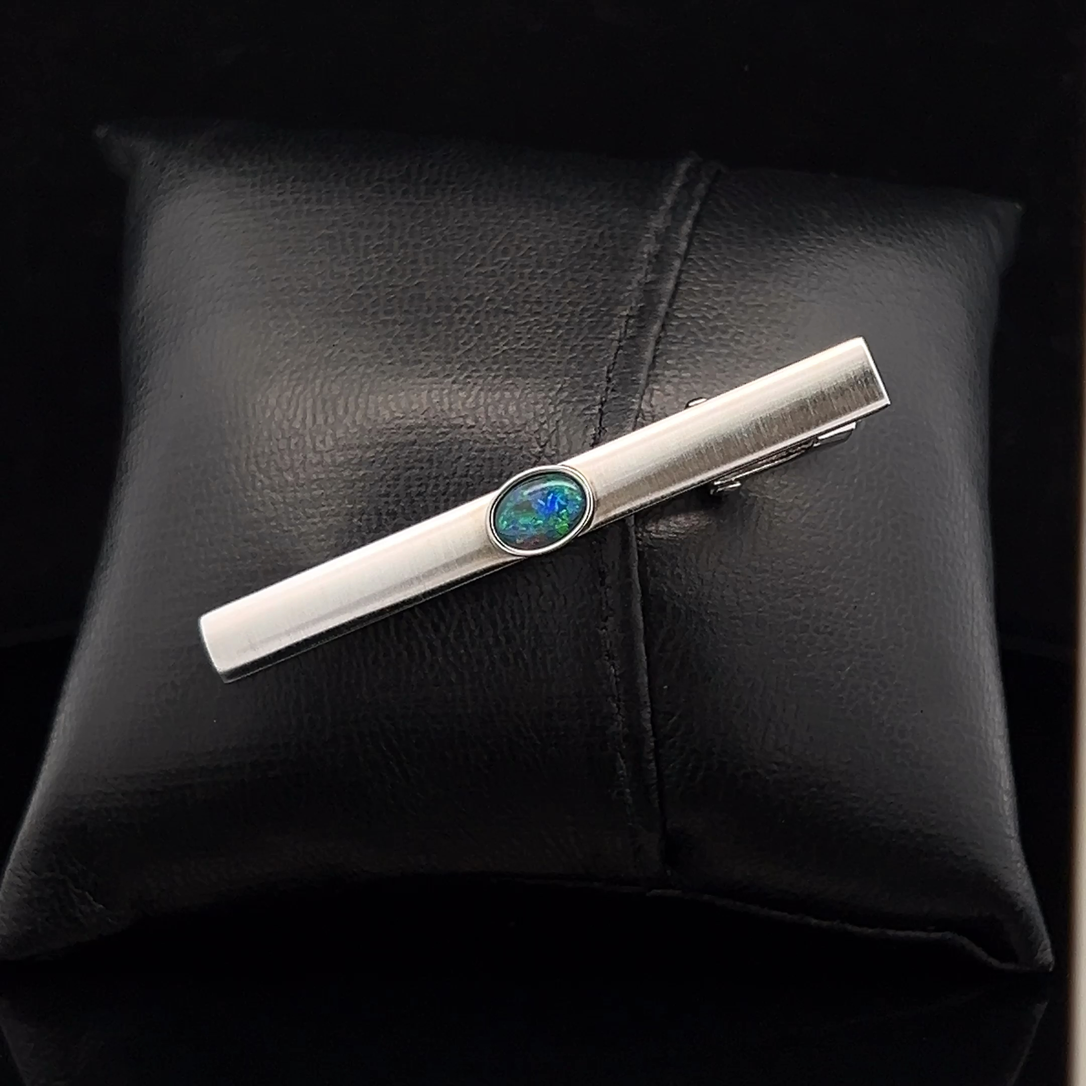 Base Metal Gem Quality Triplet Opal Tie Bar