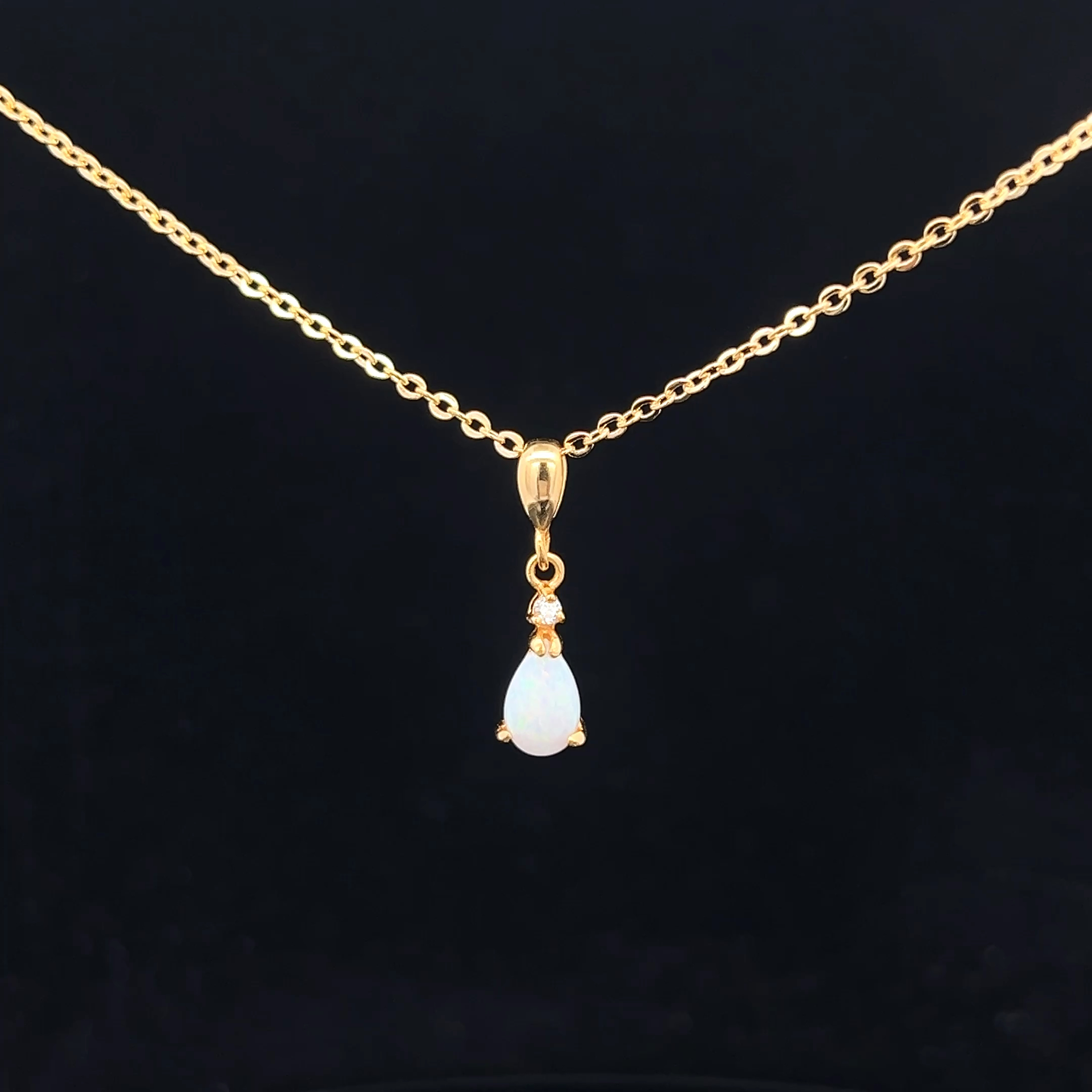 Gold Plated Sterling Silver Solid Light Opal & Cubic Zirconia Pendant 109898