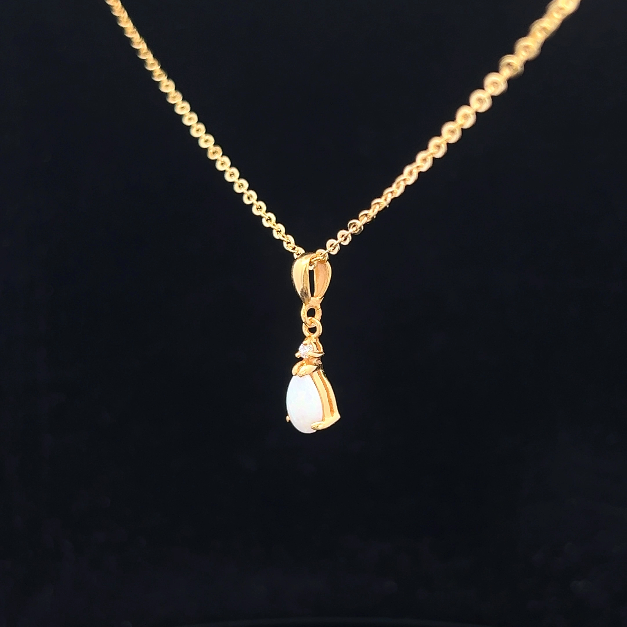 Gold Plated Sterling Silver South Australian Solid Opal and Cubic Zirconia Pendant