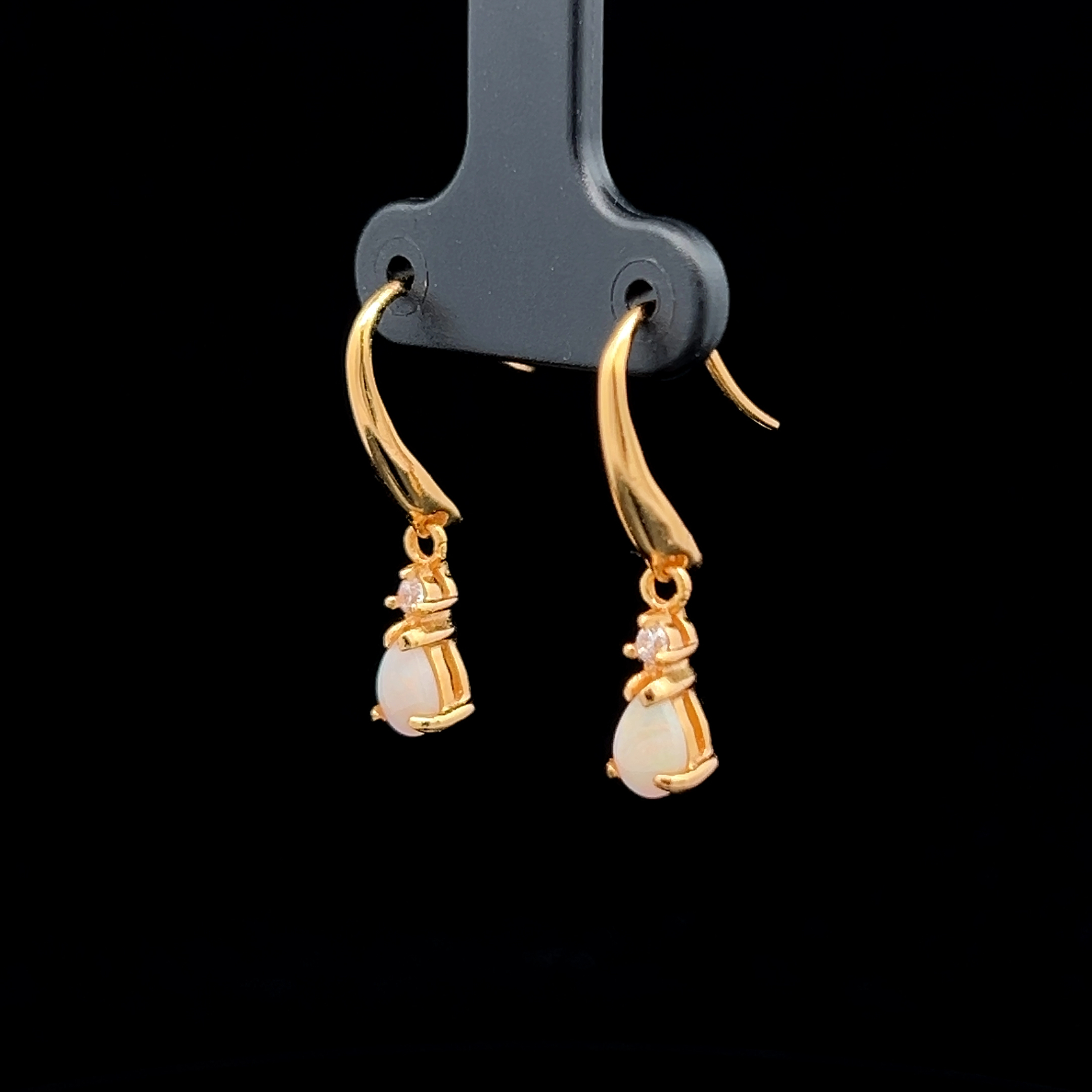 Gold Plated Sterling Silver Solid Light Opal and Cubic Zirconia Earrings 143023