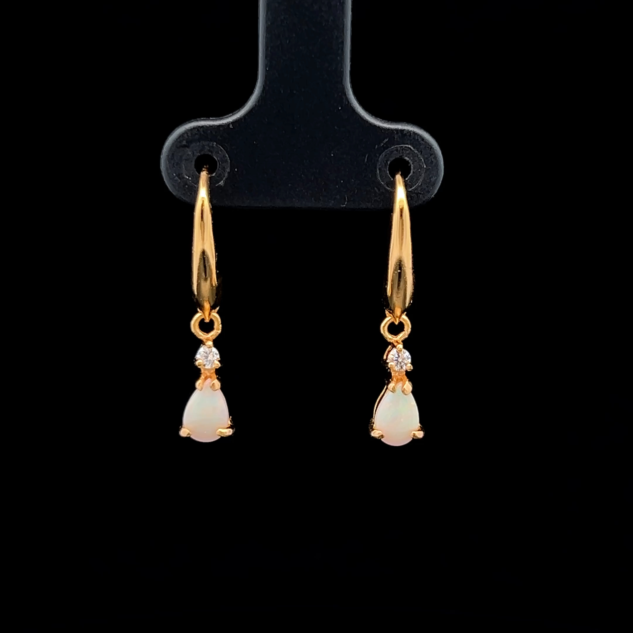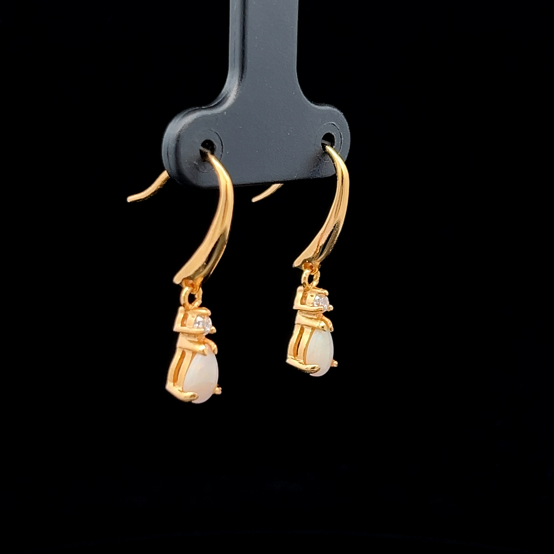South Australian Solid Opal and Cubic Zirconia Earrings set in Gold Plated Sterling Silver