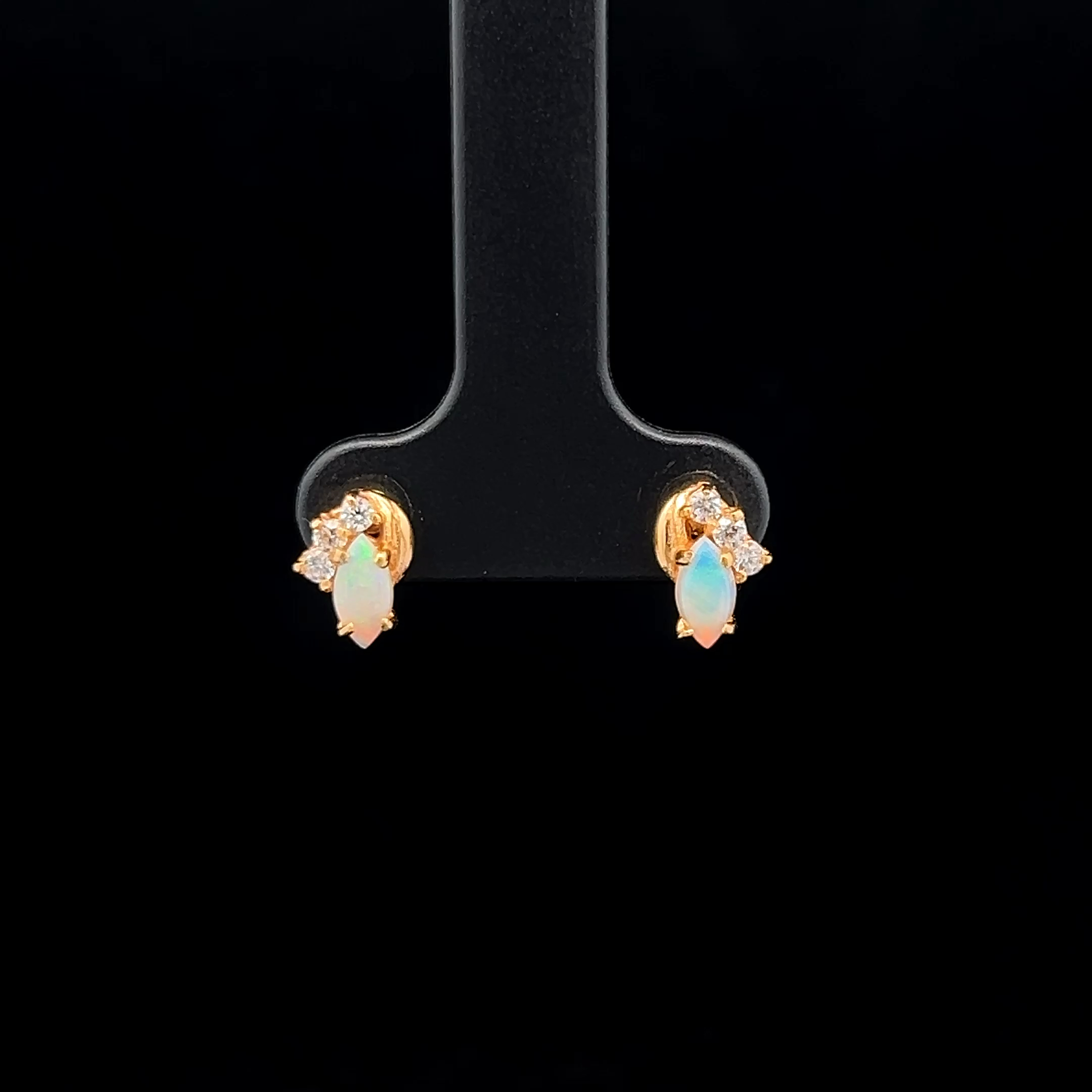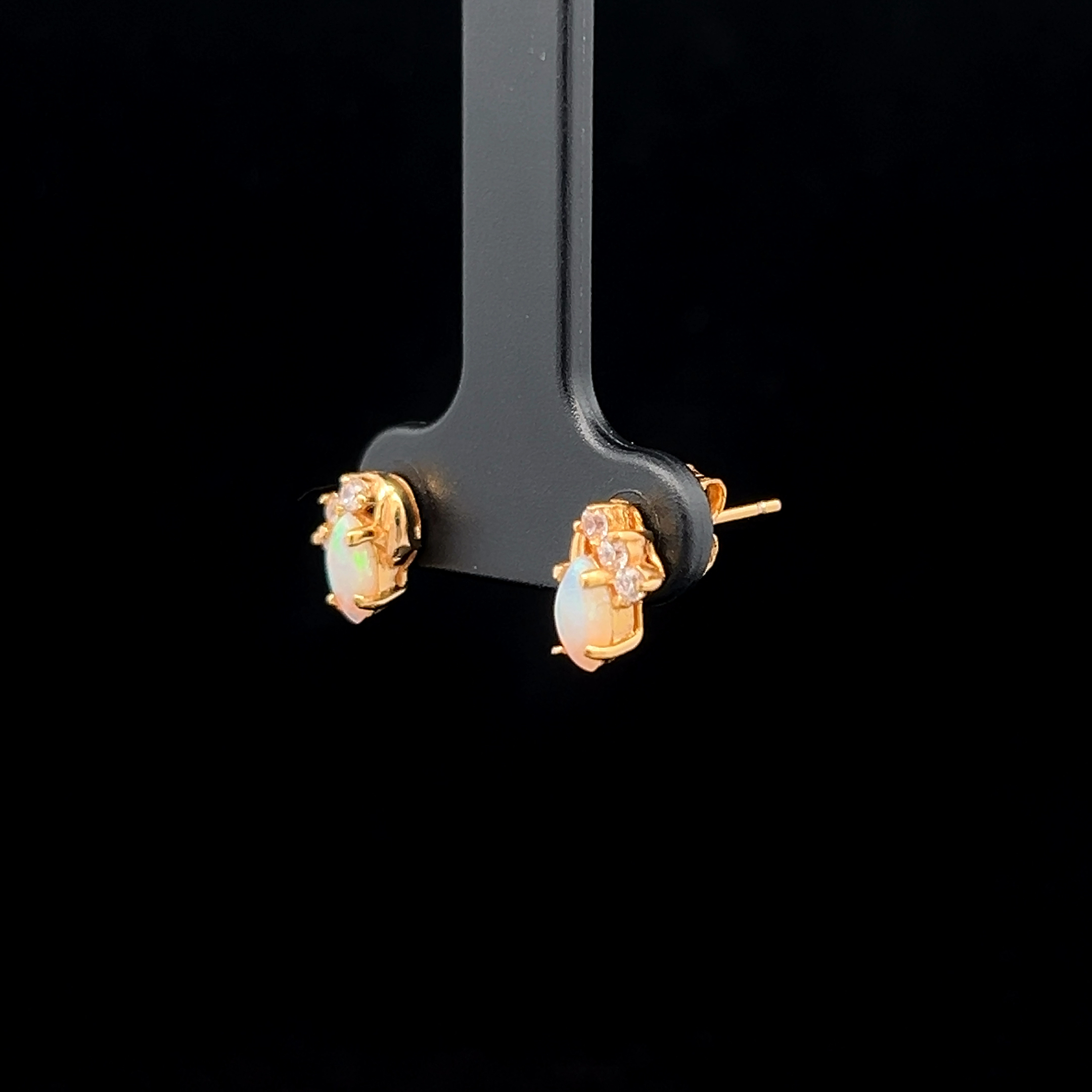 South Australian Marquise Shaped Solid Light Opal & Cubic Zirconia Stud Earrings set in Gold Plated Sterling Silver