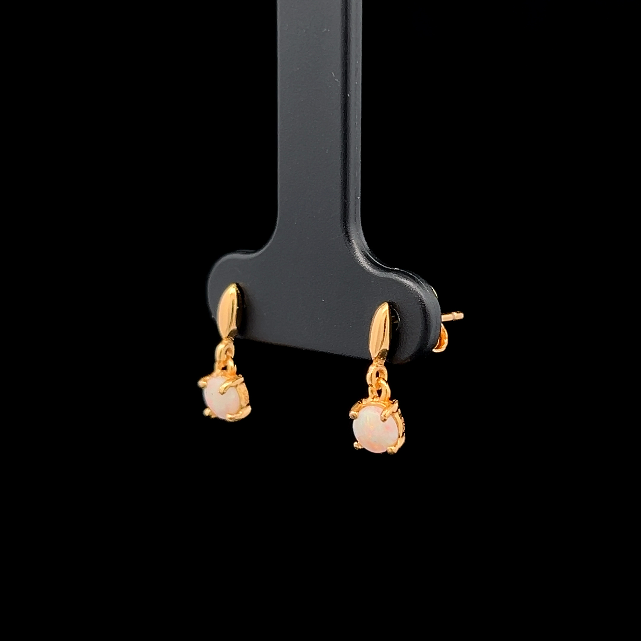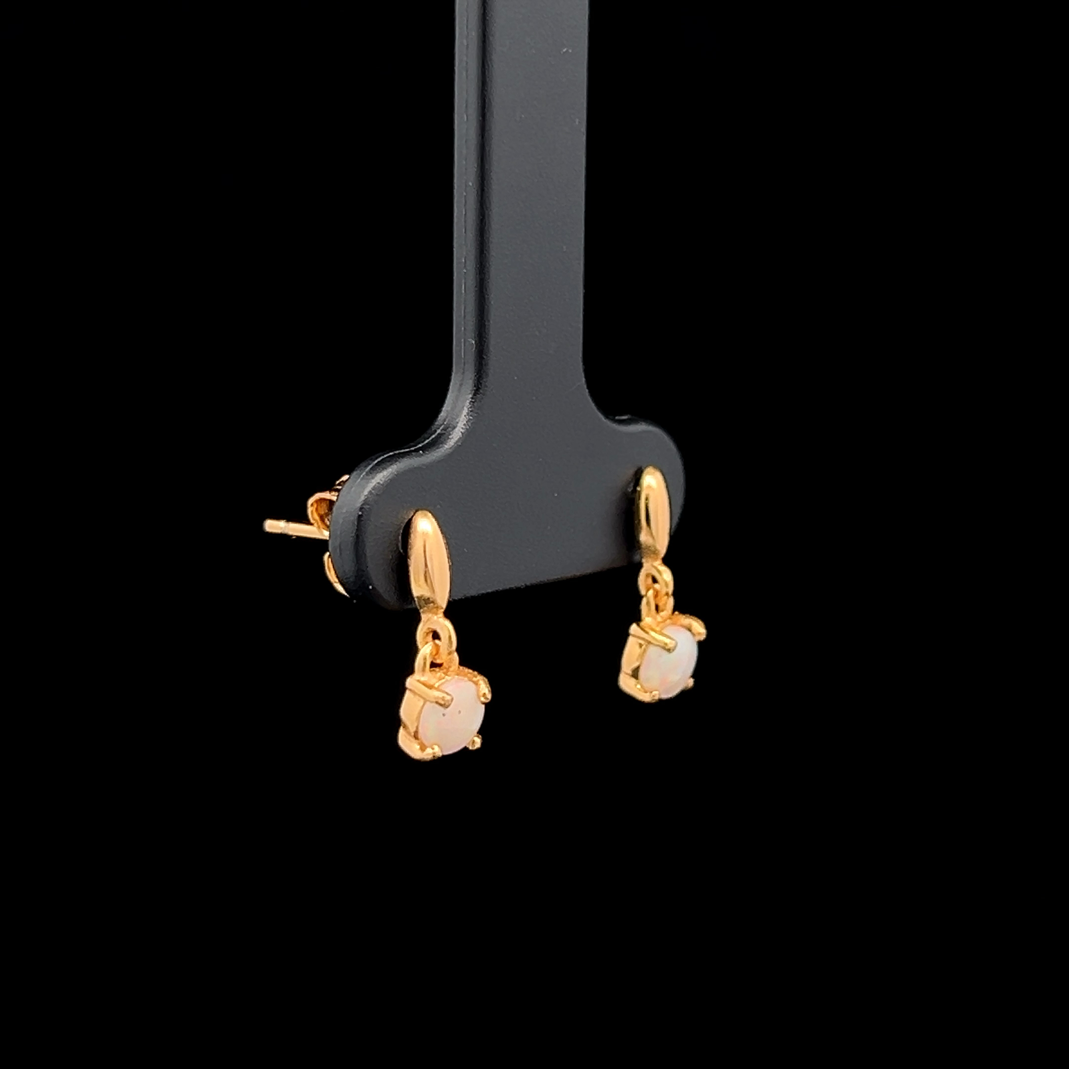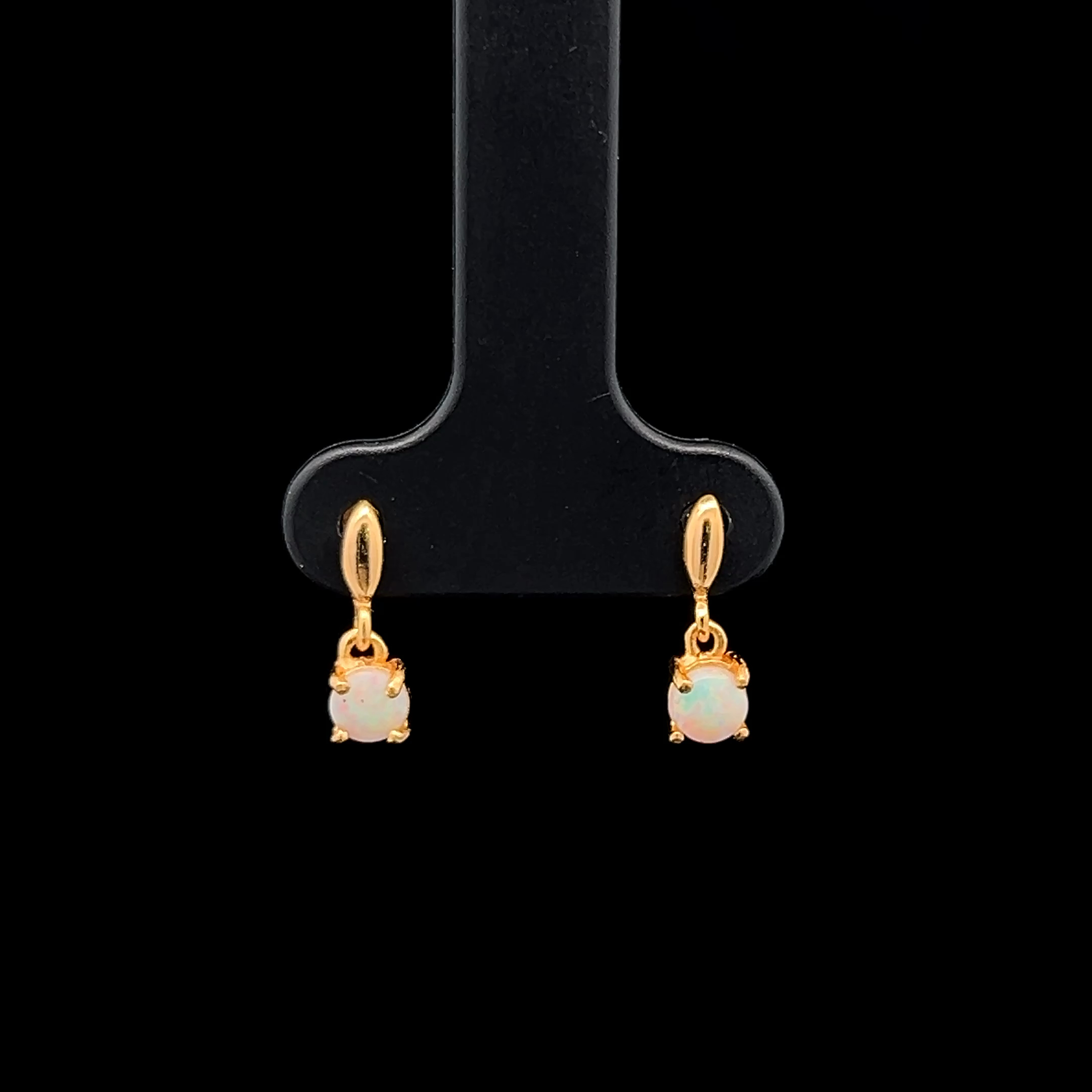 South Australian Round Solid Opal Drop Earrings set in Gold Plated Sterling Silver