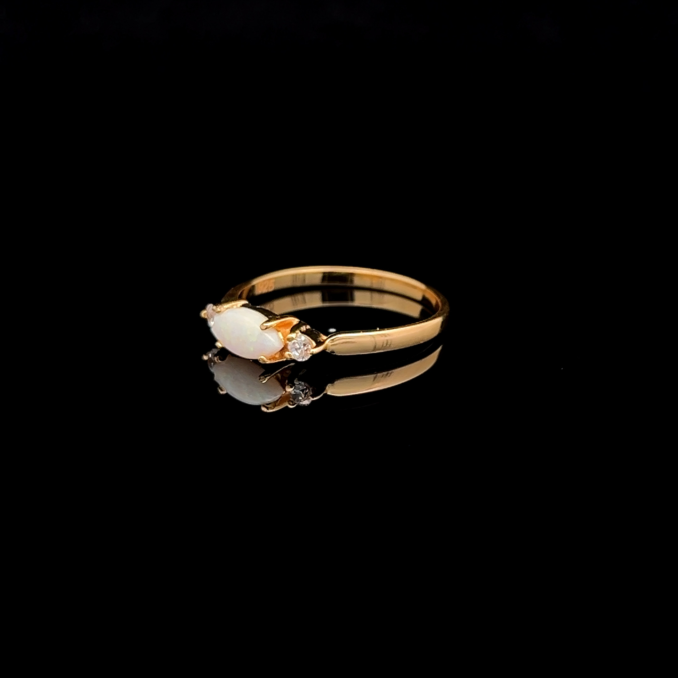 Australian Solid Opal Marquise Ring with Cubic Zirconias Set in Gold Plated Sterling Silver