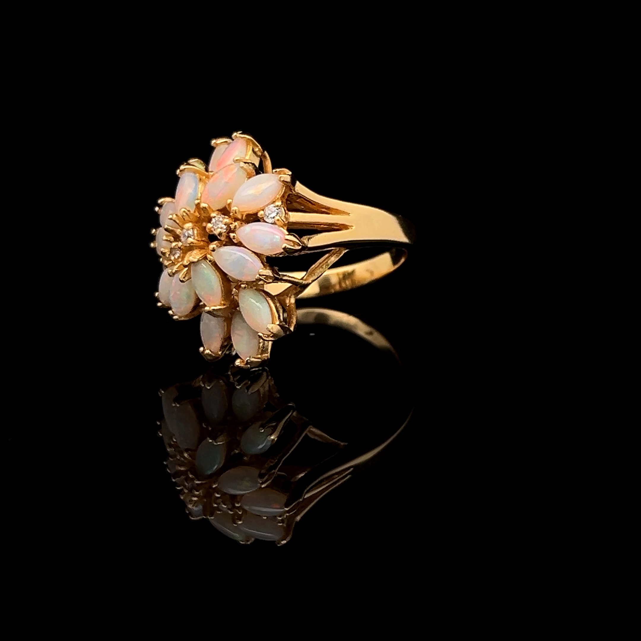 Australian Solid Opal Marquise Flower Design Ring with Cubic Zirconias Set in Gold Plated Sterling Silver