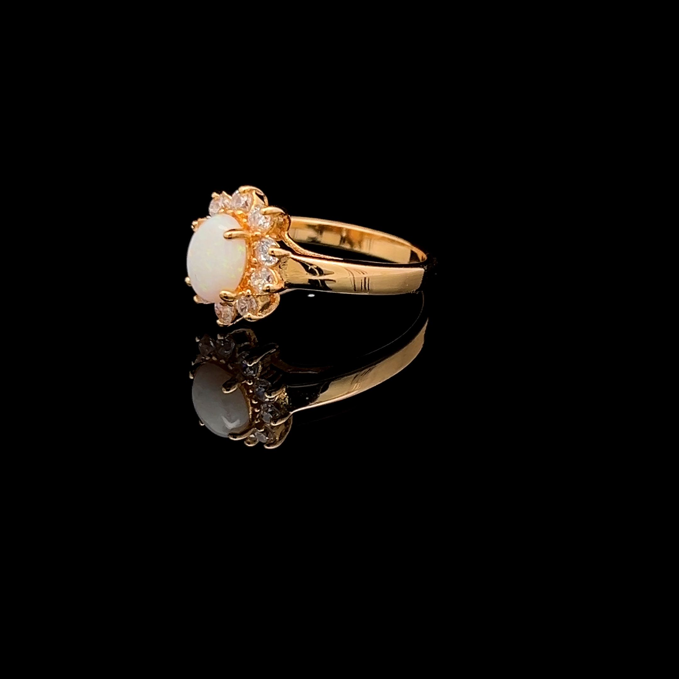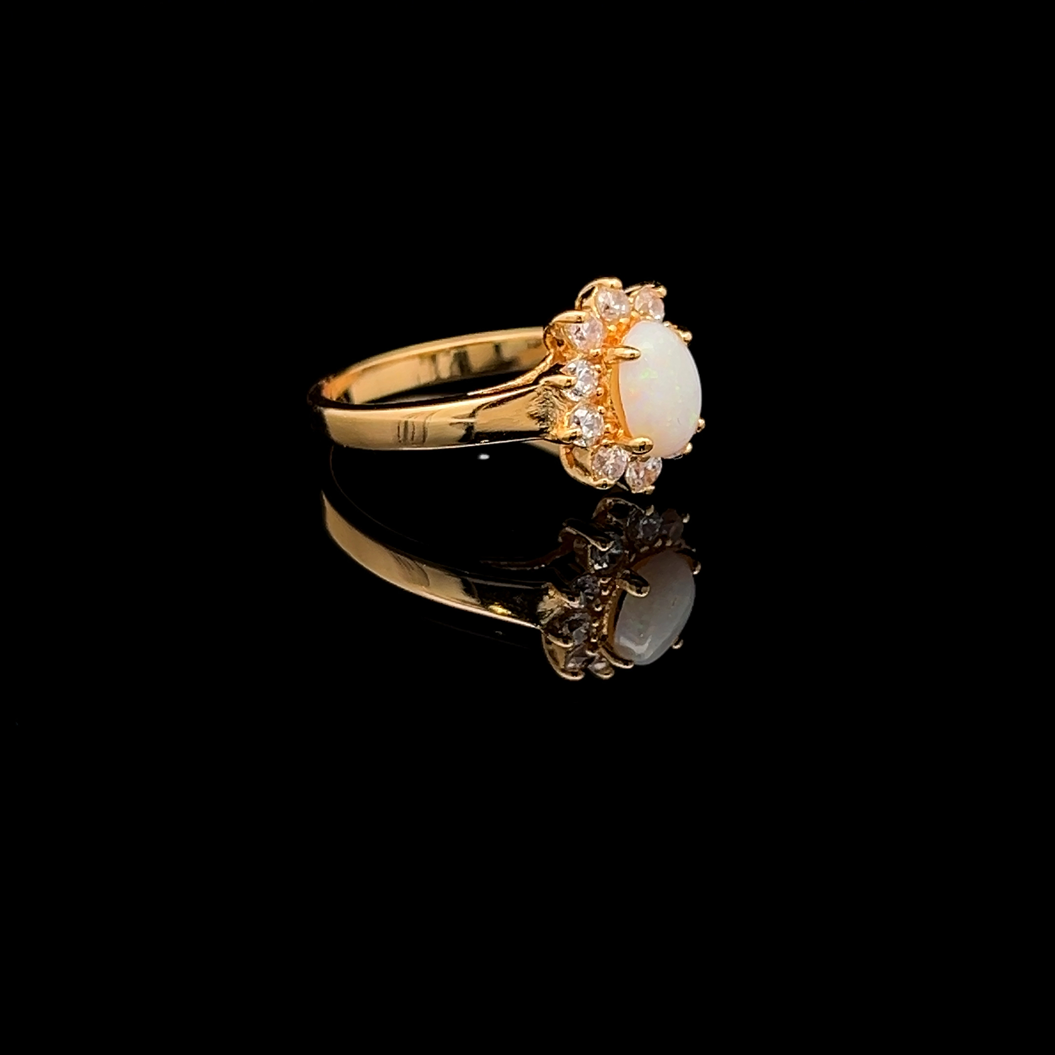 Australian Solid Opal in Oval Shape Surrounded with Cubic Zirconias Set in Gold Plated Sterling Silver Ring