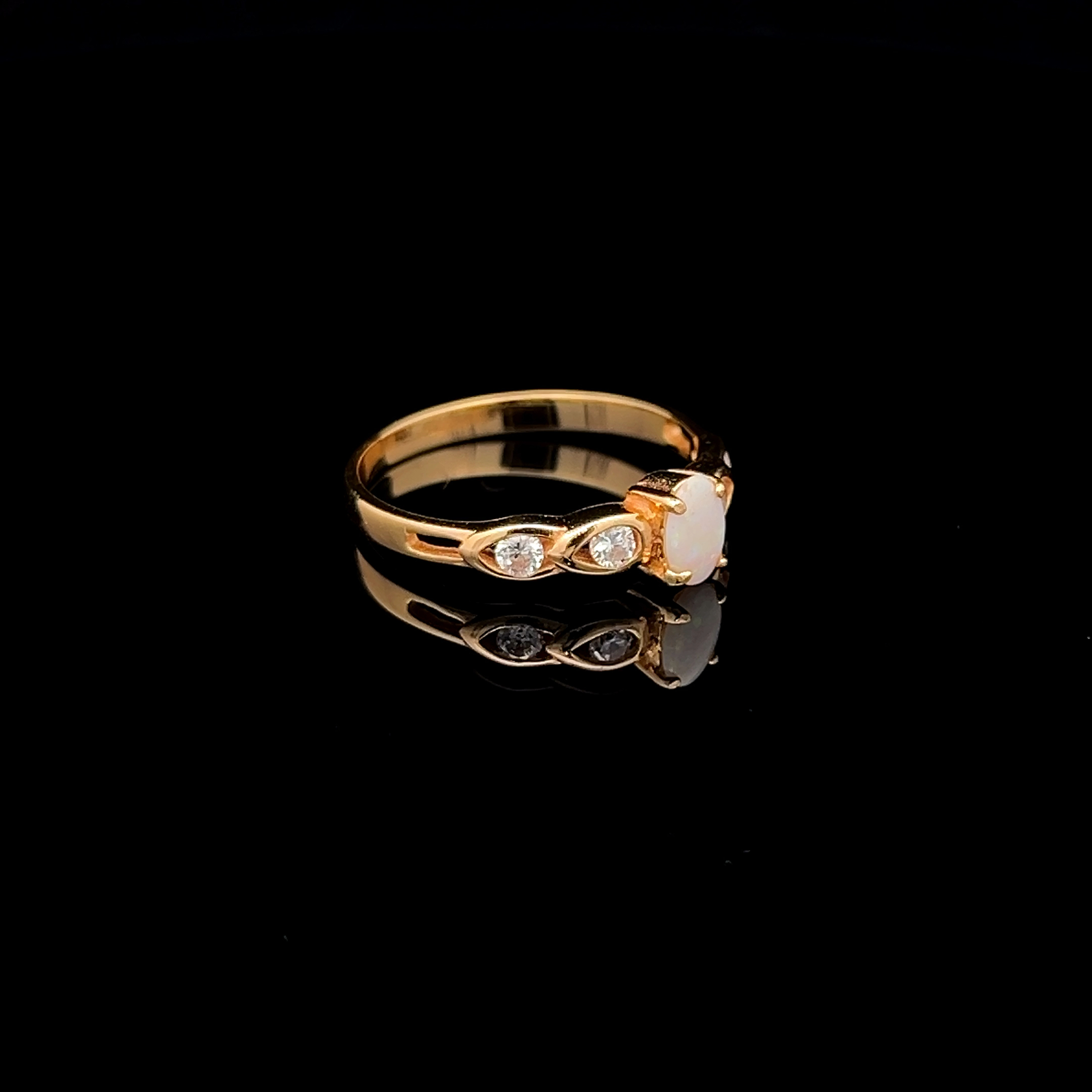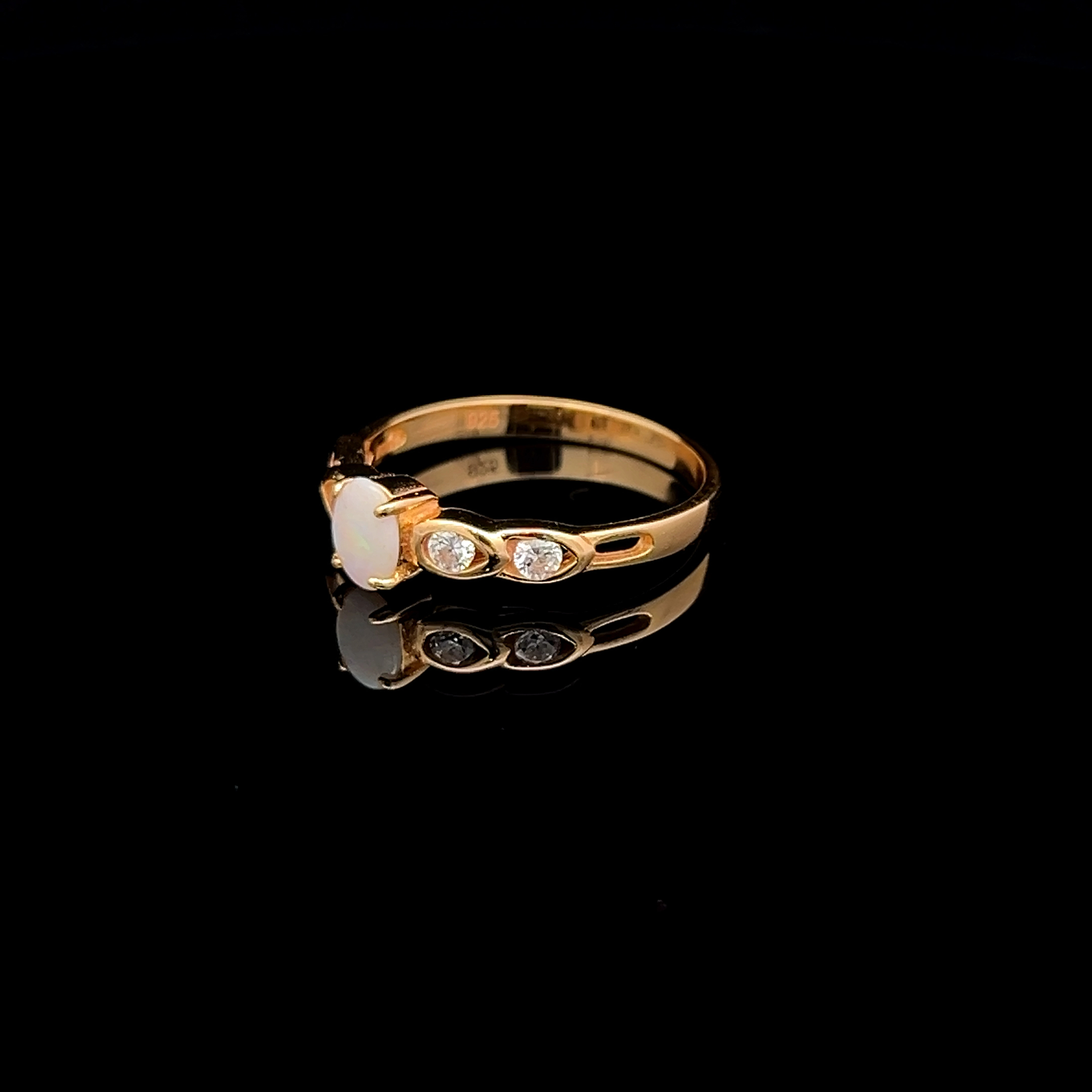 Australian Solid Opal in Oval Shape with Cubic Zirconias Set in Gold Plated Sterling Silver Ring
