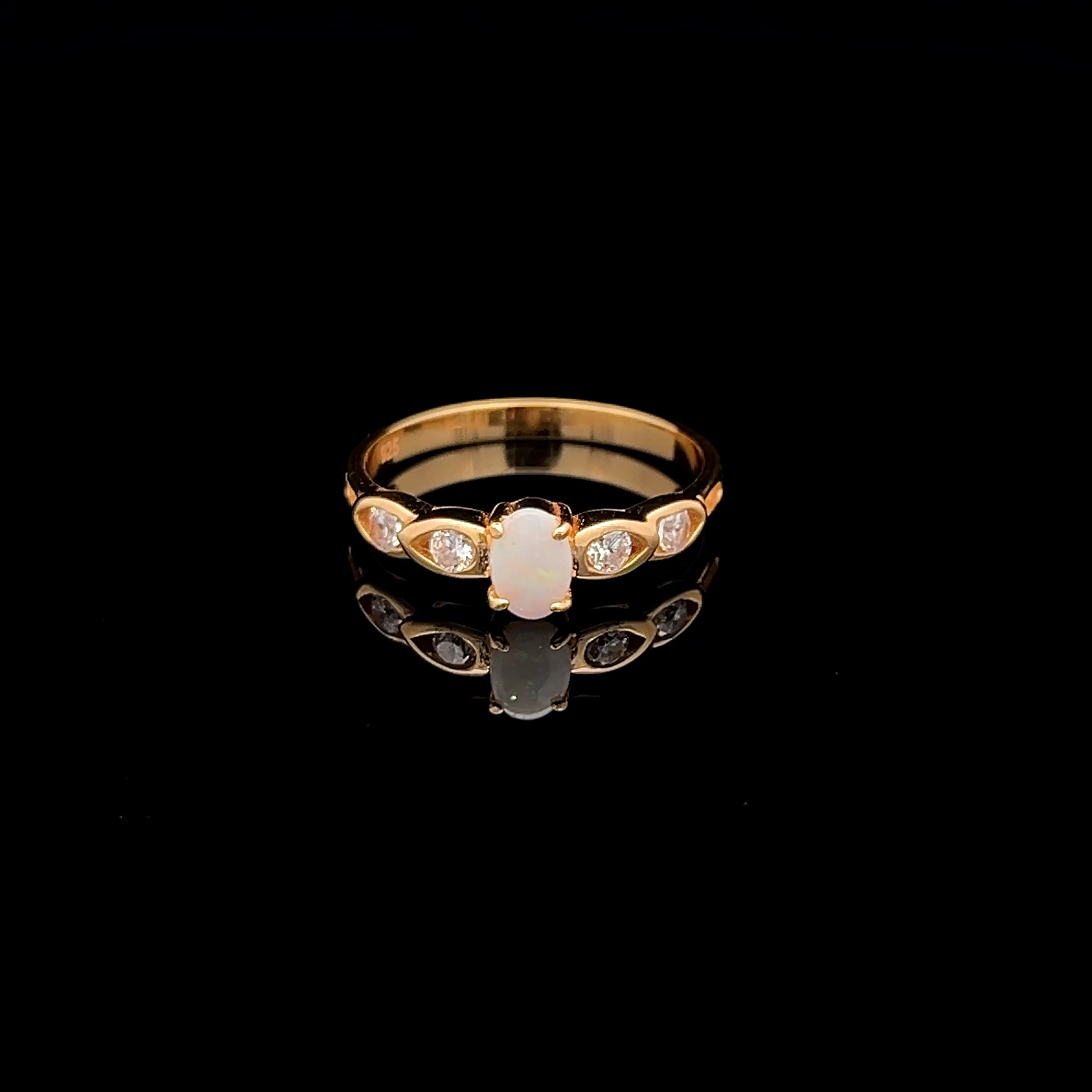 Gold Plated Sterling Silver Solid Opal Ring with Cubic Zirconias 143868
