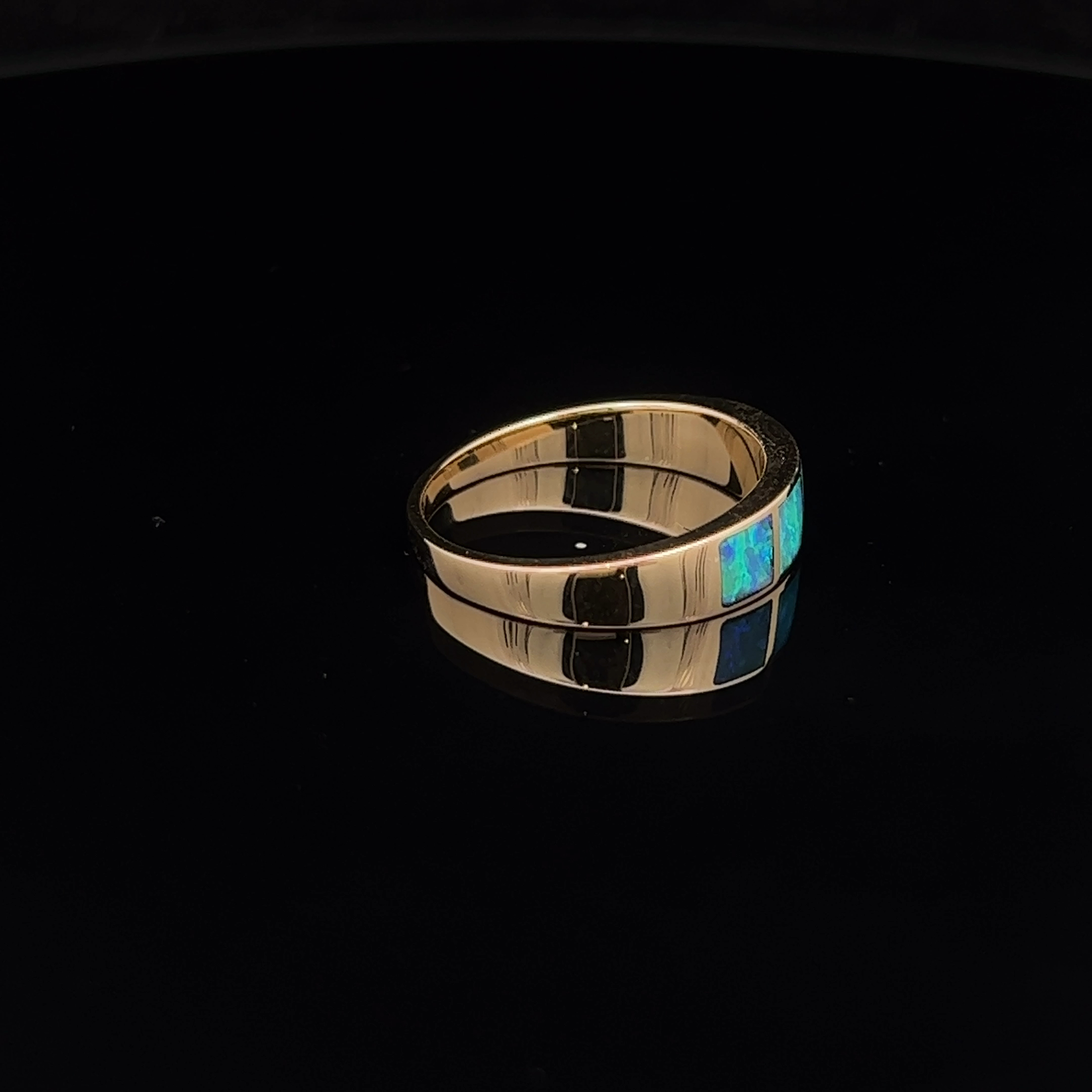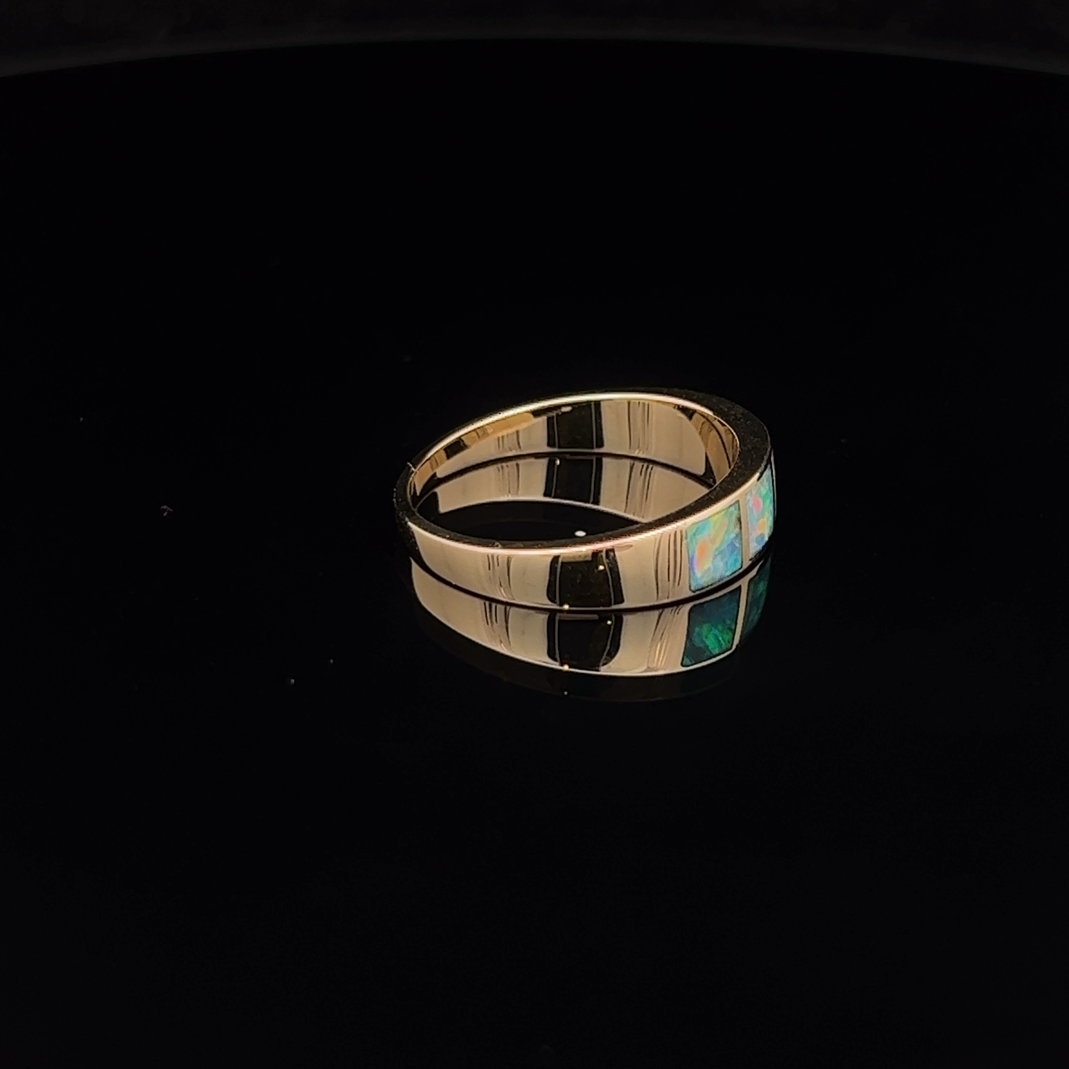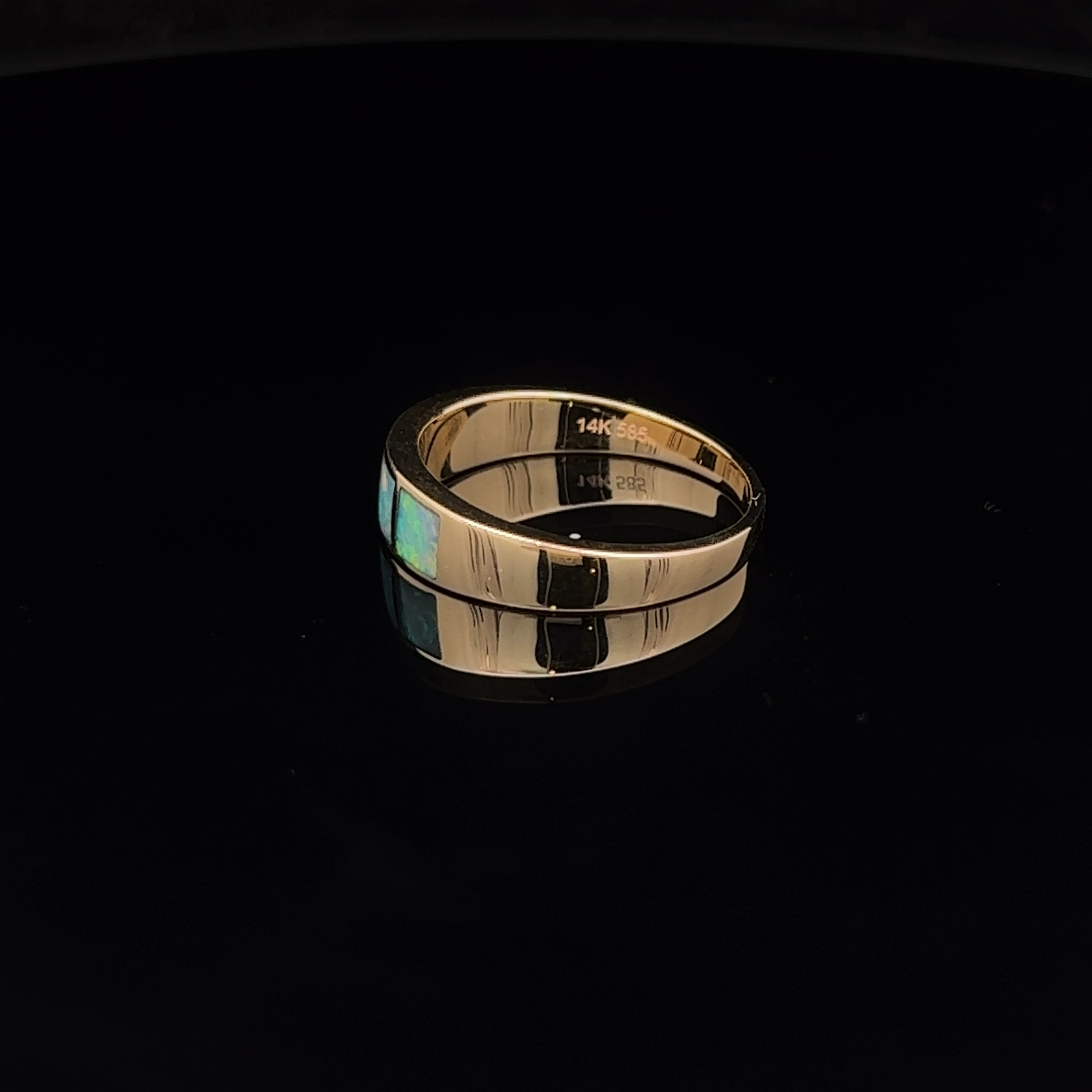 Solid 14K Gold Inlay Opal 4 Section Ring