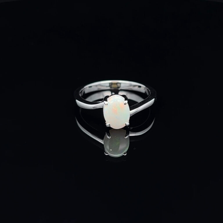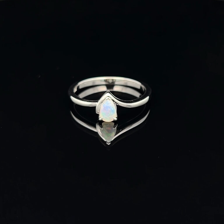White opals, known for their milky or translucent appearance, are one of the most common types of opals available. These opals exhibit a subtle play of colour, making them highly sought-after for various types of jewelry. Opal rings featuring white opals can be found in classic solitaires and teardrop shapes.