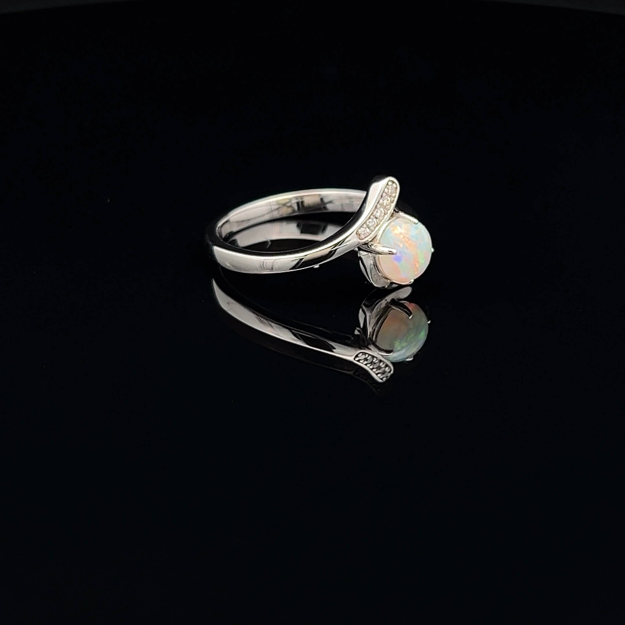 Coober Pedy Solid Crystal Opal & Diamond Ring set in 18K White Gold