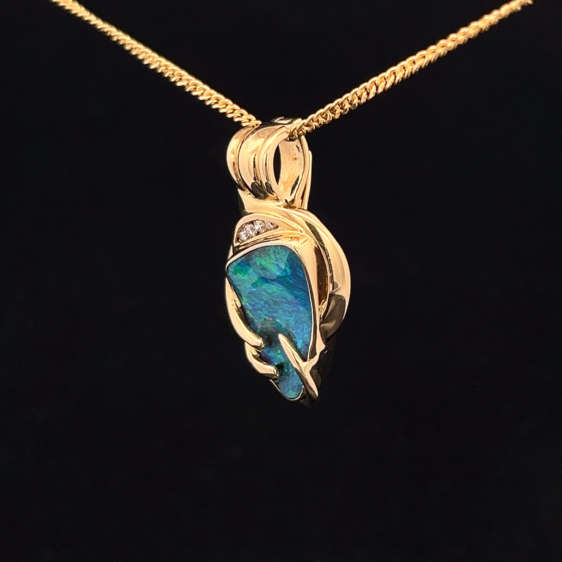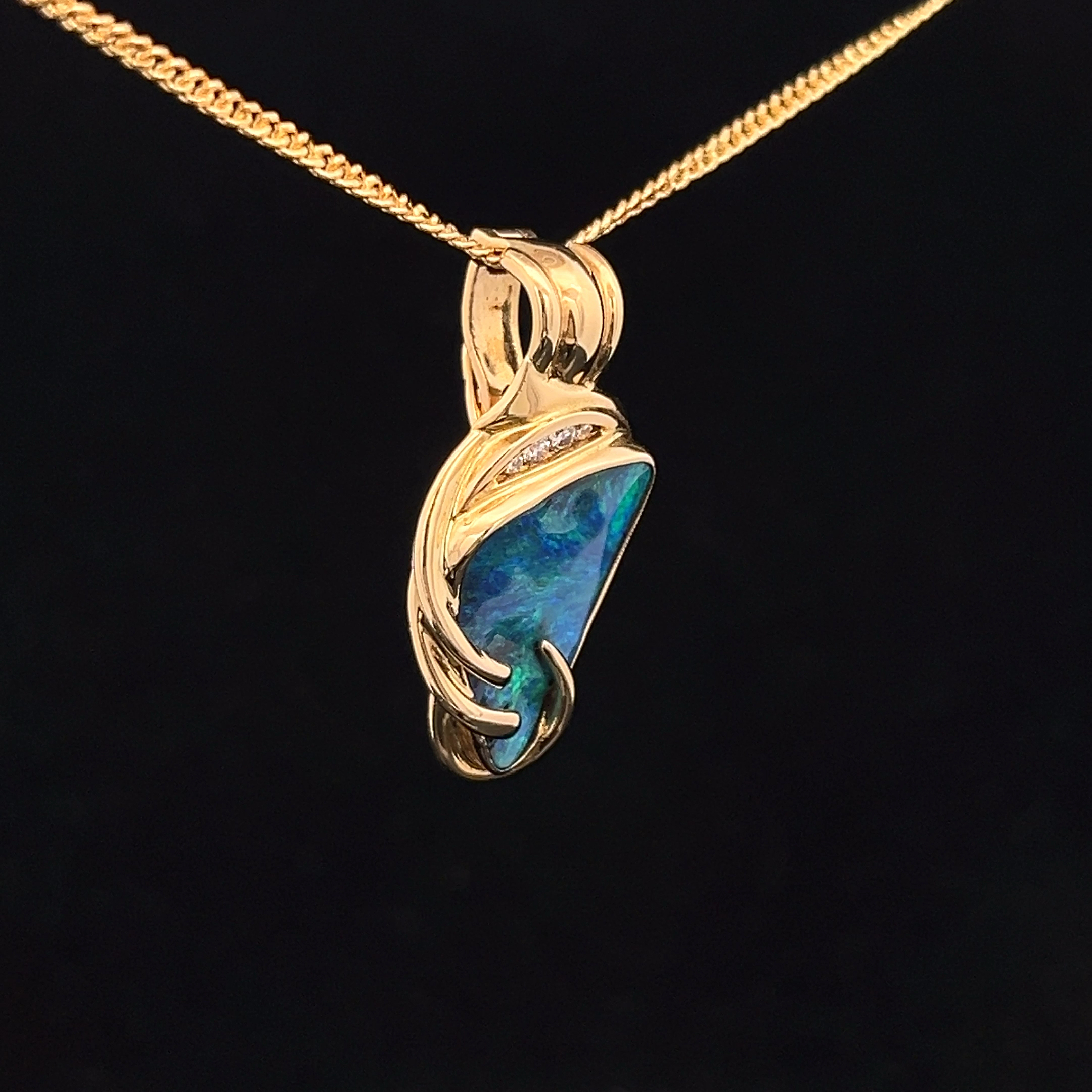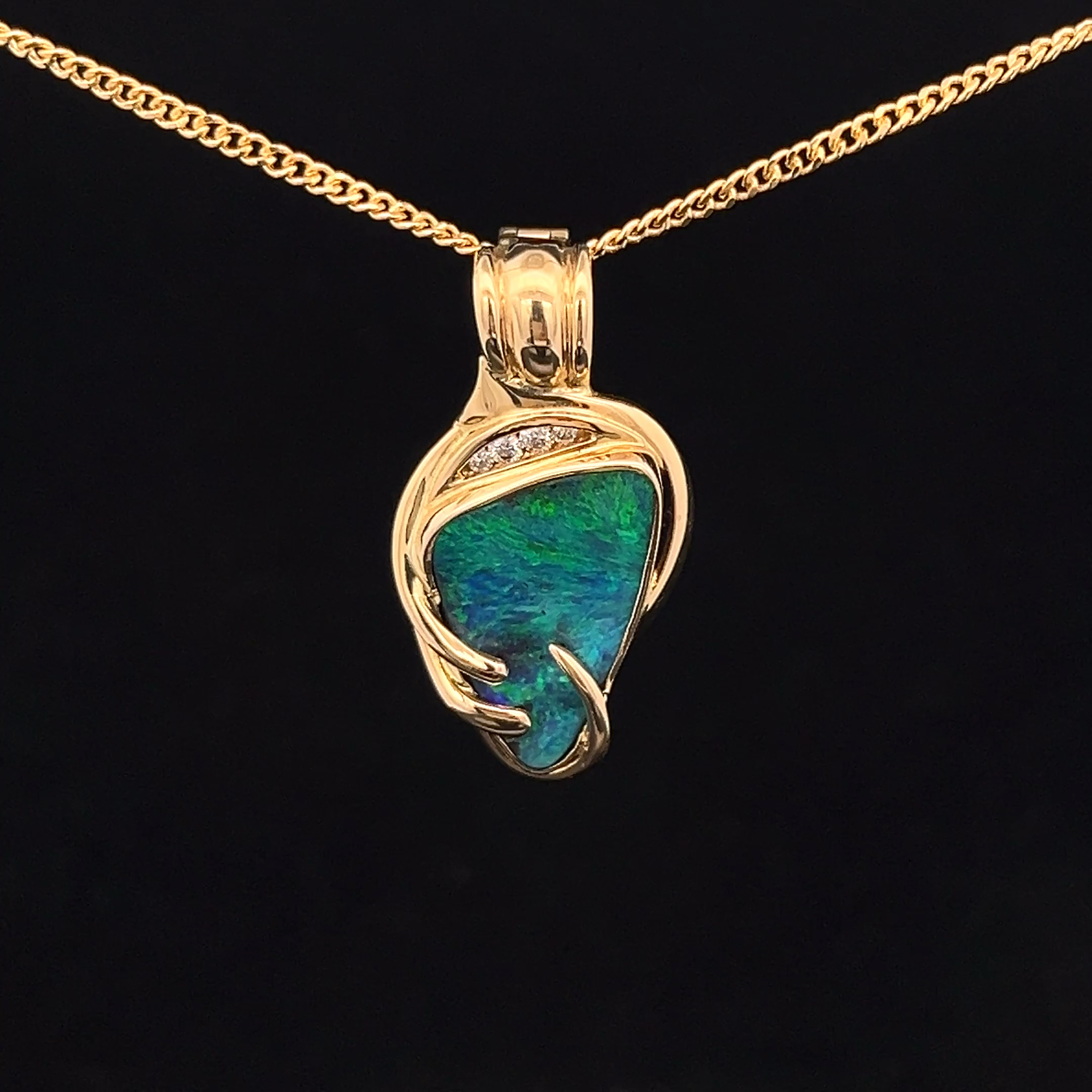 Queensland Solid Boulder Opal & Diamond Pendant Enhancer set in 18K Yellow Gold