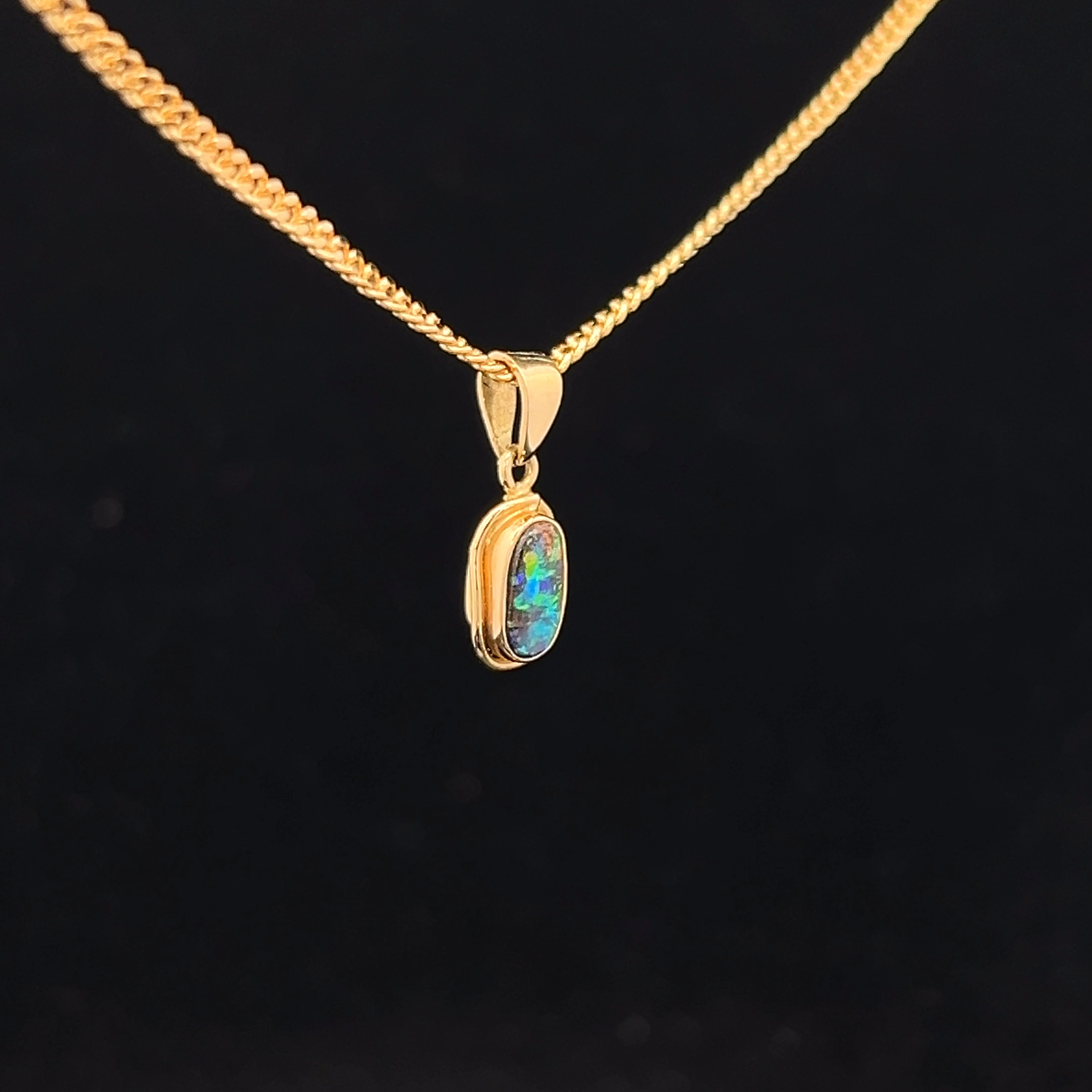 Queensland Solid Boulder Opal Pendant set in 18K Yellow Gold
