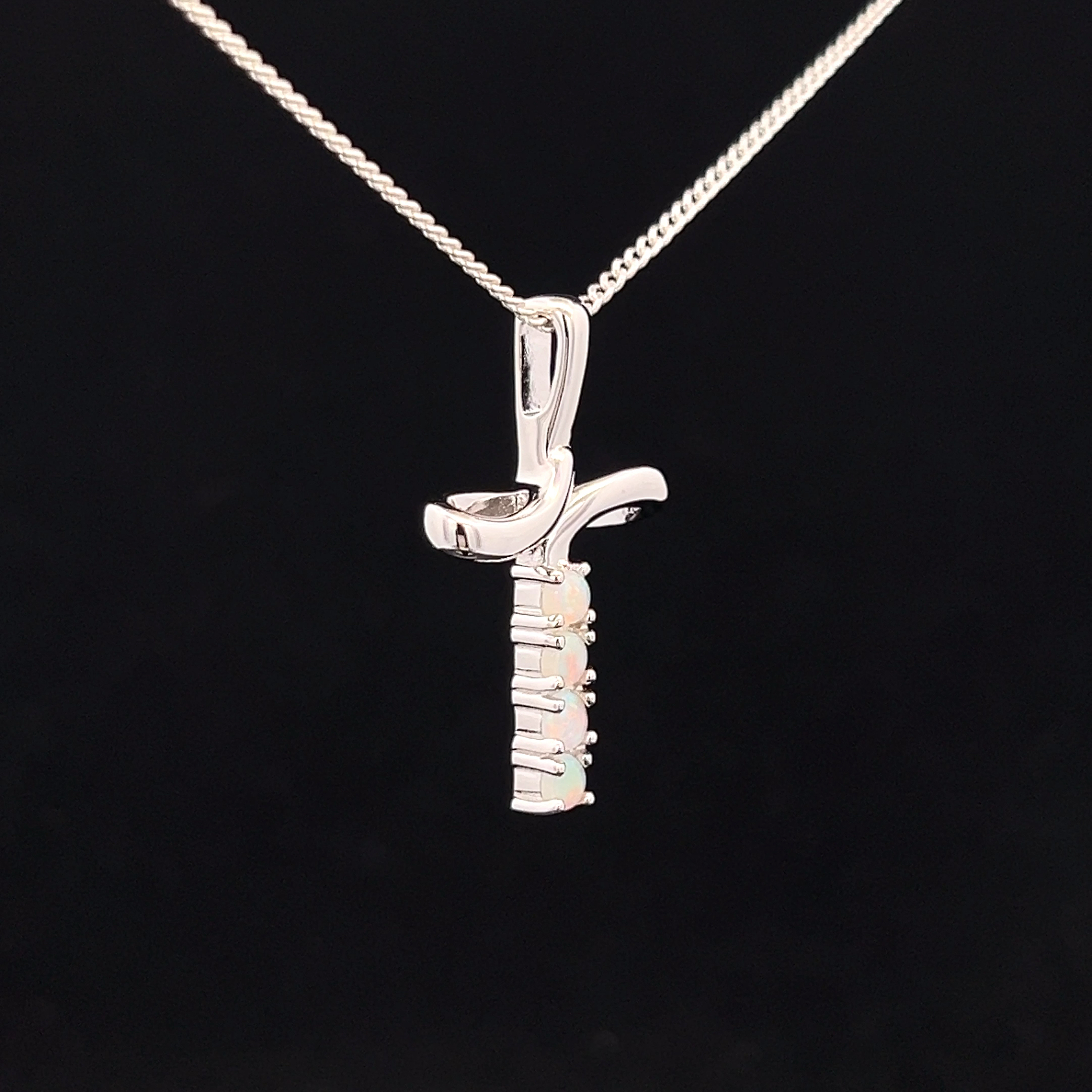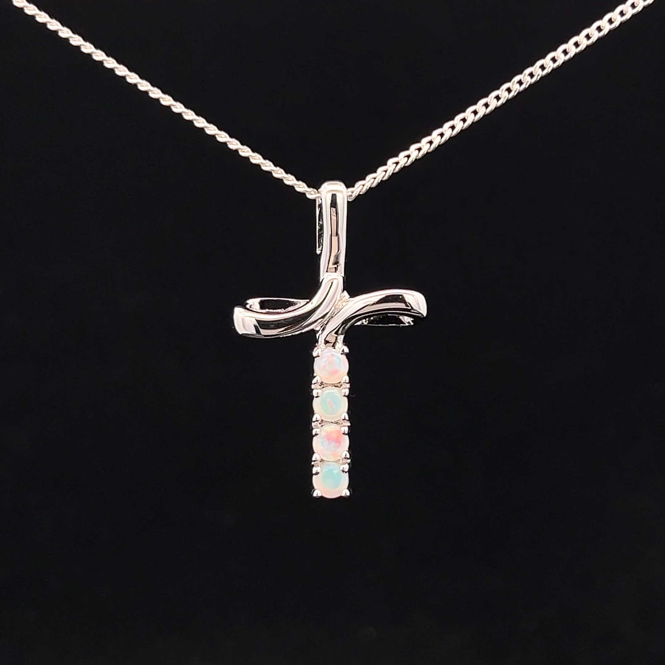 Sterling Silver Solid Crystal Opal Cross Pendant 148427