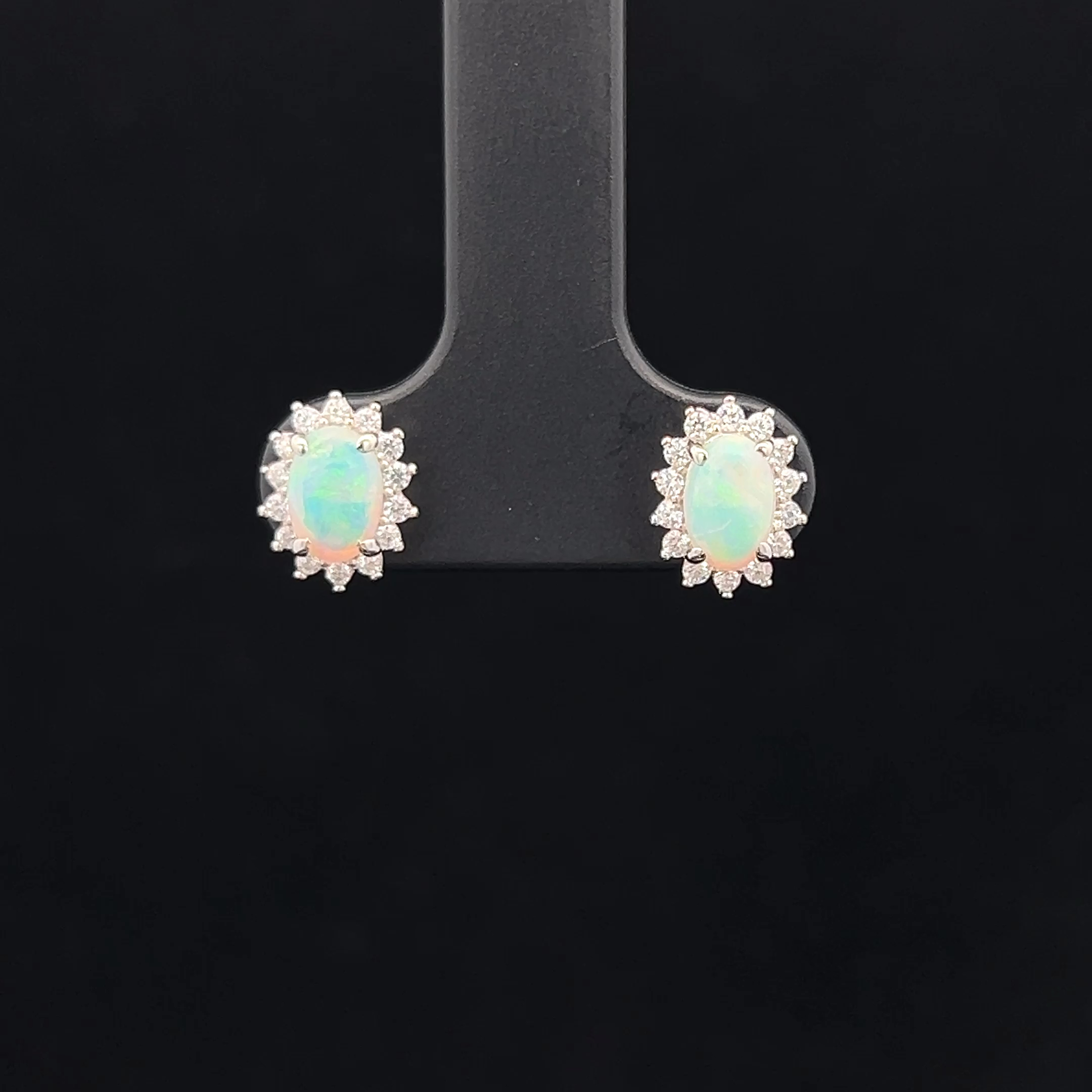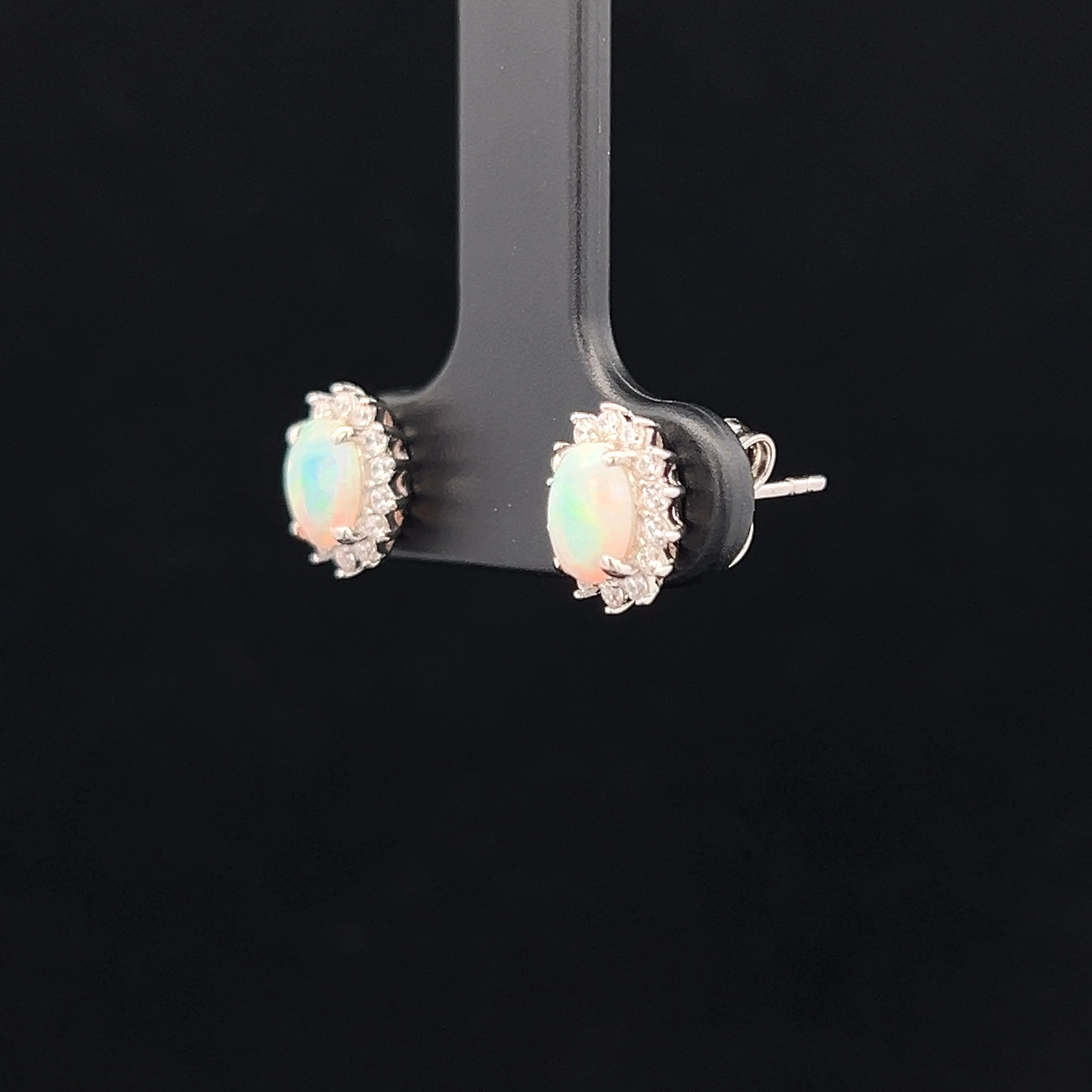 South Australian Solid Crystal Opal with Cubic Zirconia set in Sterling Silver Stud Earrings