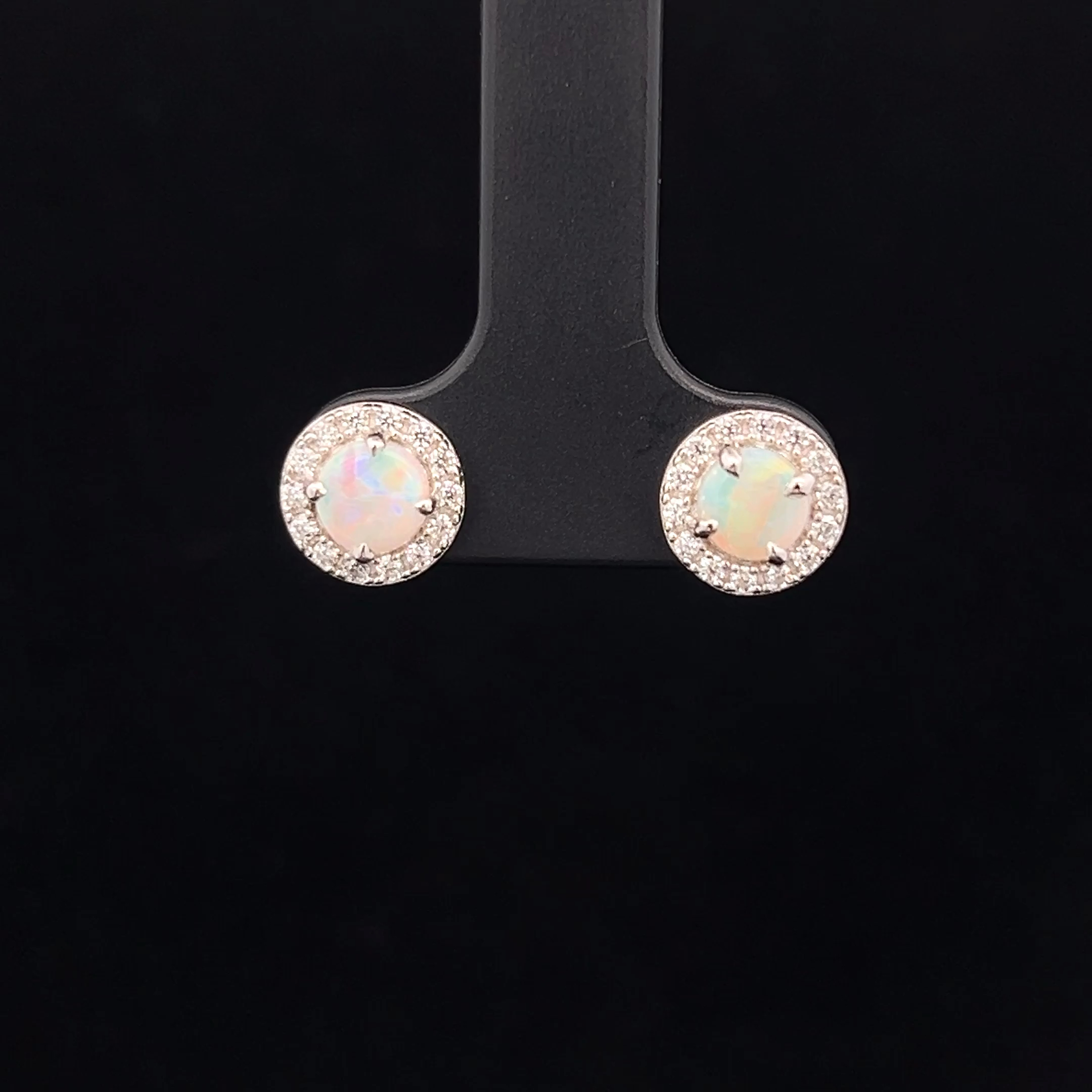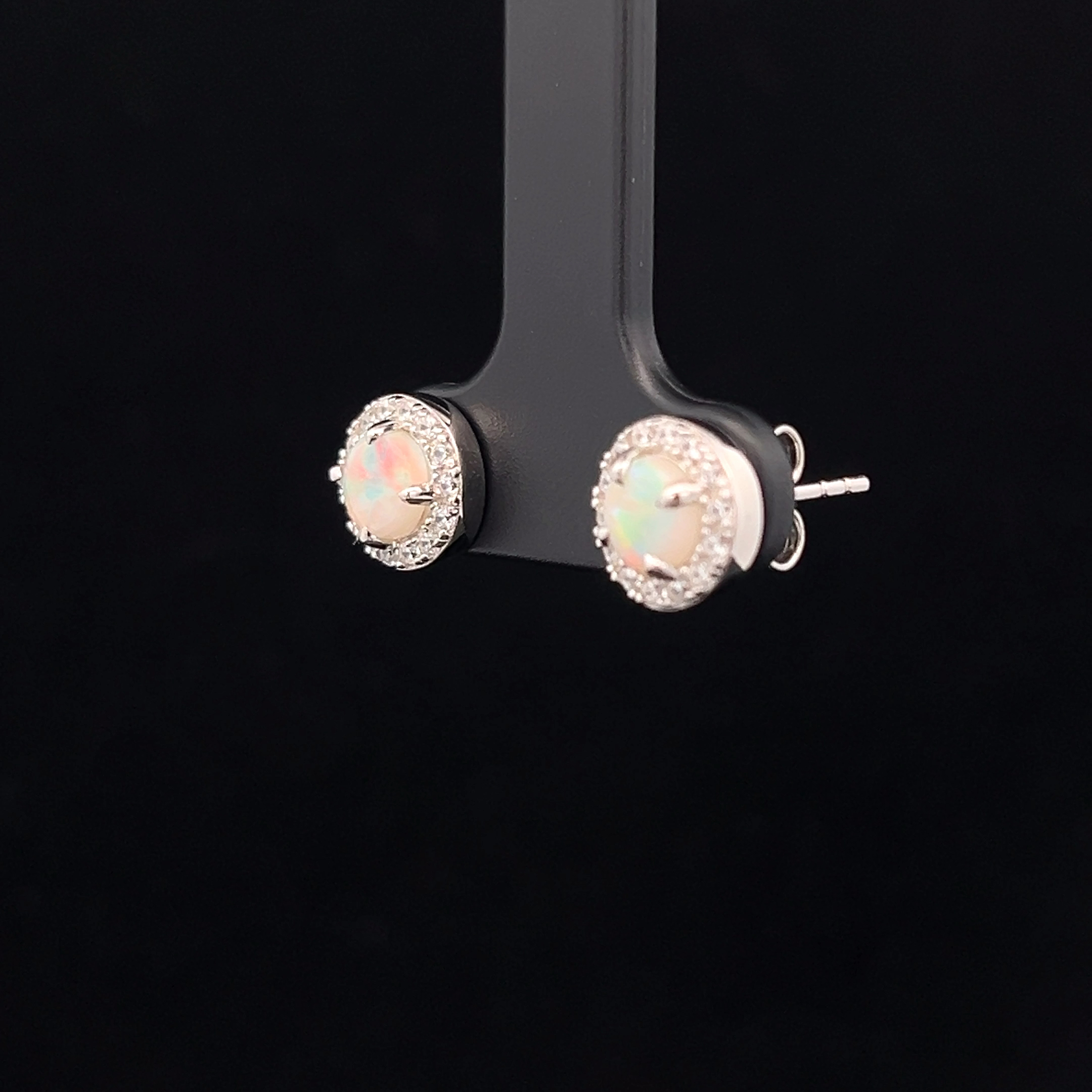 South Australian Solid Light Opal and Cubic Zirconias set in Sterling Silver Stud Earrings