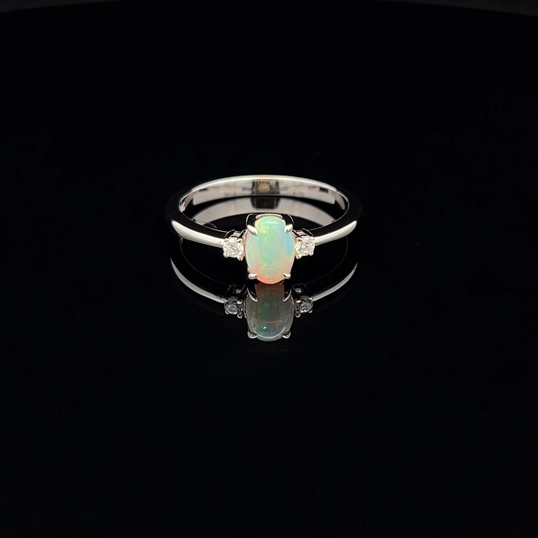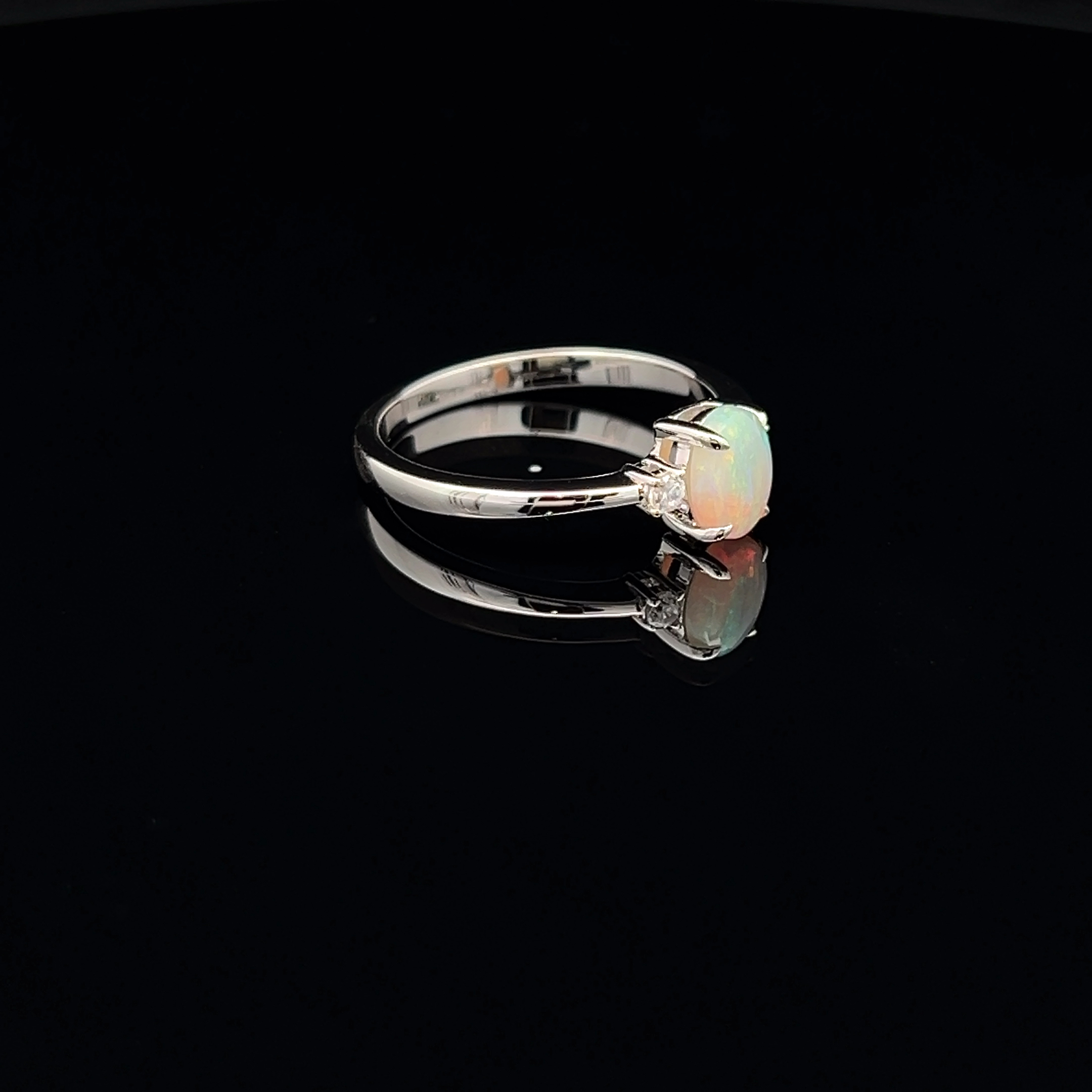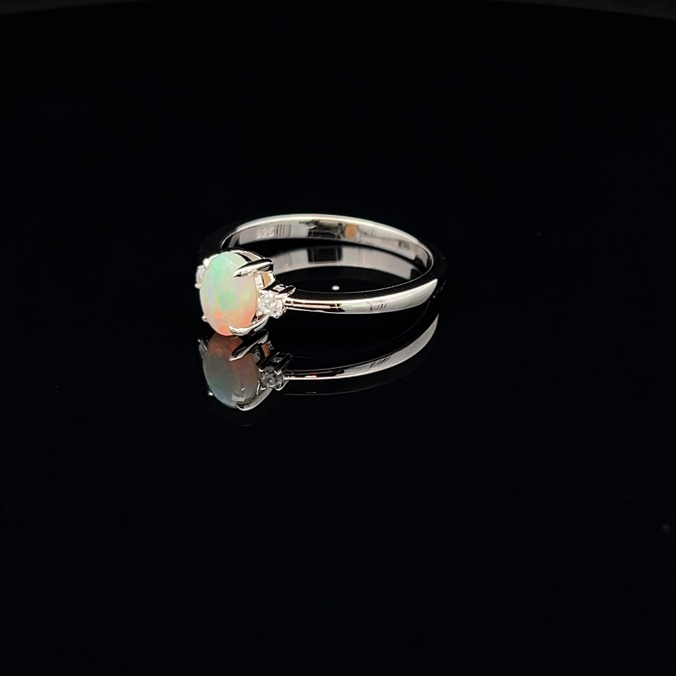 Solid South Australian Light Opal & Cubic Zirconia Ring Set in Sterling Silver