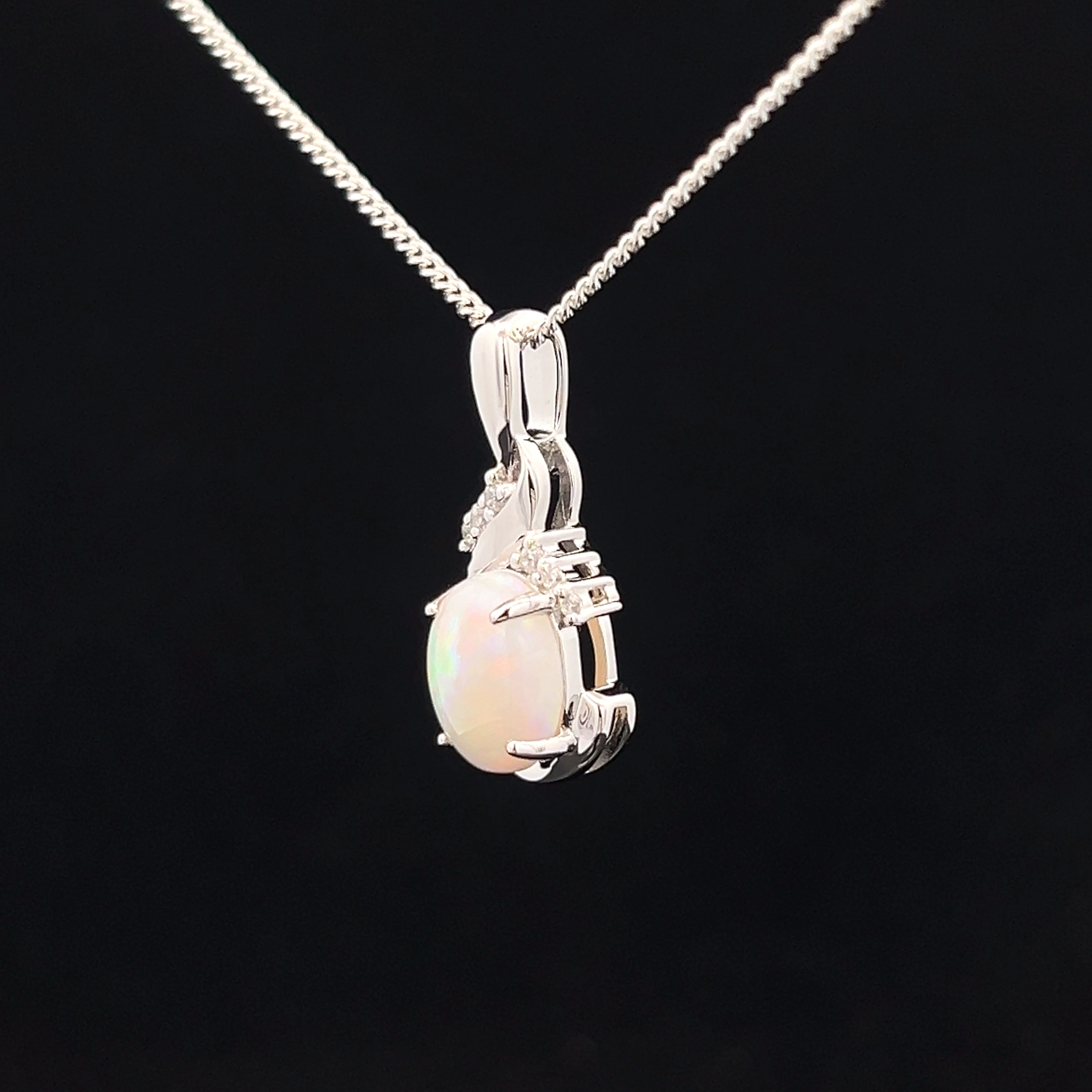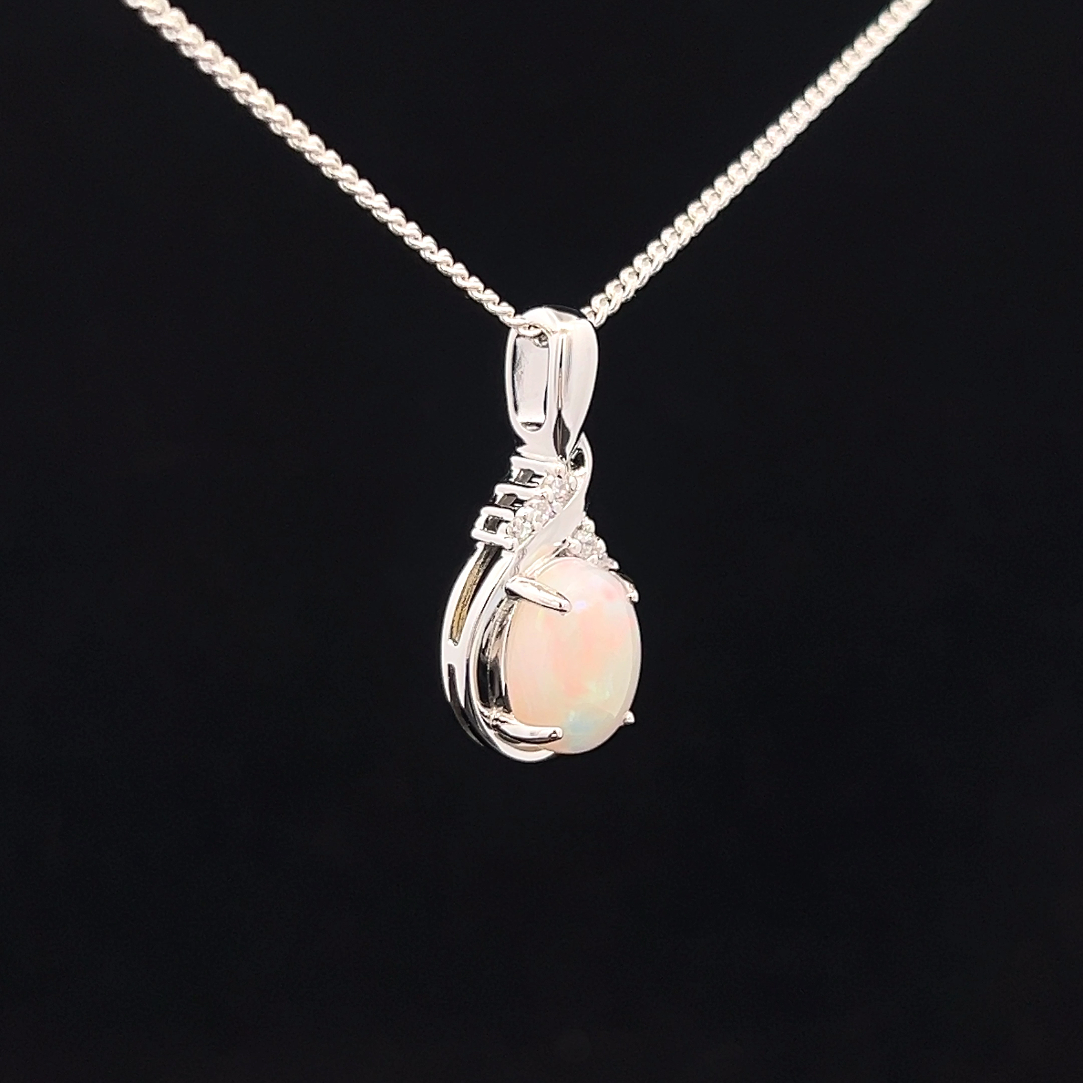 Sterling Silver Solid Crystal Opal Pendant & Cubic Zirconia Pendant 148430