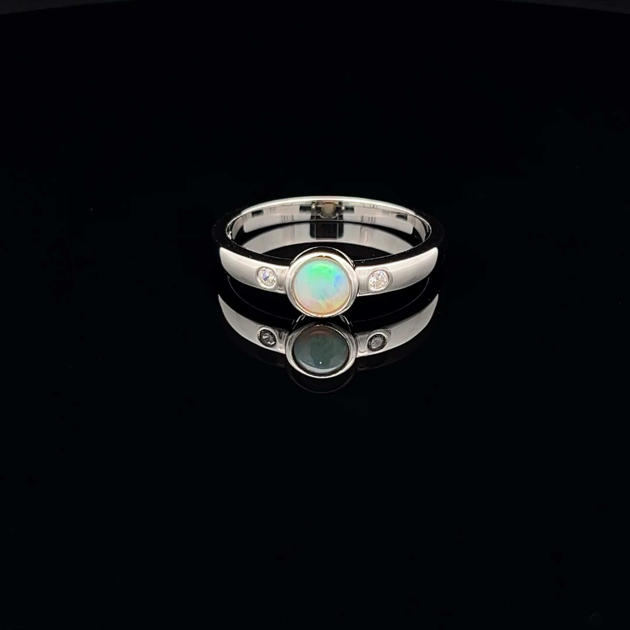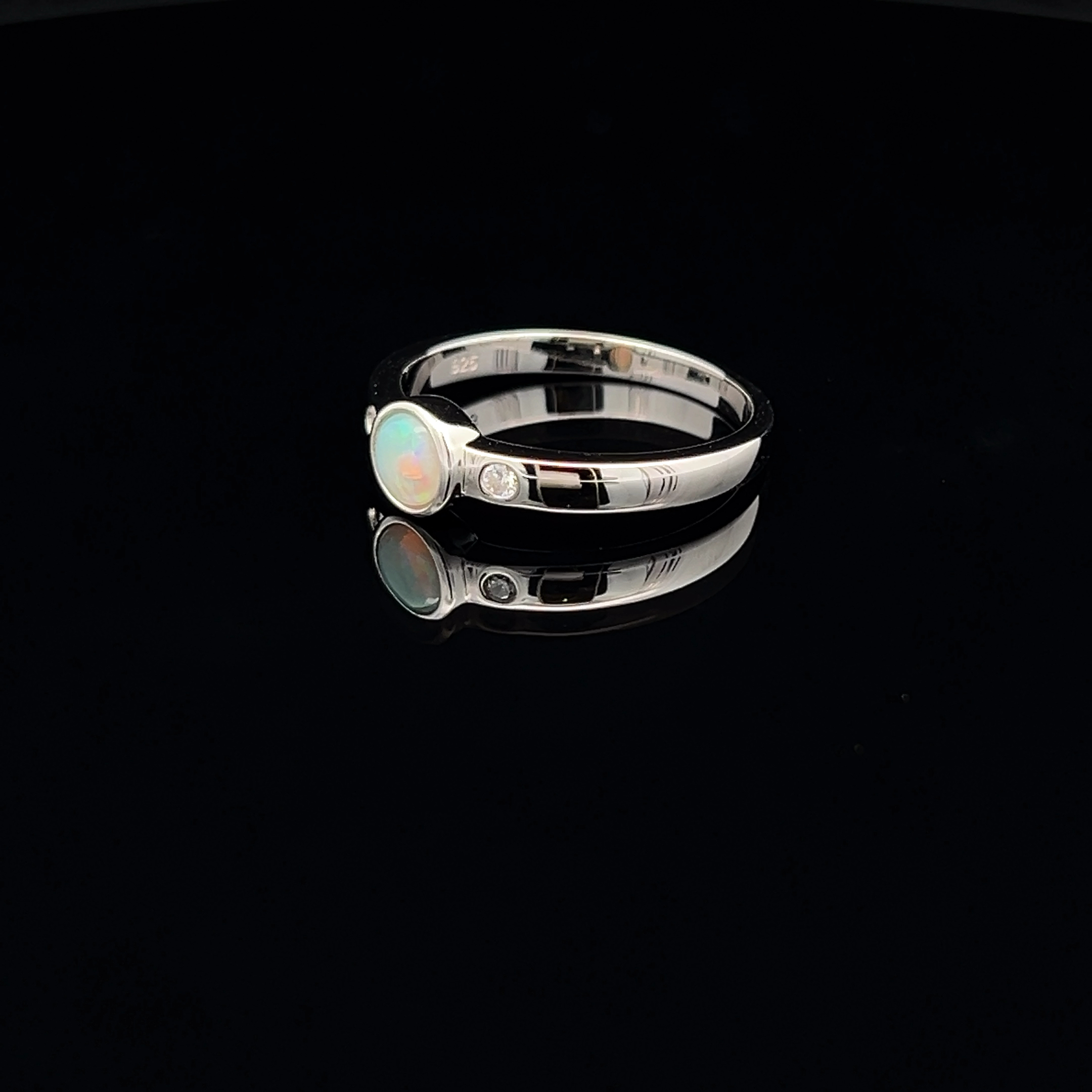 South Australian Solid Light Opal & Cubic Zirconia Ring Set in Sterling Silver