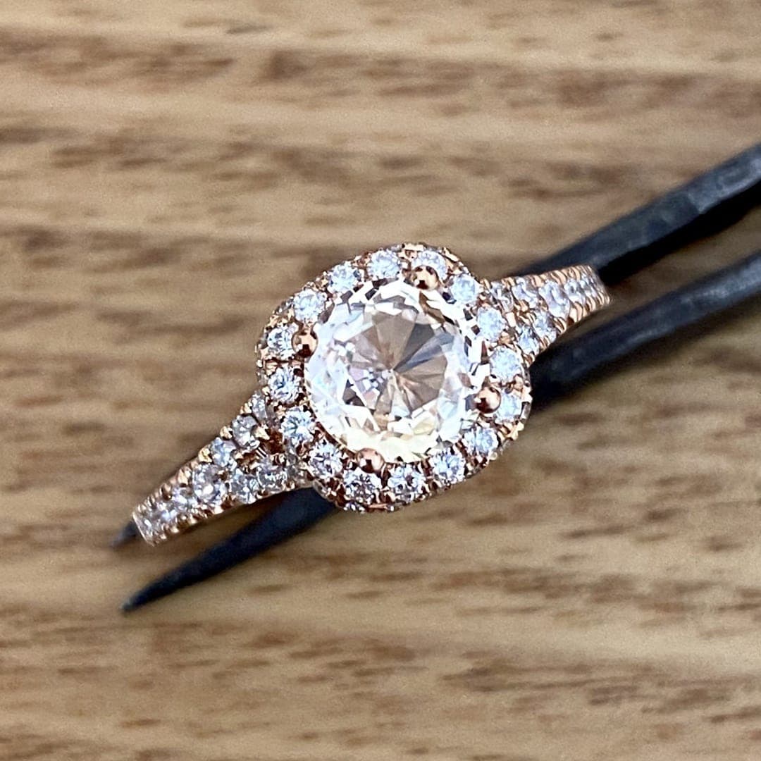 Solid 18K Rose Gold Natural Padparadscha Sapphire and Diamond Ring