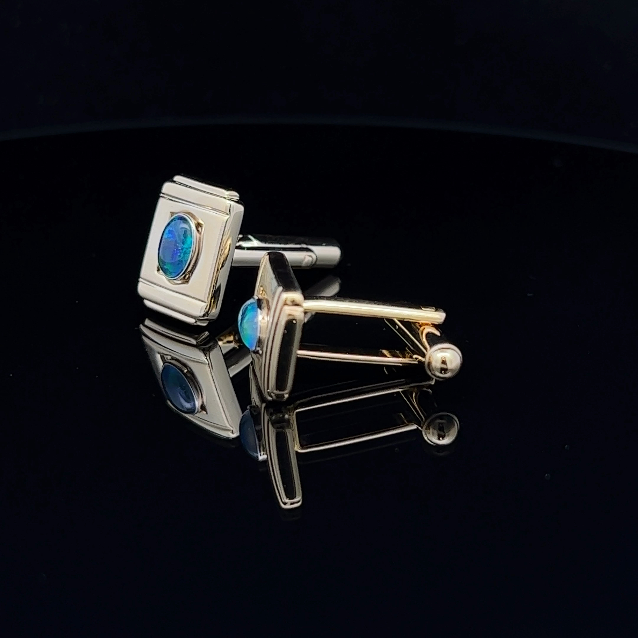 Stainless Steel Australian Gem Quality Triplet Opal Cuff Links