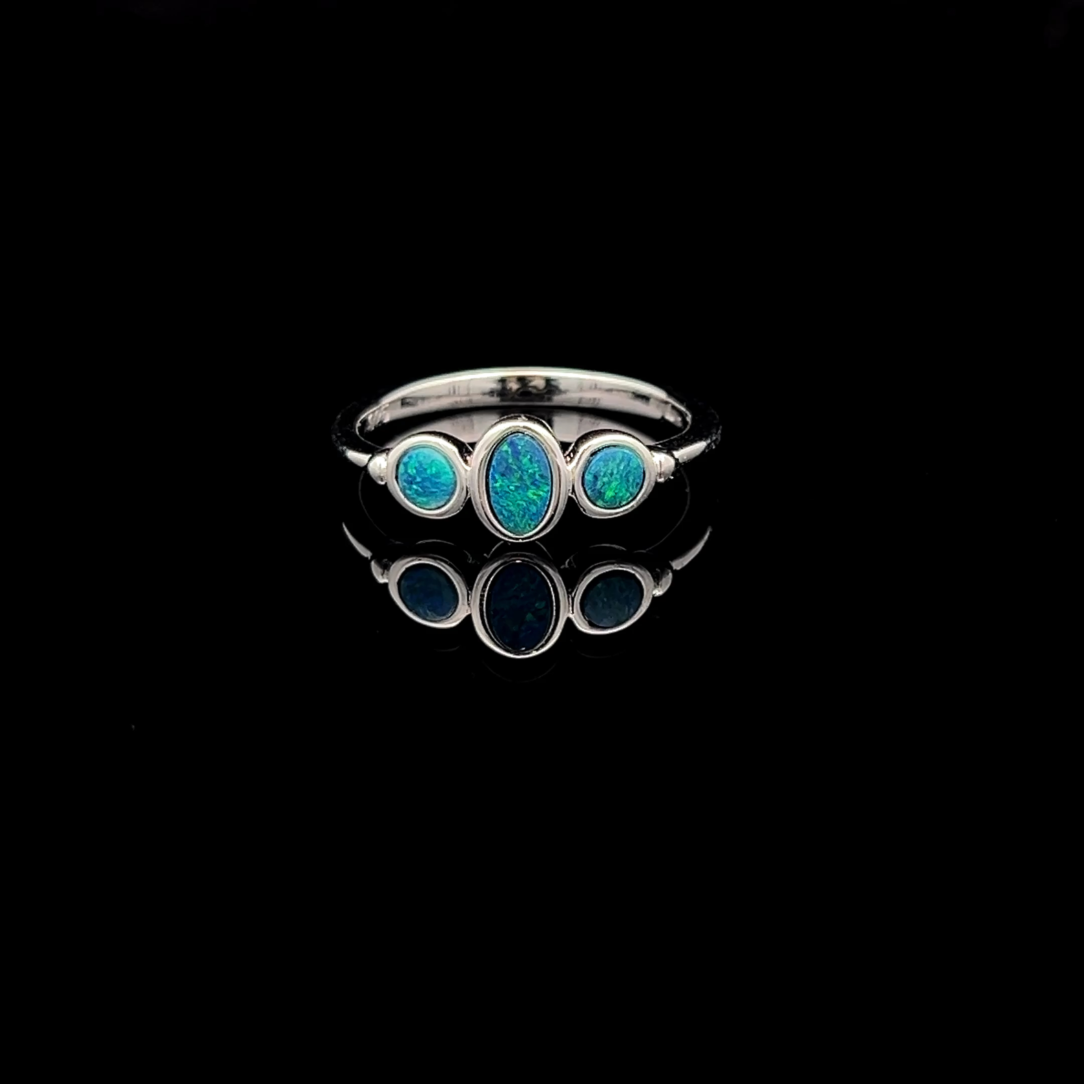 Sterling Silver Australian Gem Quality Doublet Opal Ring 162819