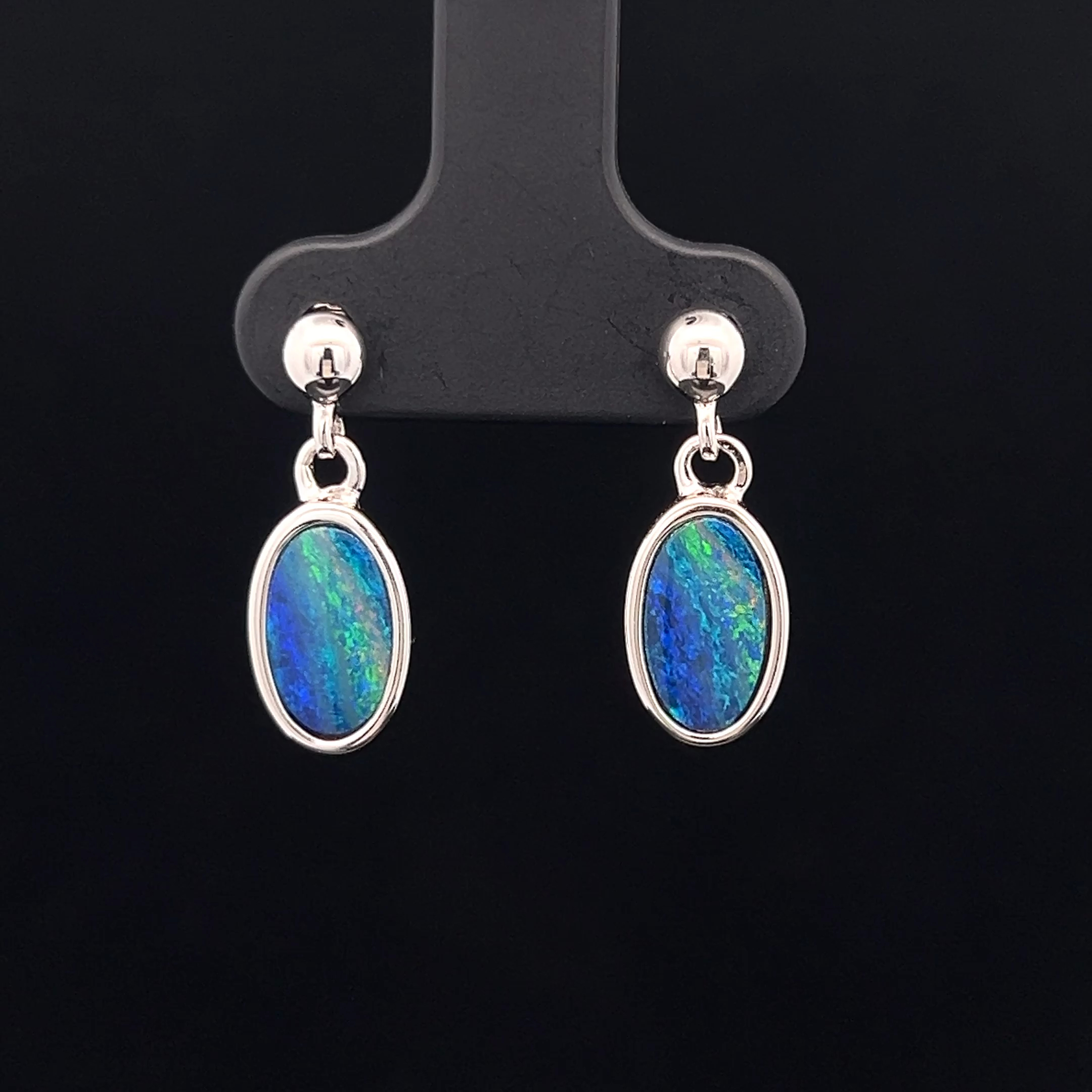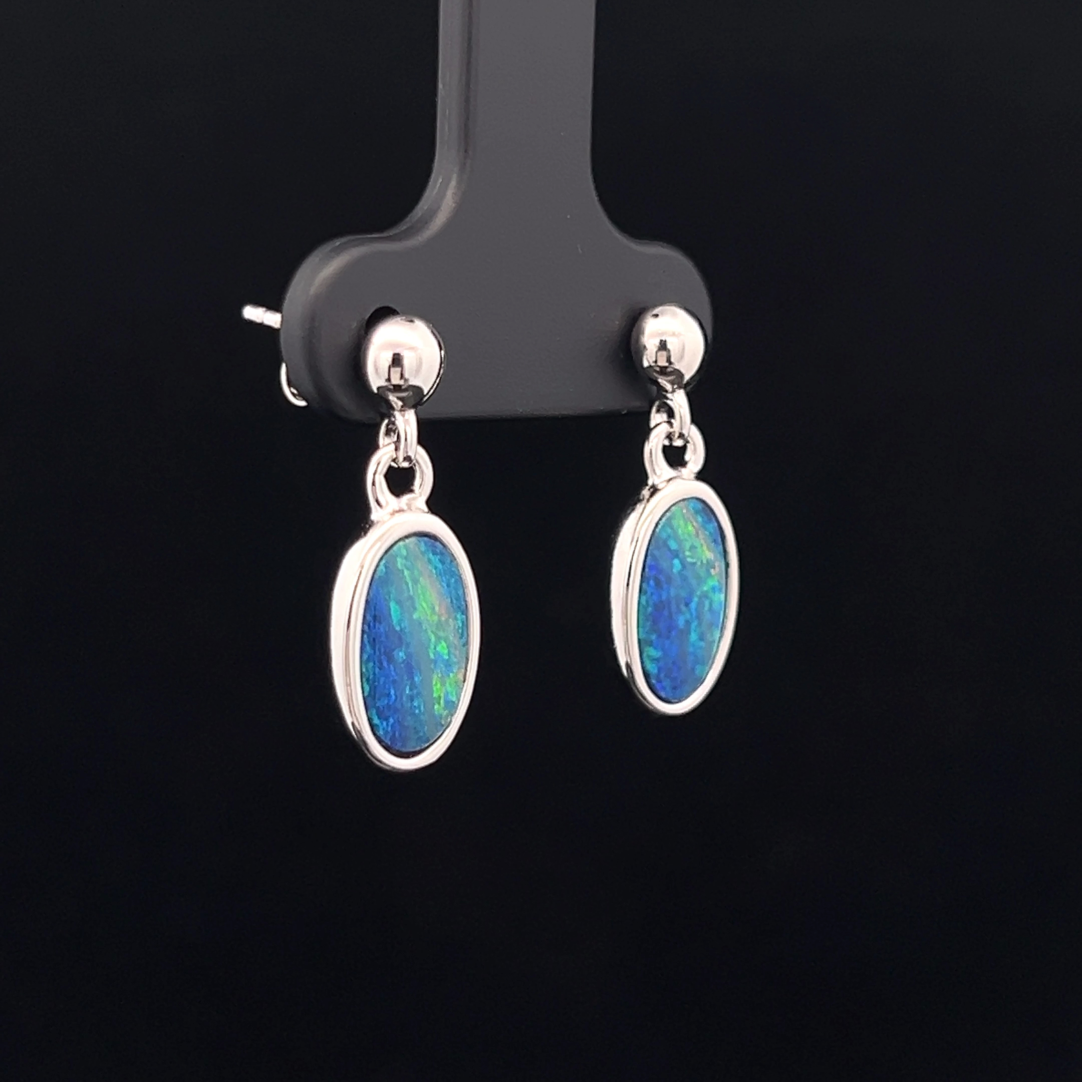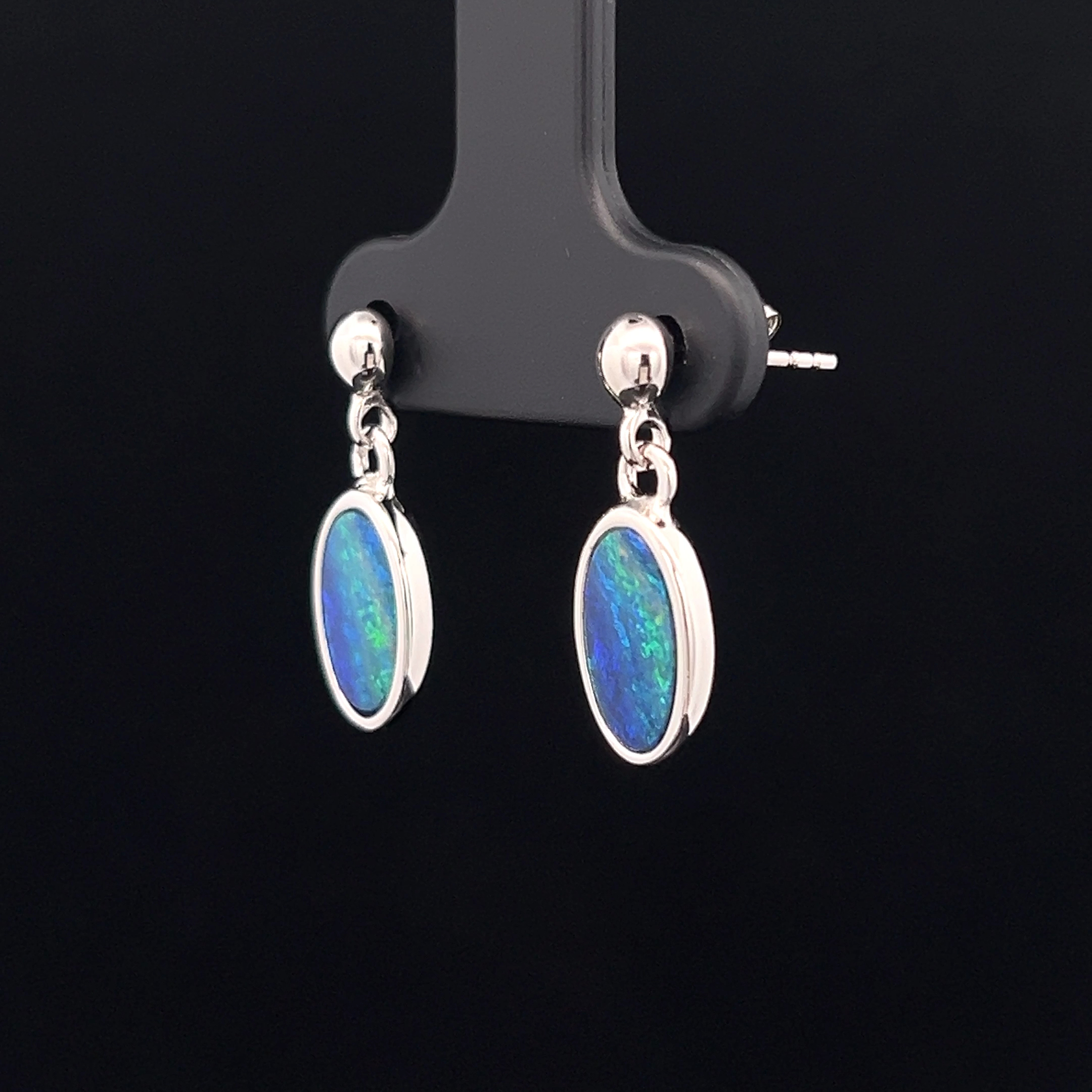 Sterling Silver Australian Doublet Opal Earrings