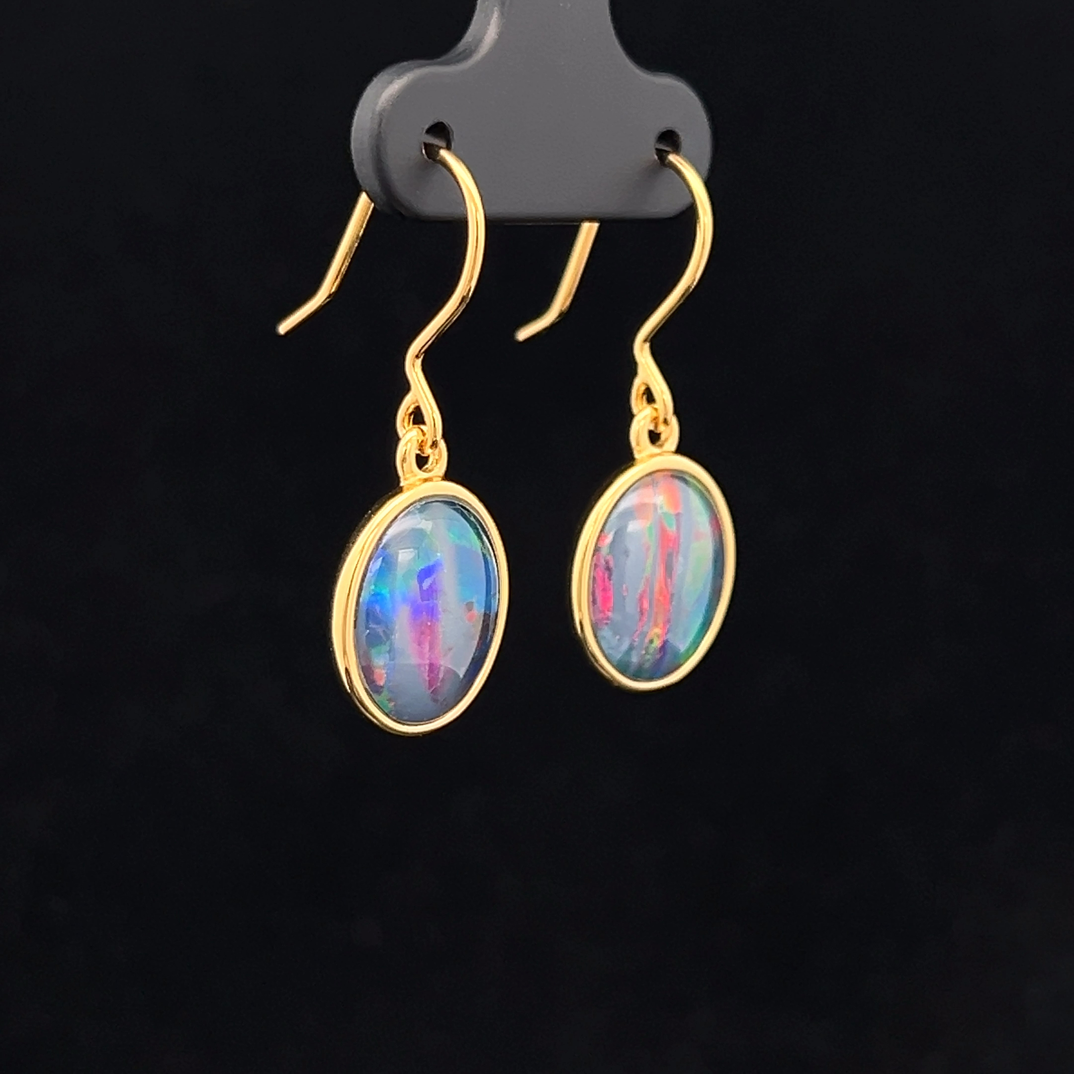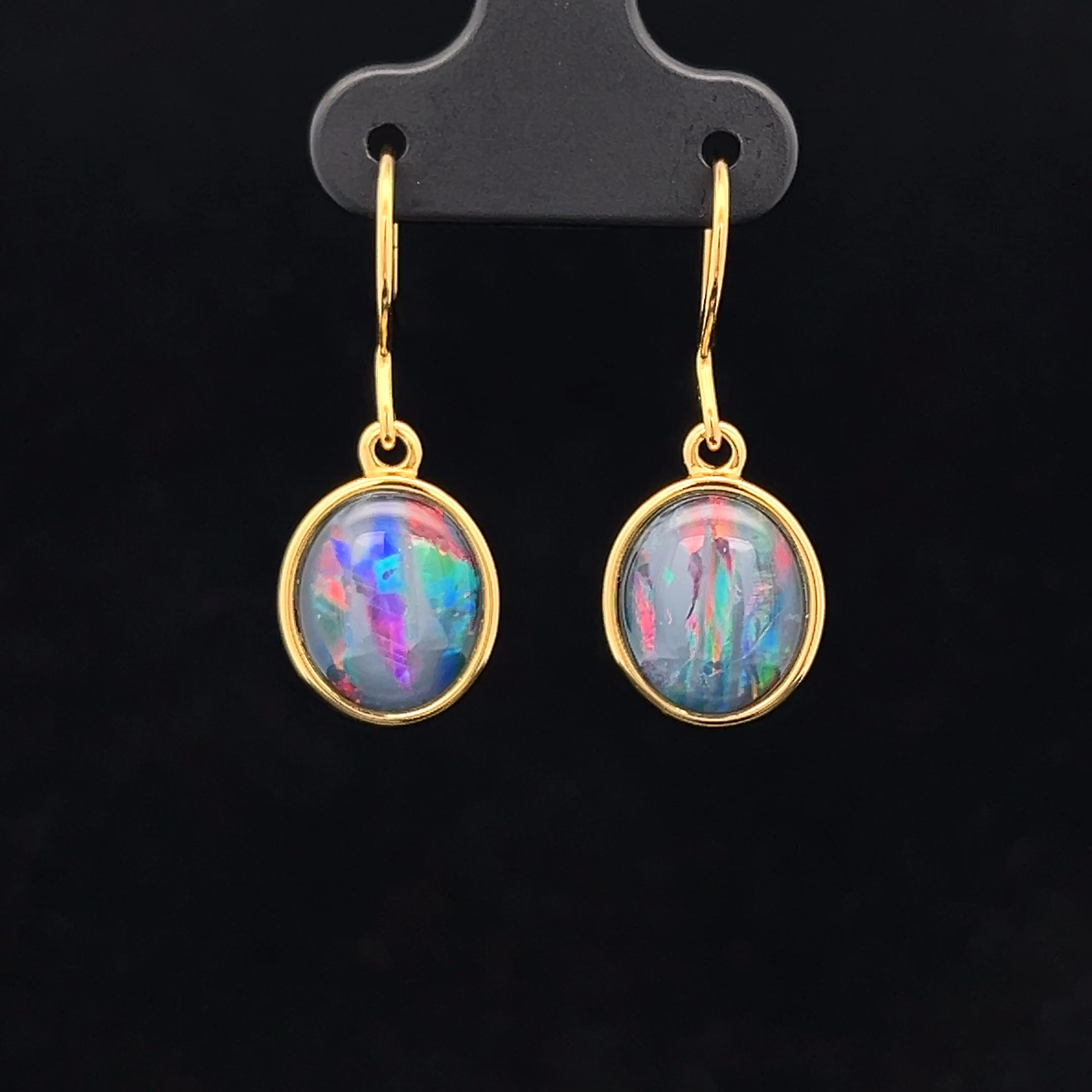Australian Gem Quality Triplet Opal set in Gold Plated Sterling Silver Hook Earrings