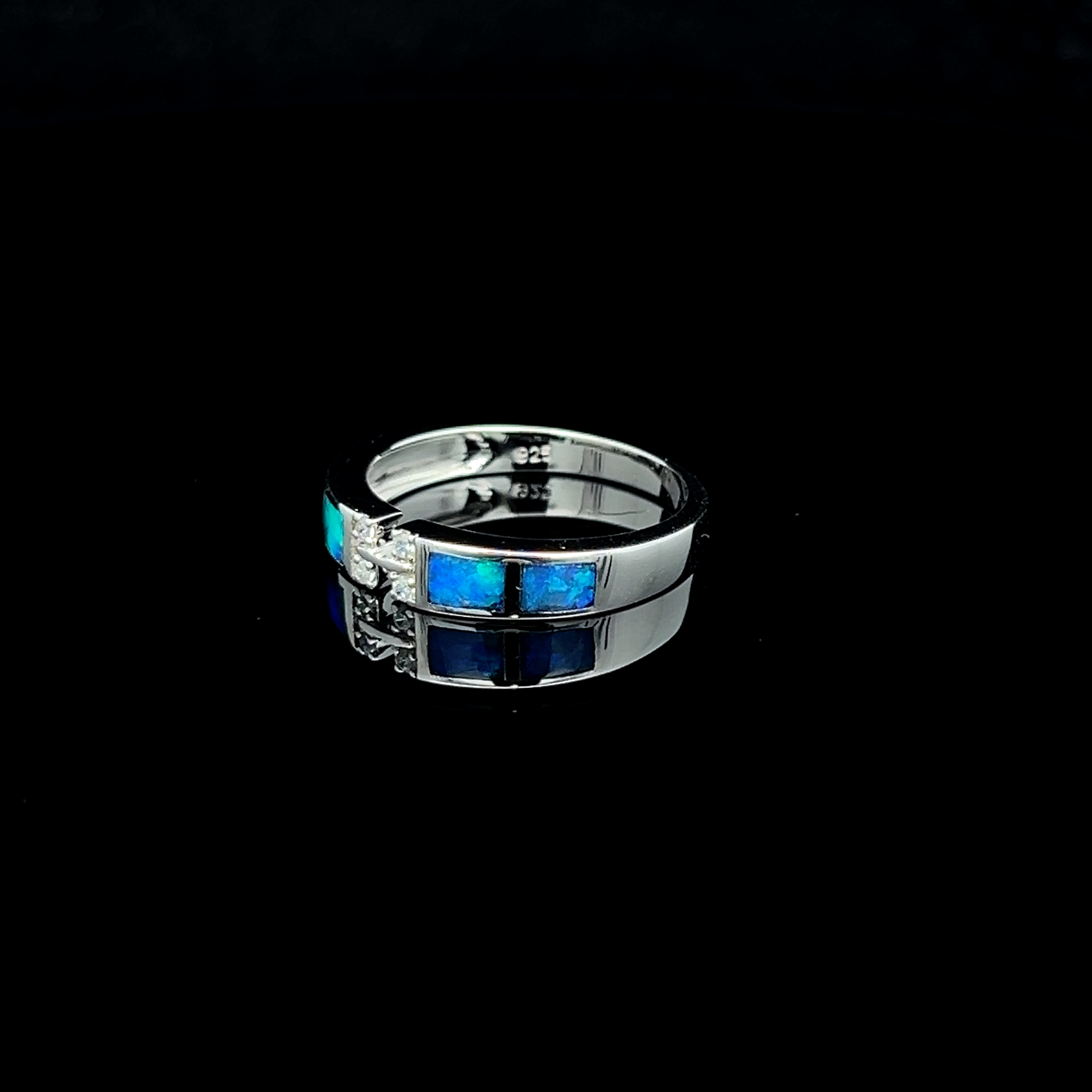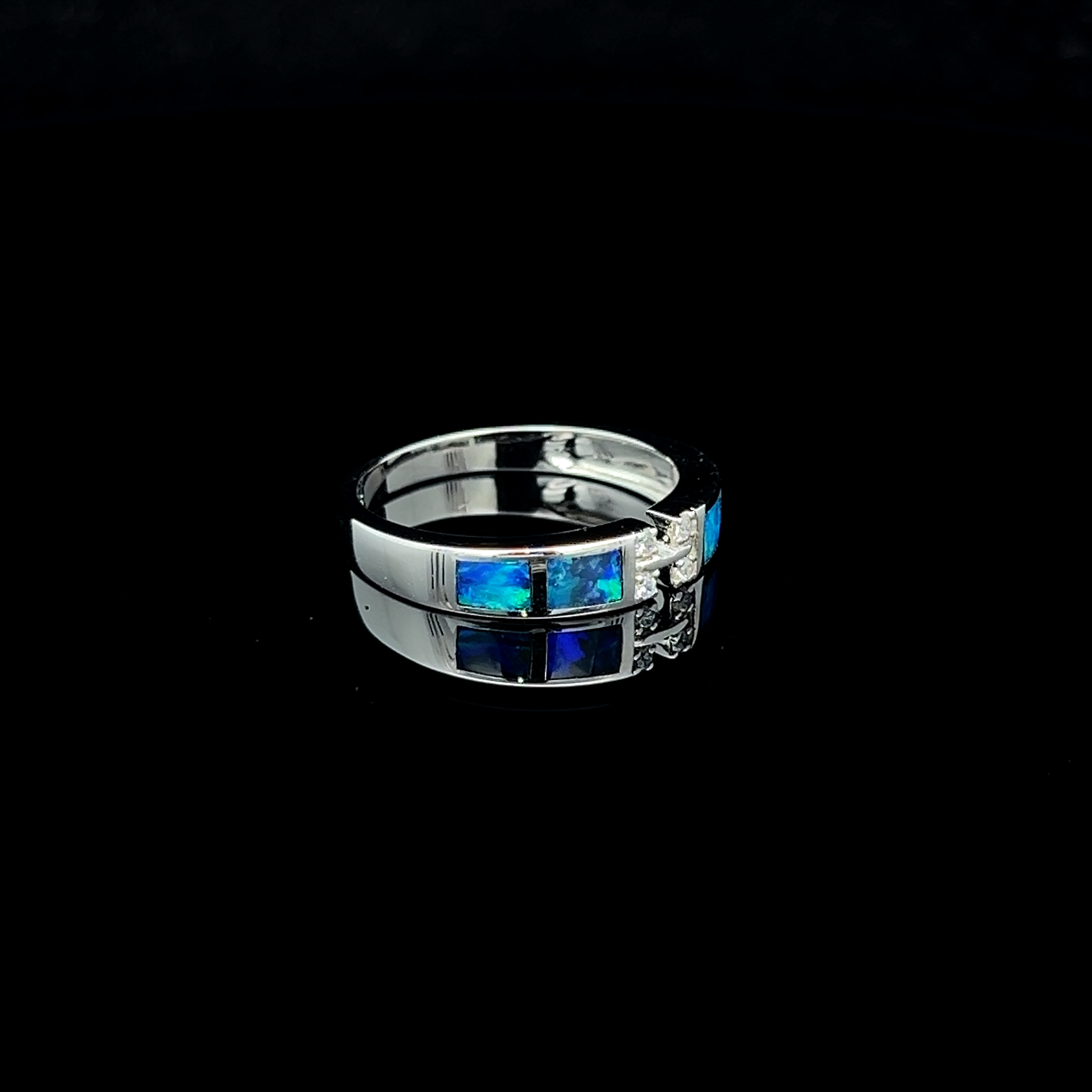 Solid South Australian 4-section Inlay Opal & Cubic Zirconia Ring Set in Sterling Silver