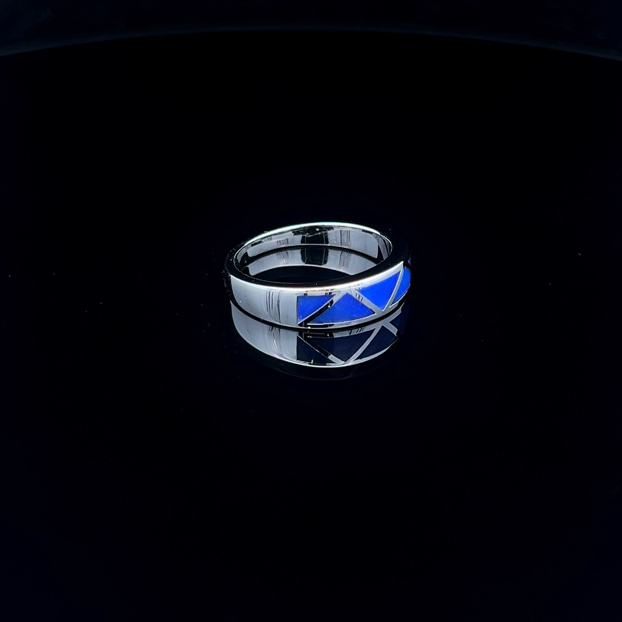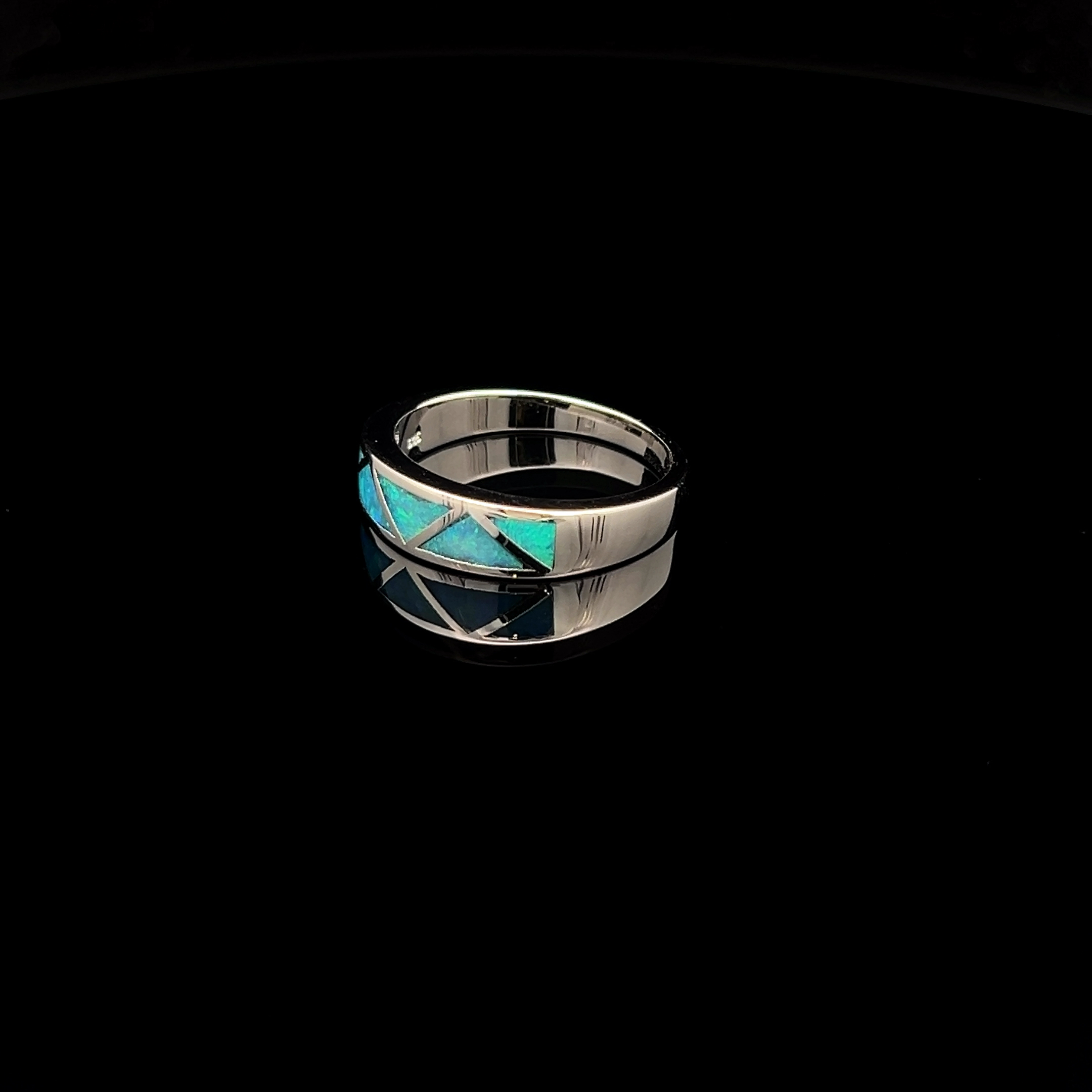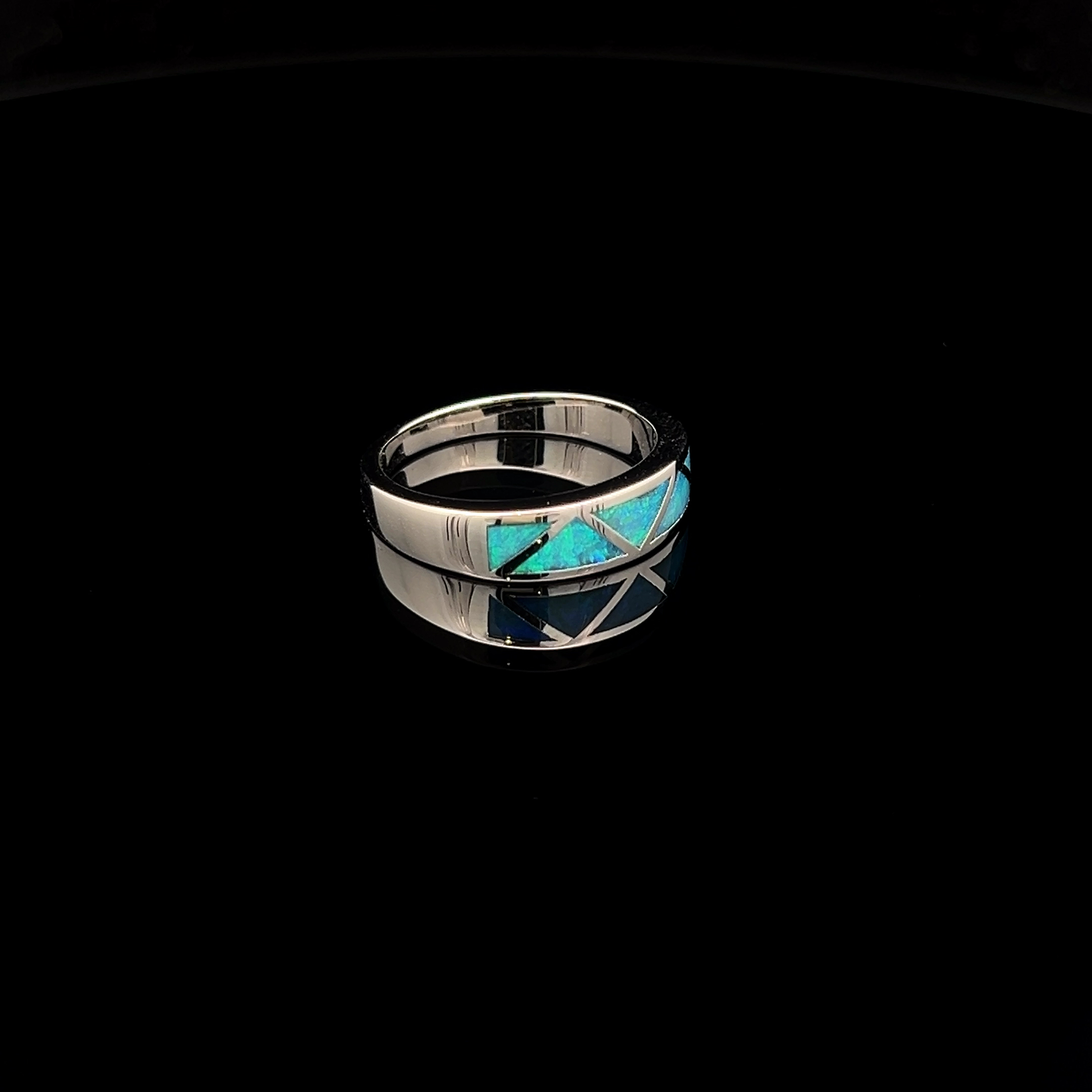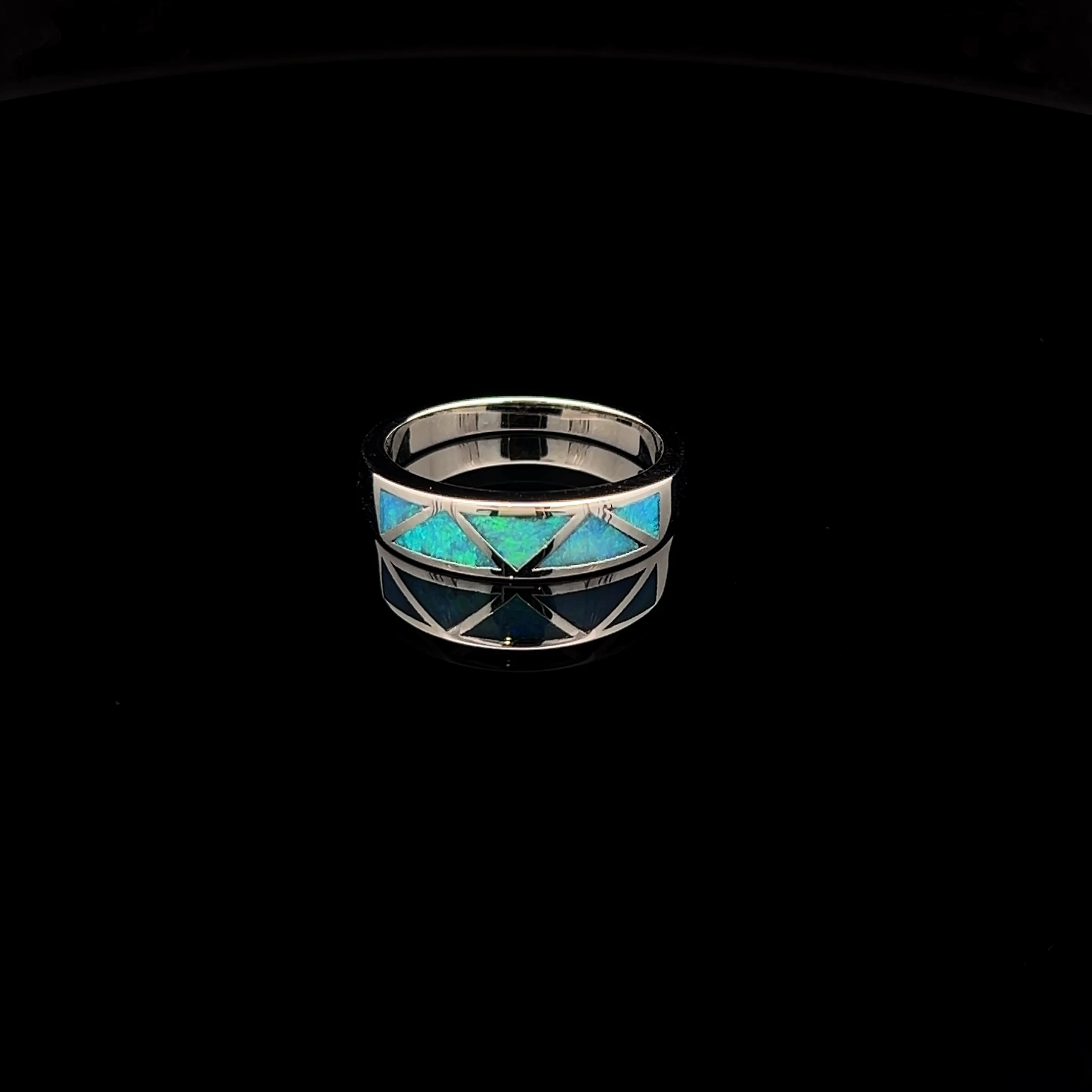 Sterling silver Ring of South Australian Inlay Opal in a 5 Section zig-zag pattern